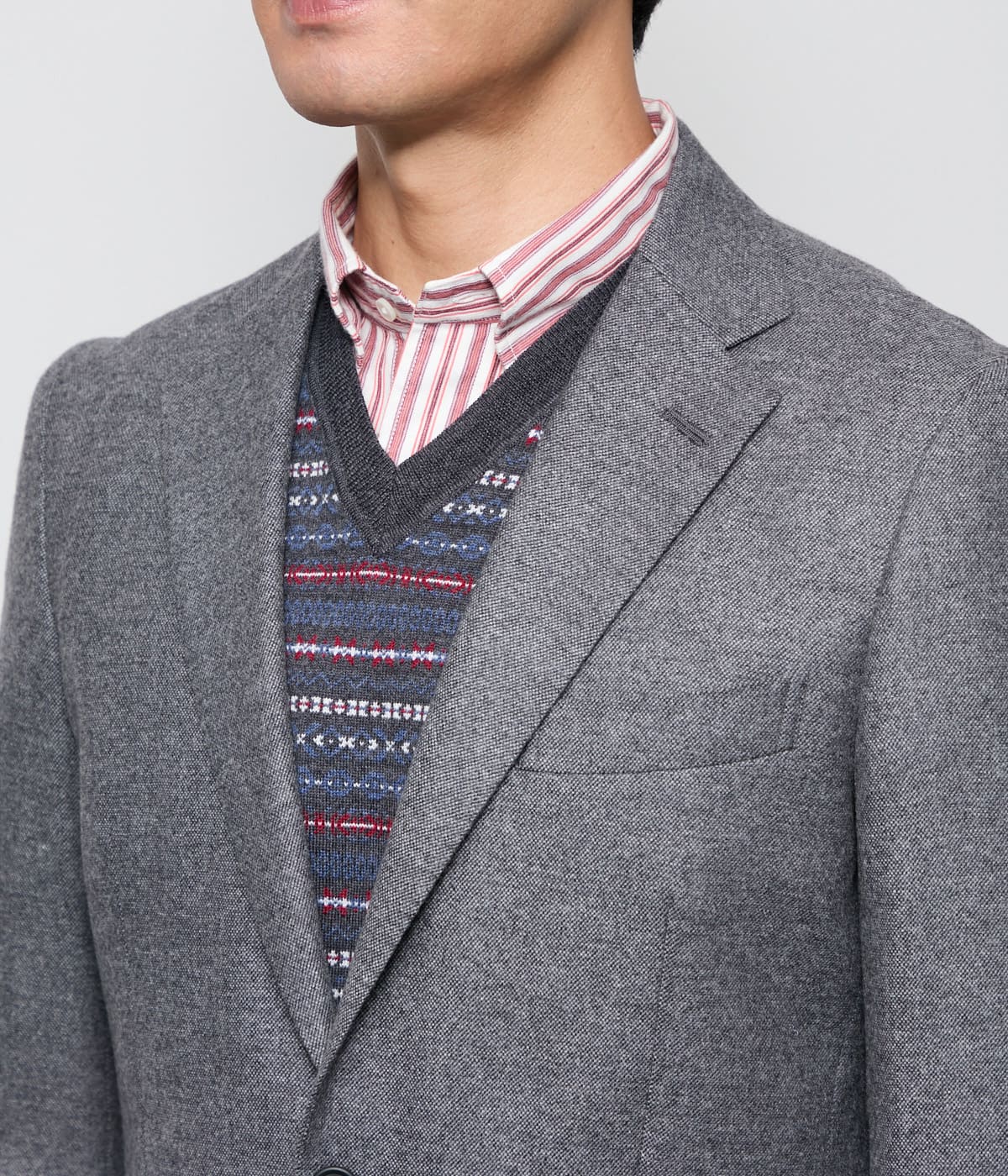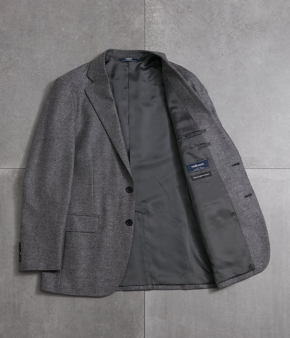 NEWYORKERのロングセラーであるカシミヤ混ジャケット。深みのある色使いと高級感のある生地感が魅力の1着です。日本で縫製を行い、テーラーメイクのこだわりを感じる仕立て映えの良いジャケットです。タイドアップしたビジネススタイルからニット合わせのカジュアルスタイルまで幅広い着こなしができる、汎用性の高い1着です。