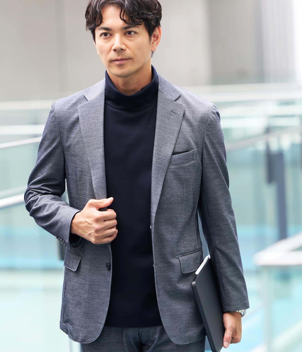 ハリ感のある洗練された見た目と快適な着心地を両立させた機能性セットアップジャケット。カジュアル化が進むビジネスシーンでも品格を保ちながら、ノーストレスで着用できる優秀なアイテムです。ビジネスからカジュアルまで幅広いシーンで活躍し、単品でも着回しやすい1着です。