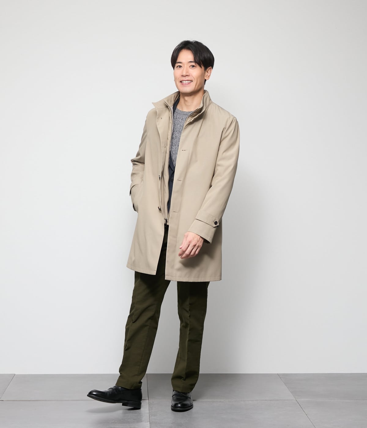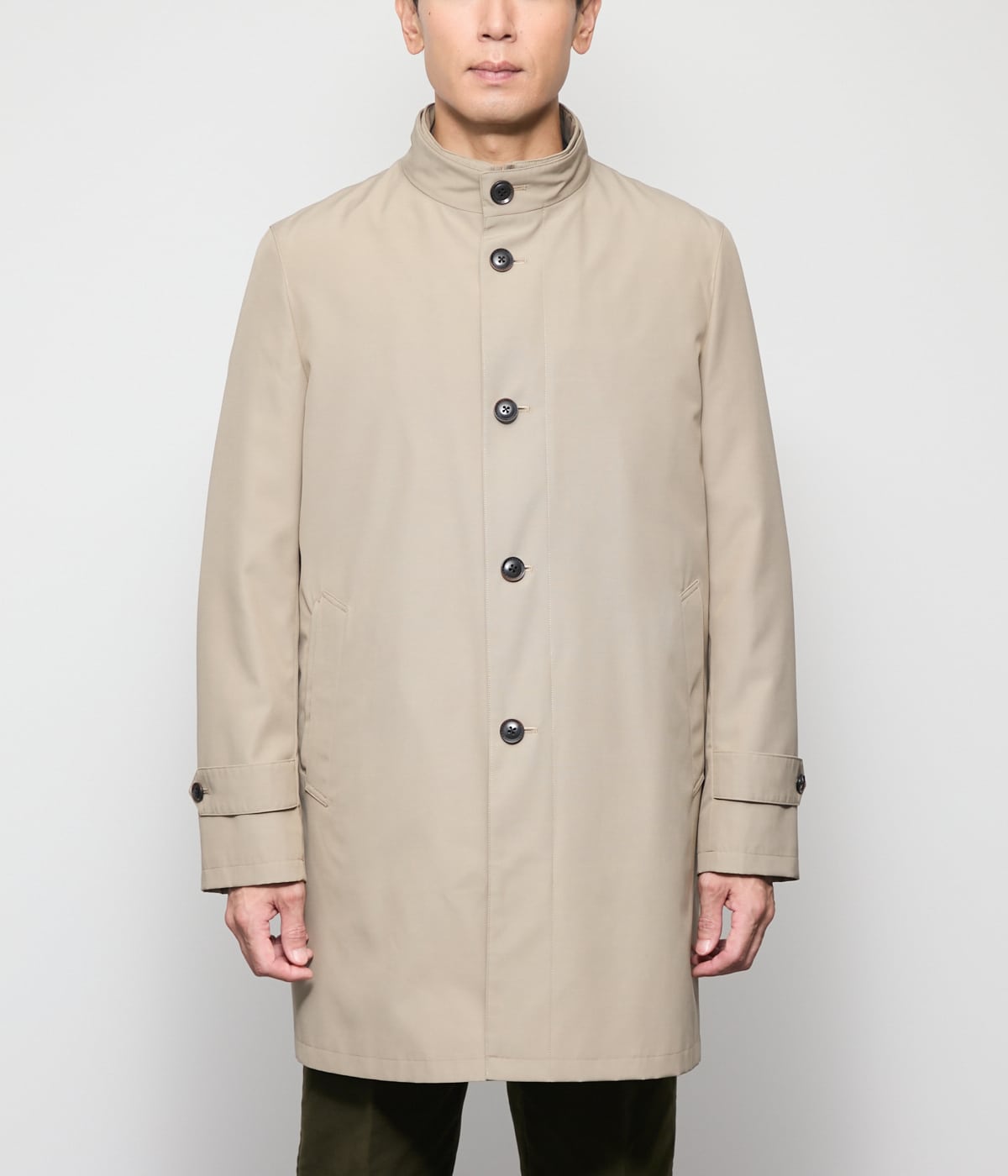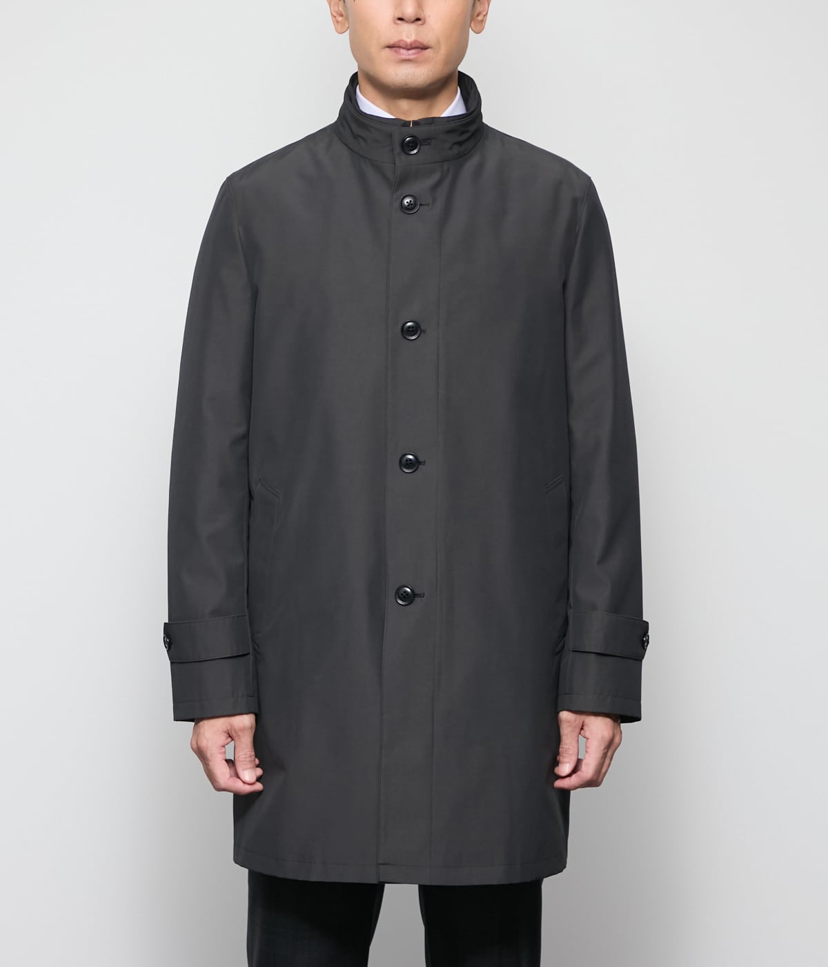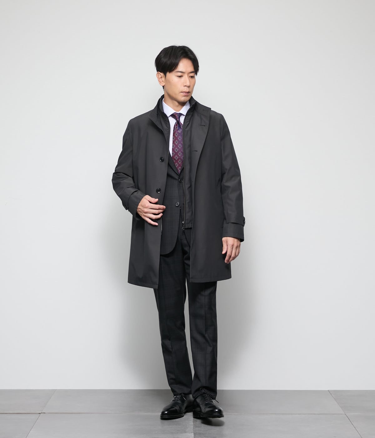 インベストをレイヤードした新デザインのスタンドカラーコート。2重襟の立体感と、ボタンを開けた際に覗くレイヤーの奥行きが上品な印象を演出します。ビジネスからオケージョンまで幅広く対応し、洗練された大人のスタイルを完成させます。