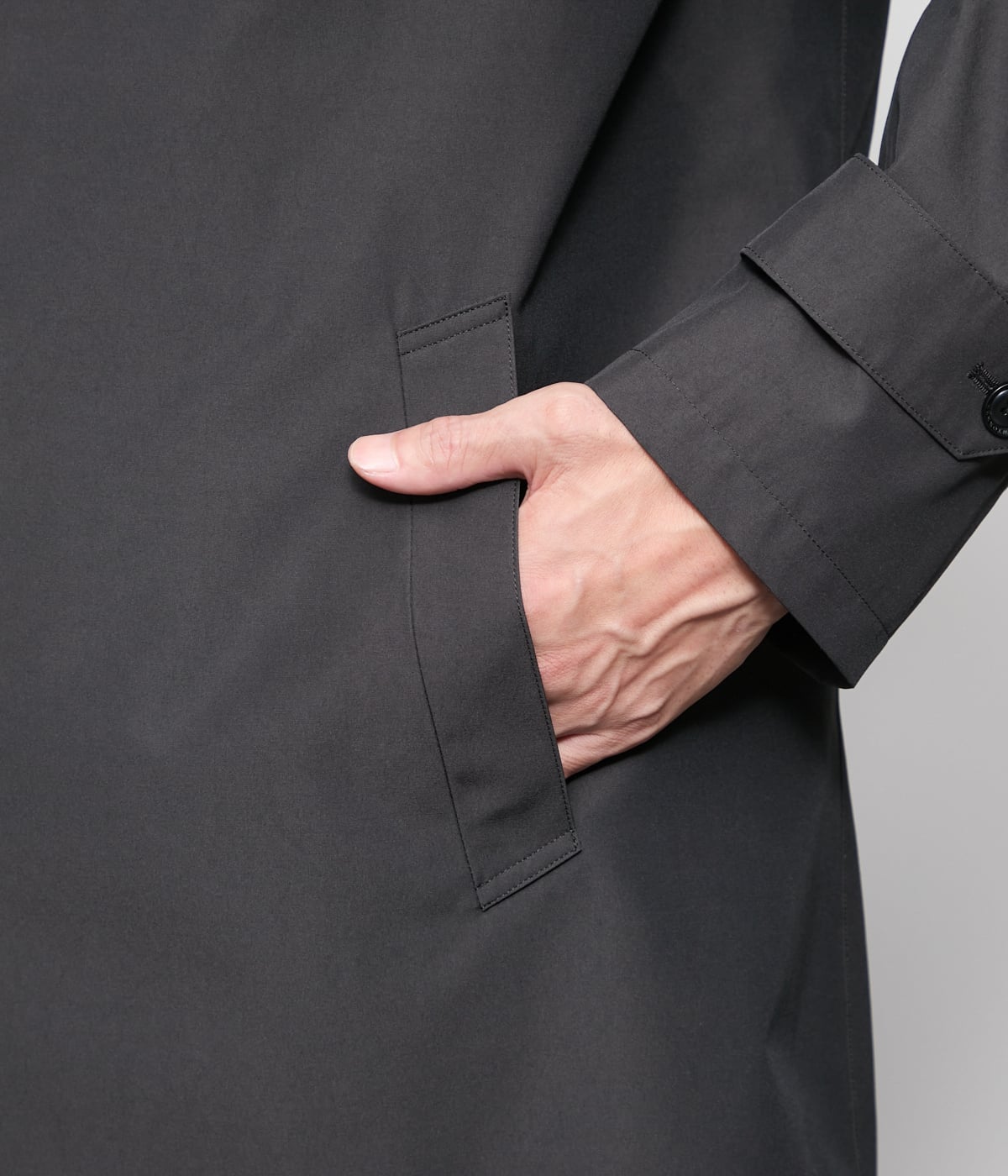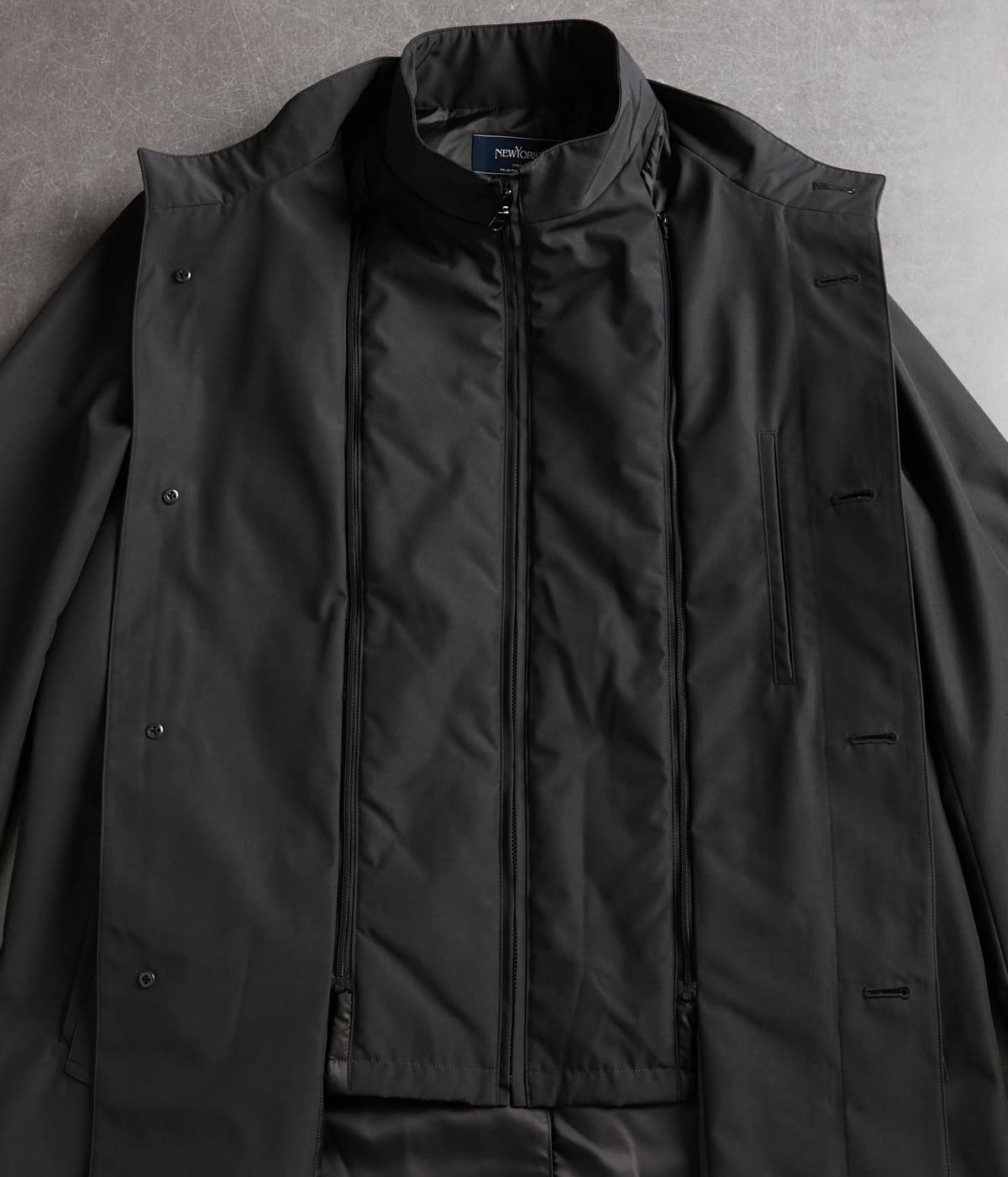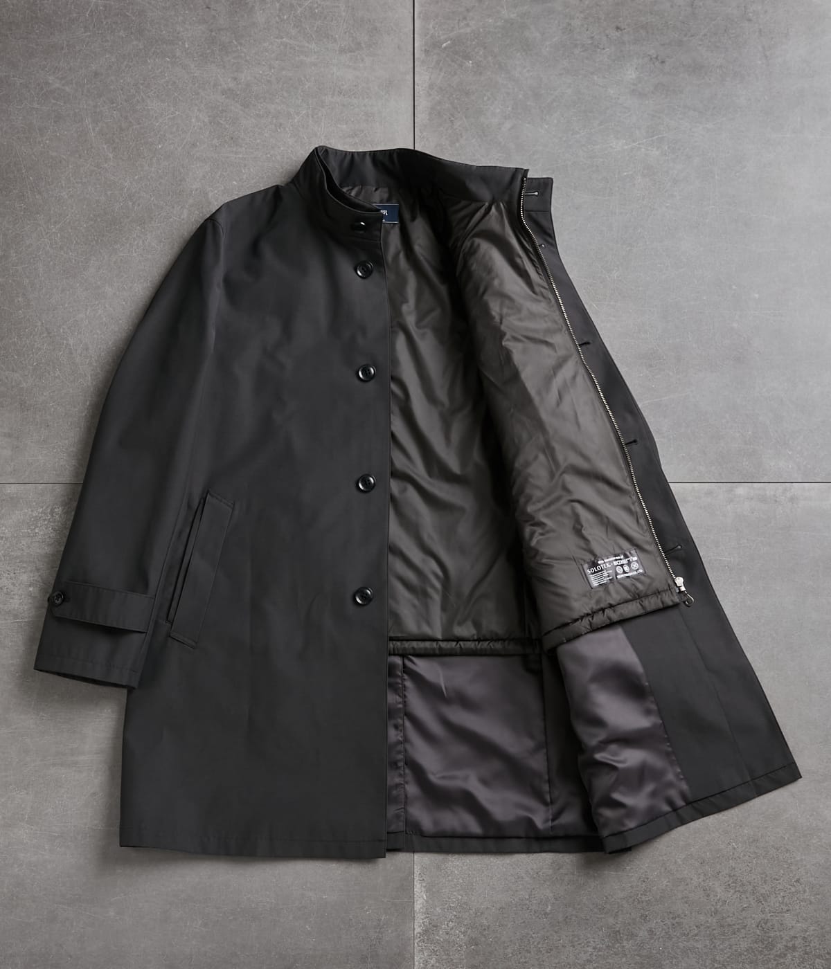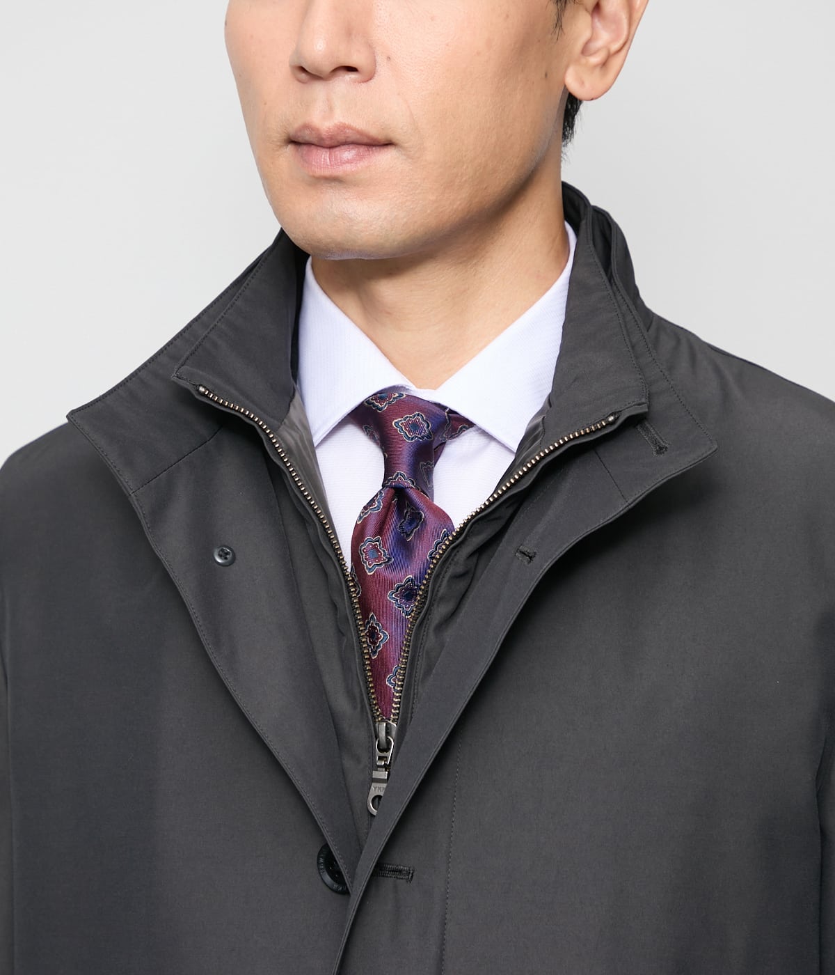 インベストをレイヤードした新デザインのスタンドカラーコート。2重襟の立体感と、ボタンを開けた際に覗くレイヤーの奥行きが上品な印象を演出します。ビジネスからオケージョンまで幅広く対応し、洗練された大人のスタイルを完成させます。