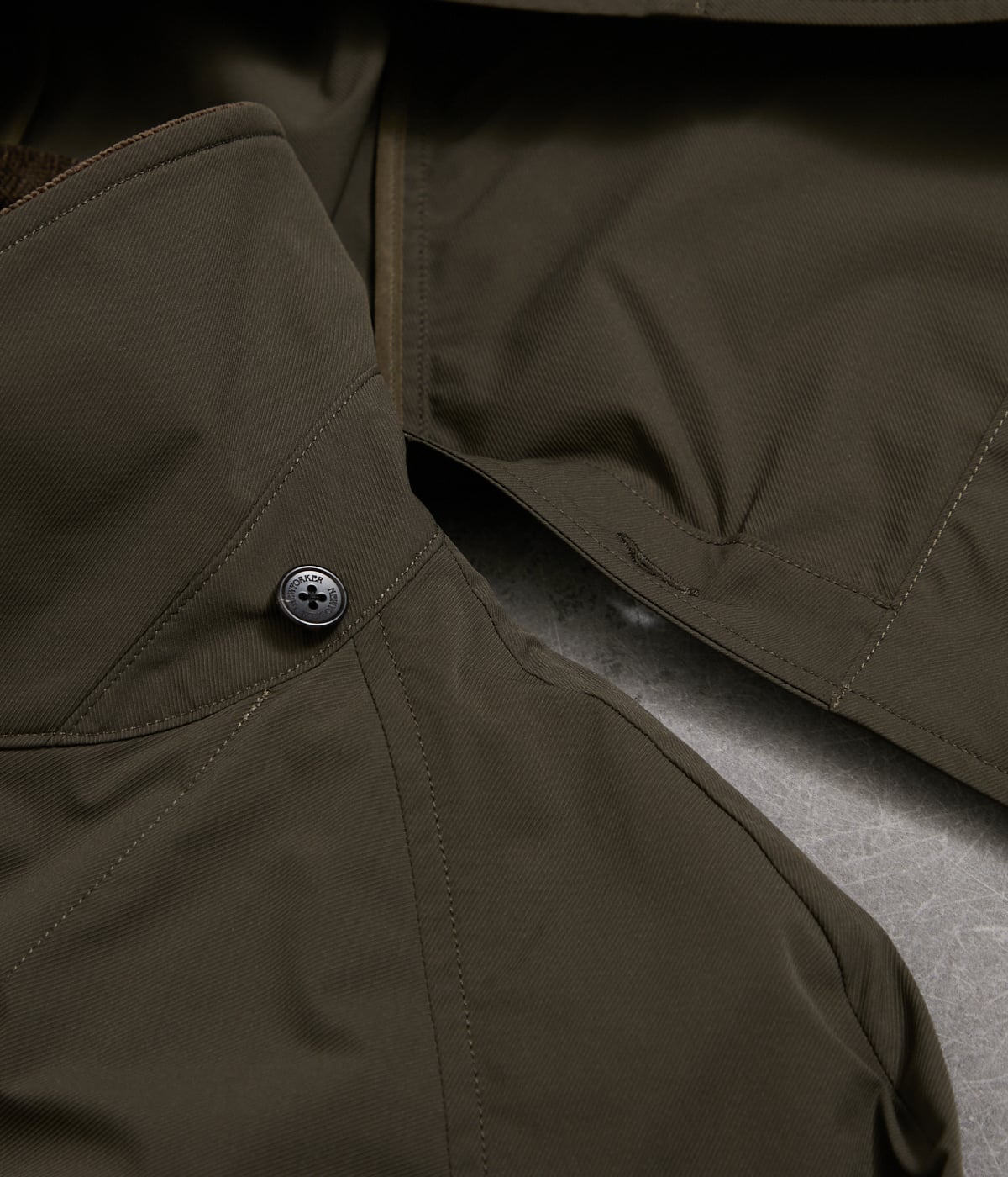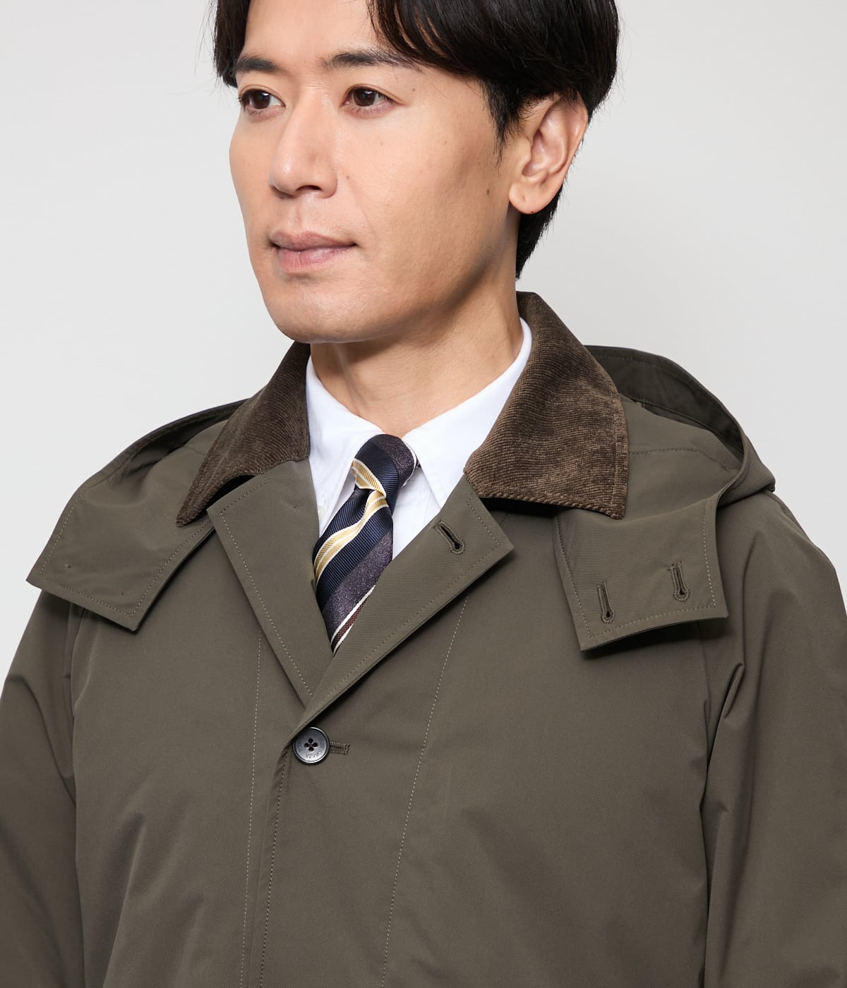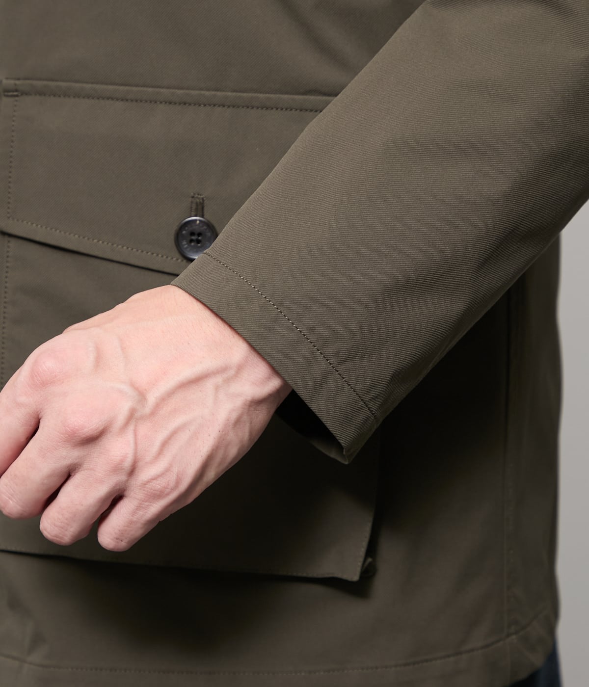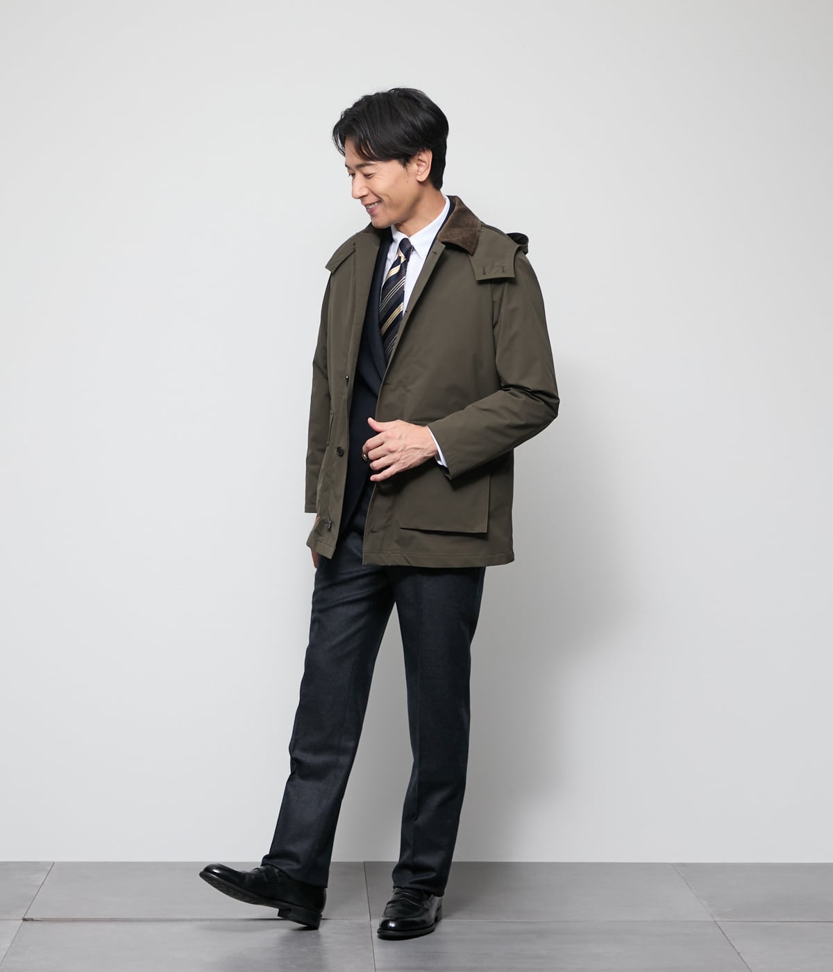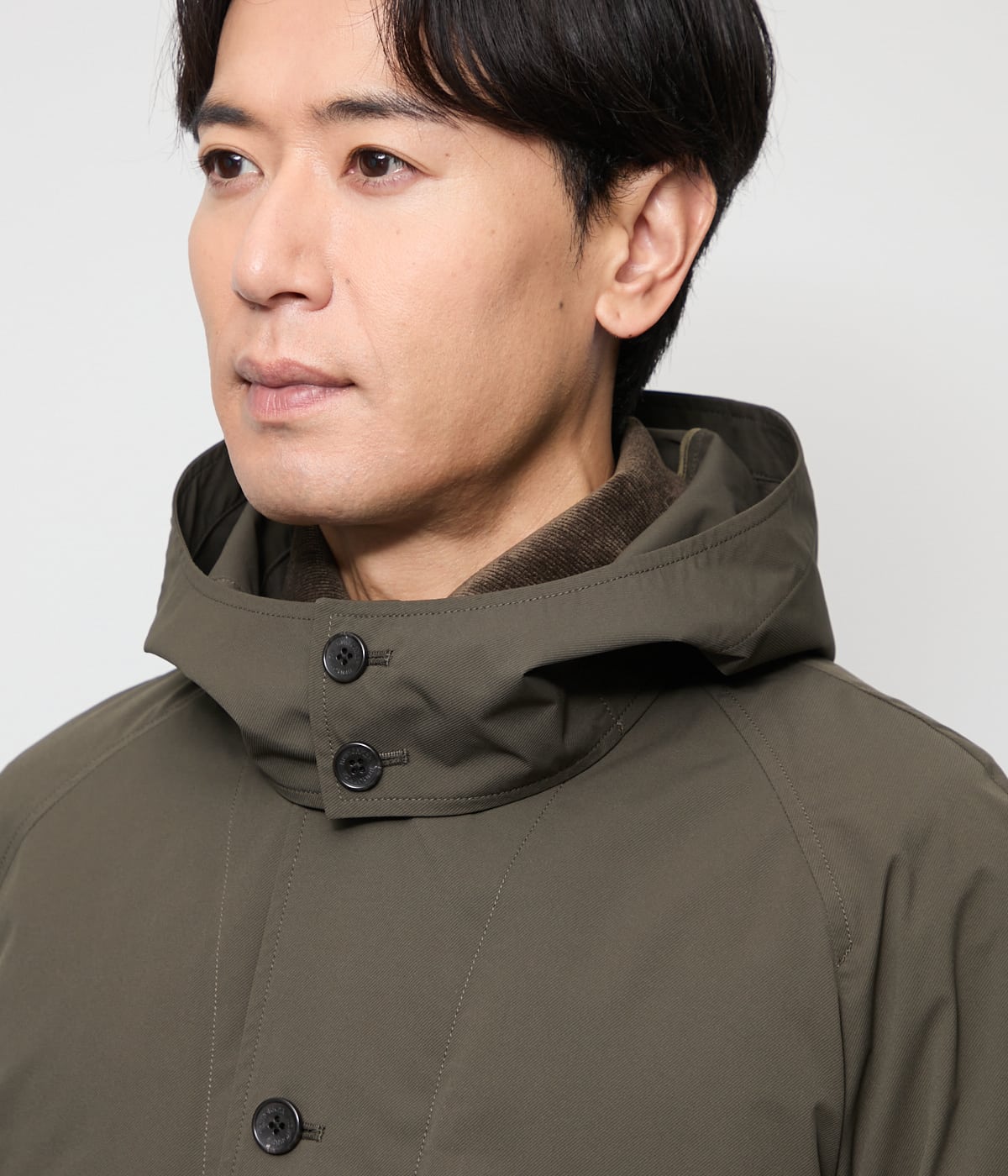オンオフ問わず着用できるハンティングジャケット。ビジネスシーンも想定した丈感とシルエットが特徴です。ライナーとフードは、天候やコーディネートに合わせて取り外し可能です。大き目の腰ポケットには、ハンドウォーマーも備えております。