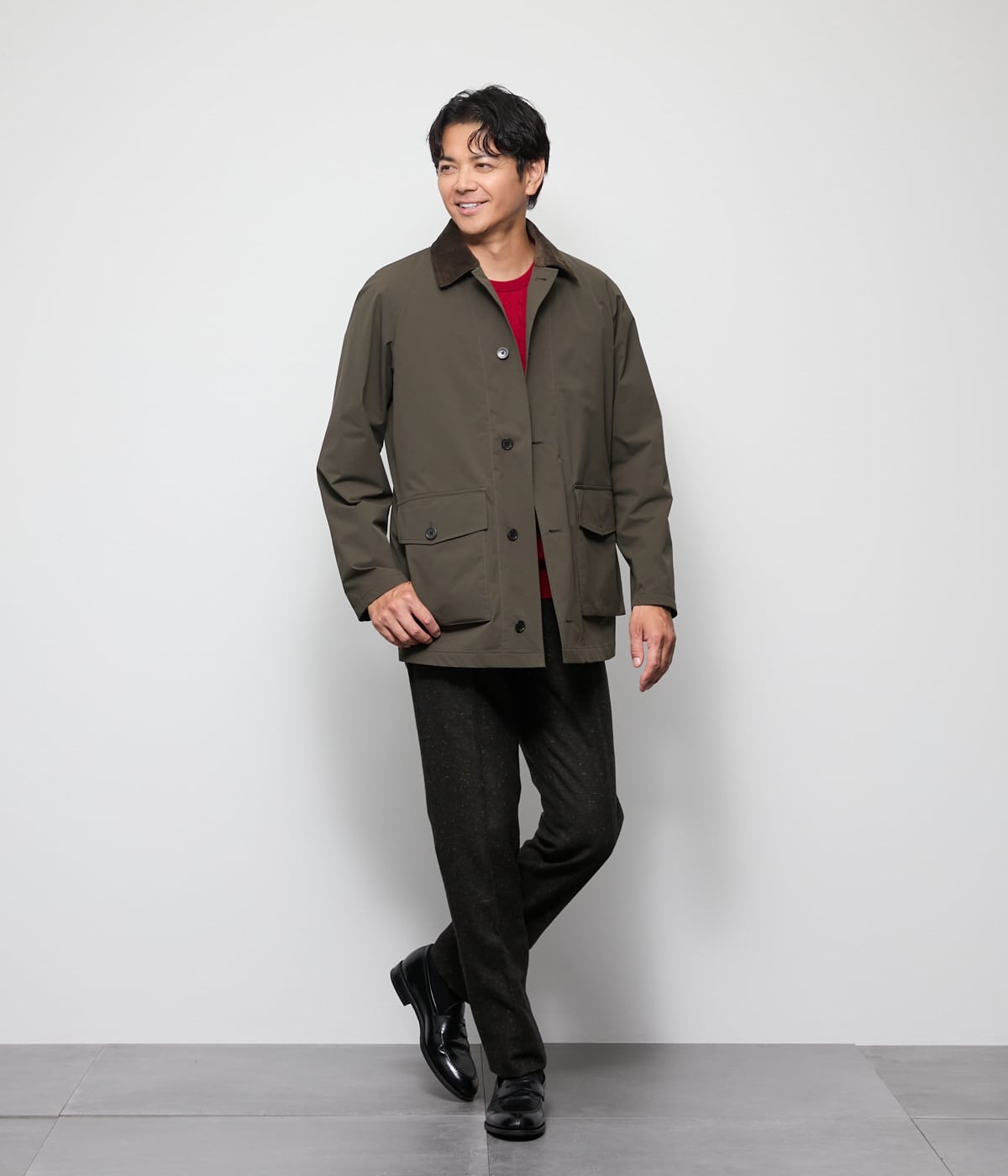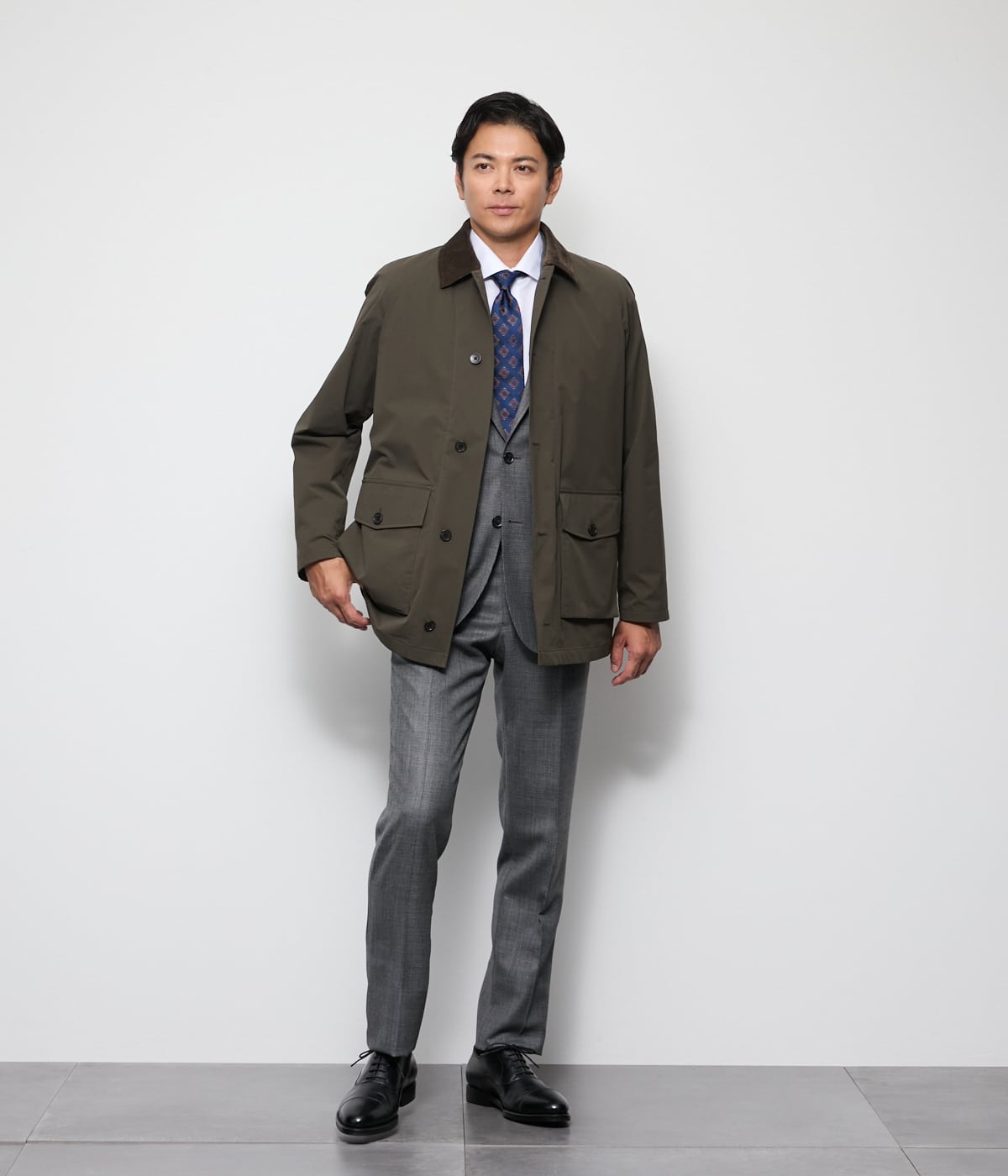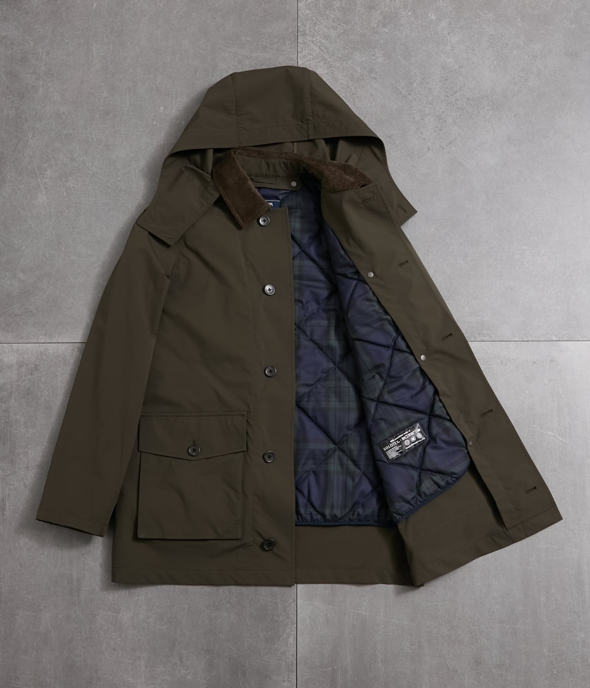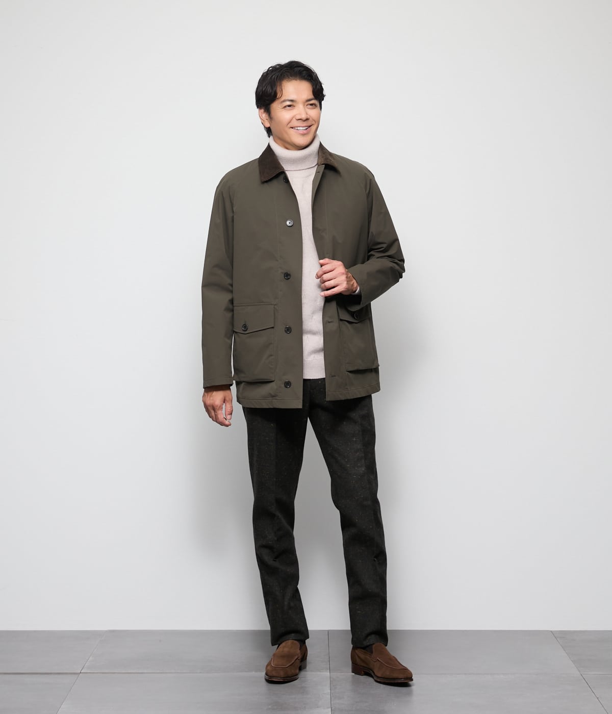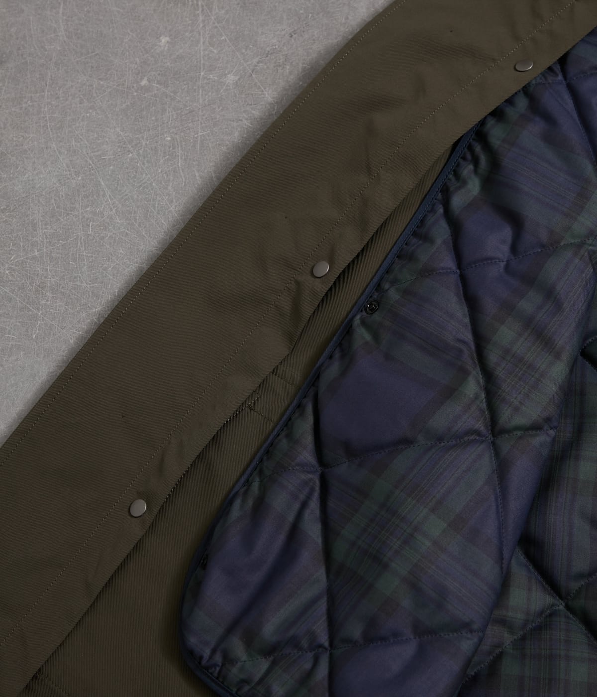 表地は着回しやすいツイルの無地柄。ライナーはシーズンテーマの「ブリティッシュ」を意識したブラックウォッチ柄を採用。中と外で違った印象を愉しめます。