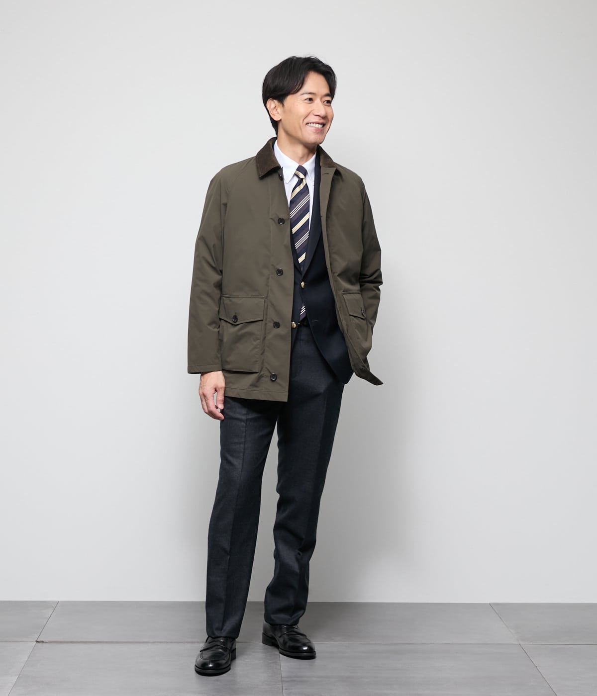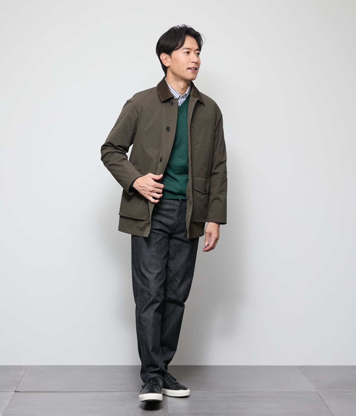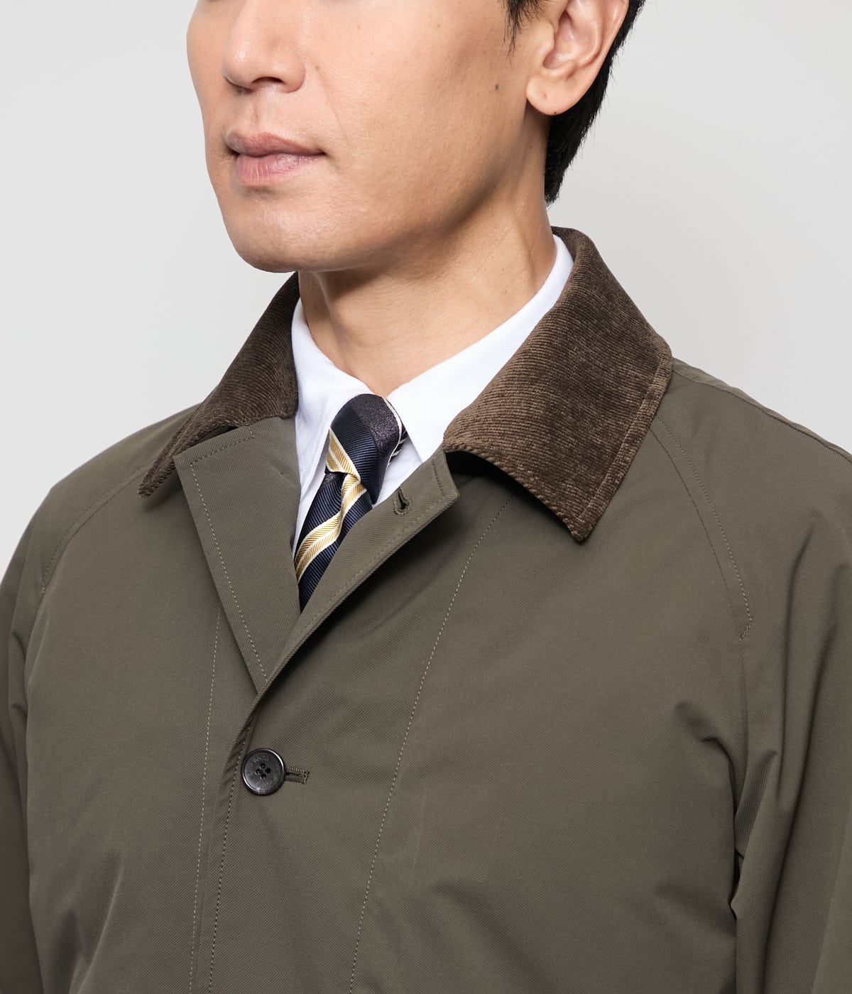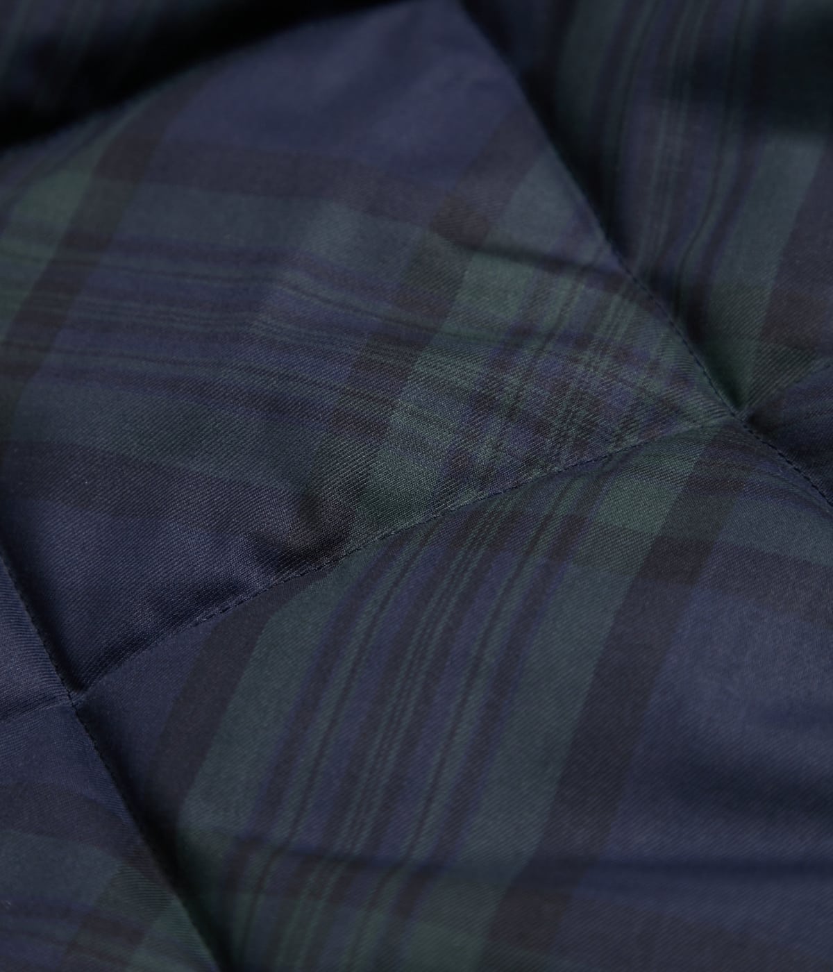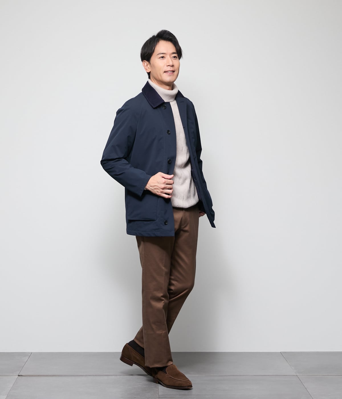 表地は着回しやすいツイルの無地柄。ライナーはシーズンテーマの「ブリティッシュ」を意識したブラックウォッチ柄を採用。中と外で違った印象を愉しめます。