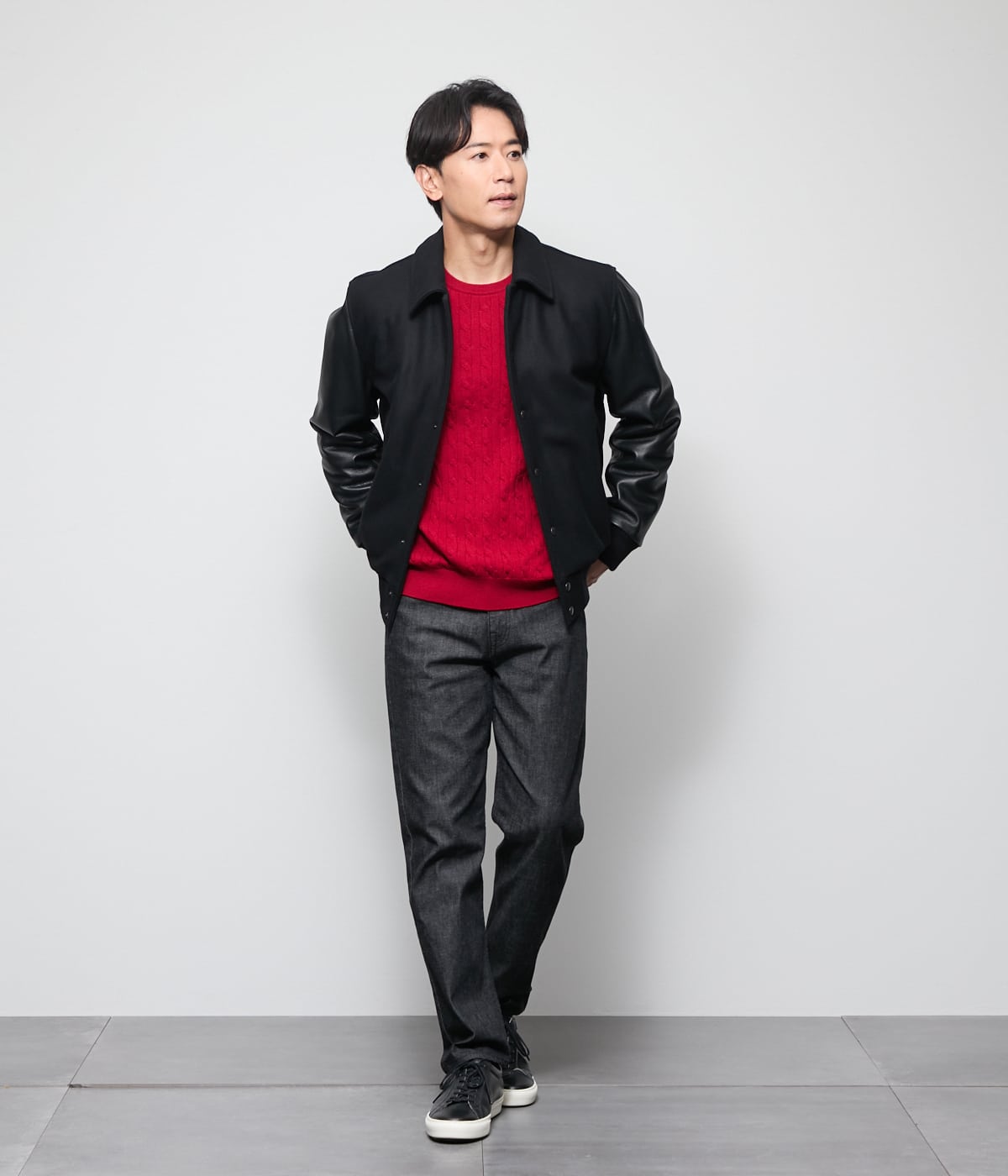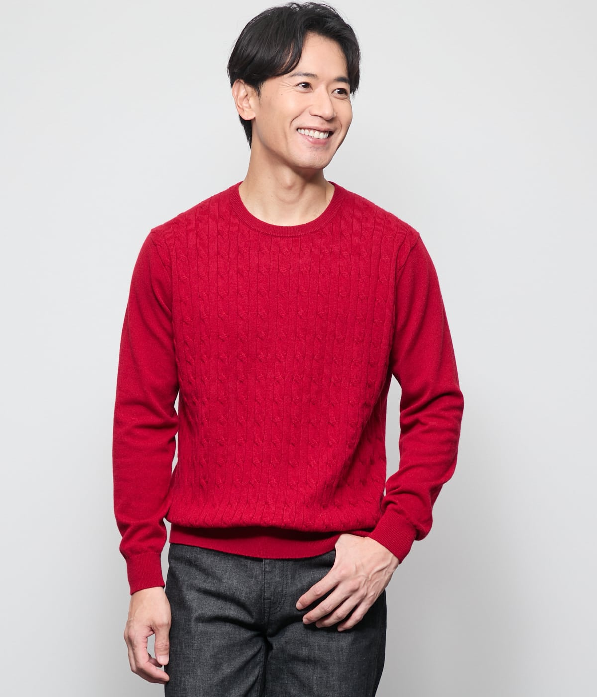 カシミヤ100%素材を使用した、高級感のあるクルーネックニット。綺麗な色合いで、1枚でもインナーでも活躍するアイテムです。カシミヤ素材を使用したジャケットとのコーディネートがおすすめです。ギフトにもおすすめです。