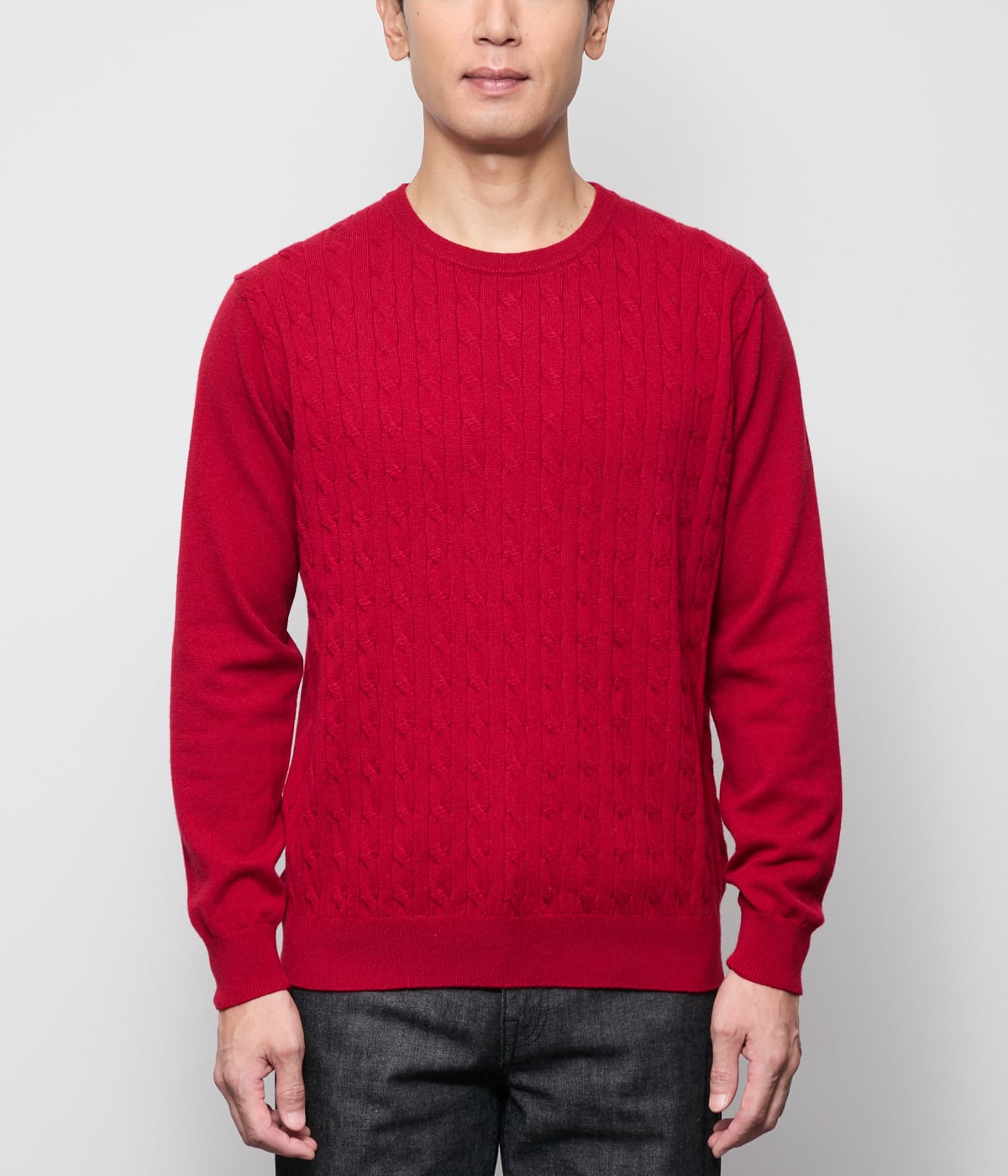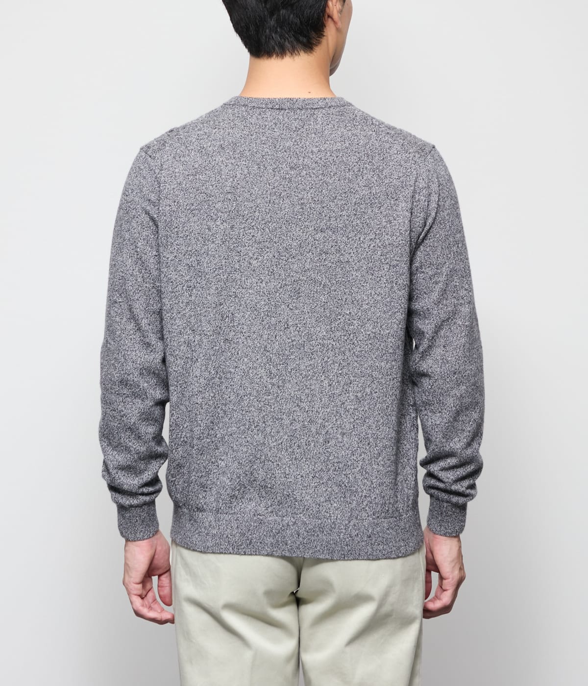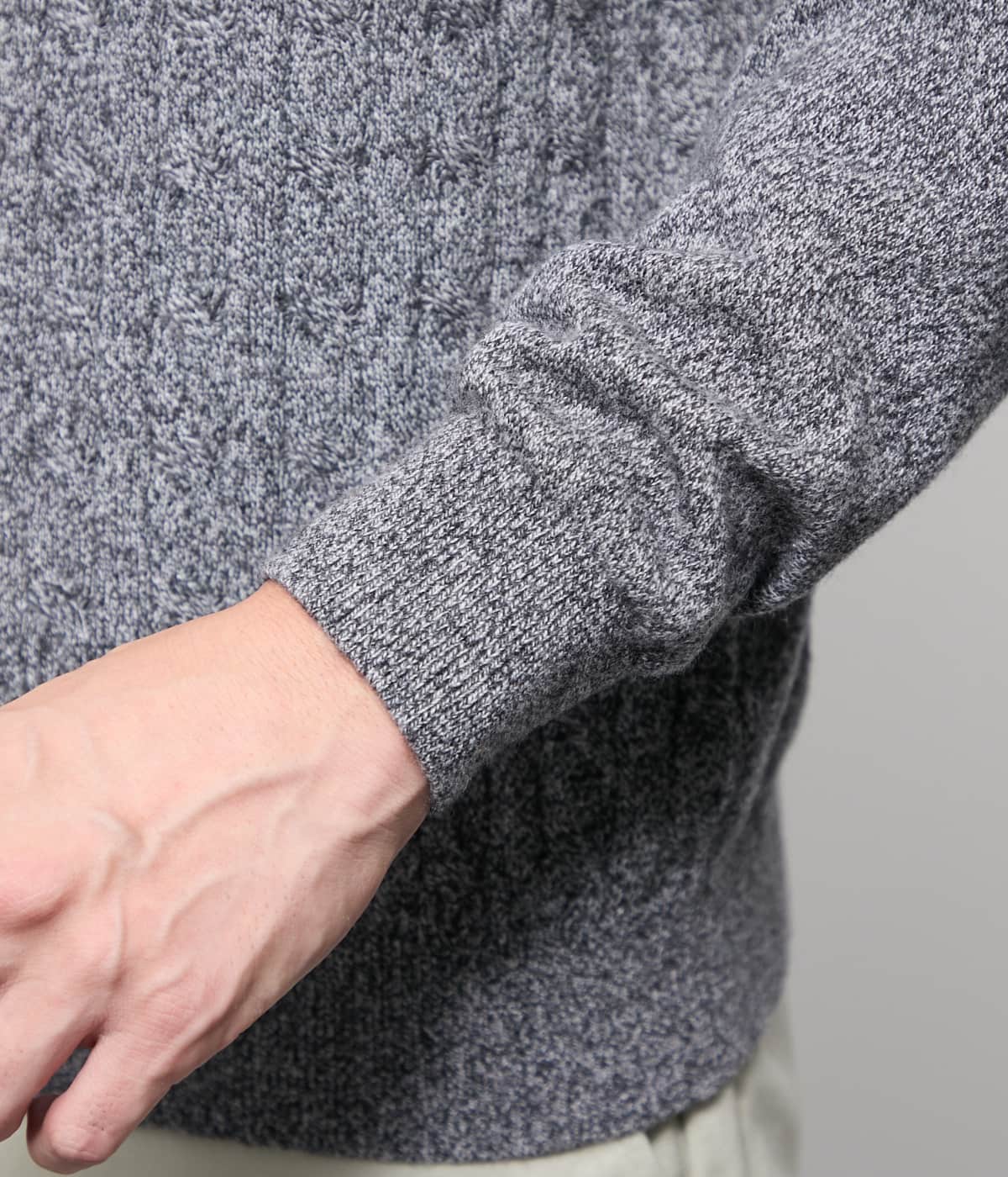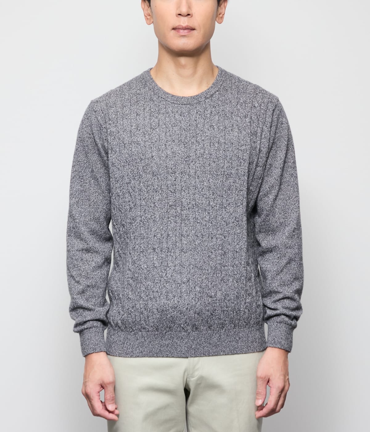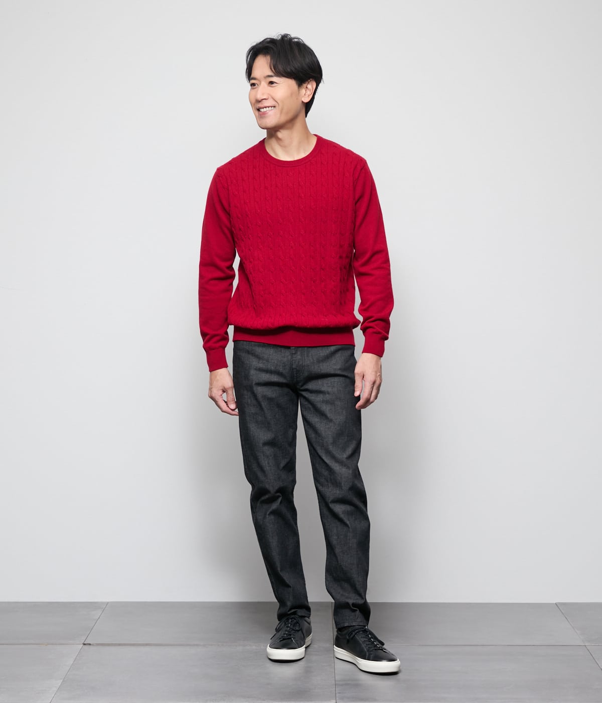 フロントに細めのケーブル編みを施したクルーネックニット。シンプルで着回しやすく、トレンドに左右されないタイムレスなデザインです。インナーにちょうどいいジャストな着用感です。