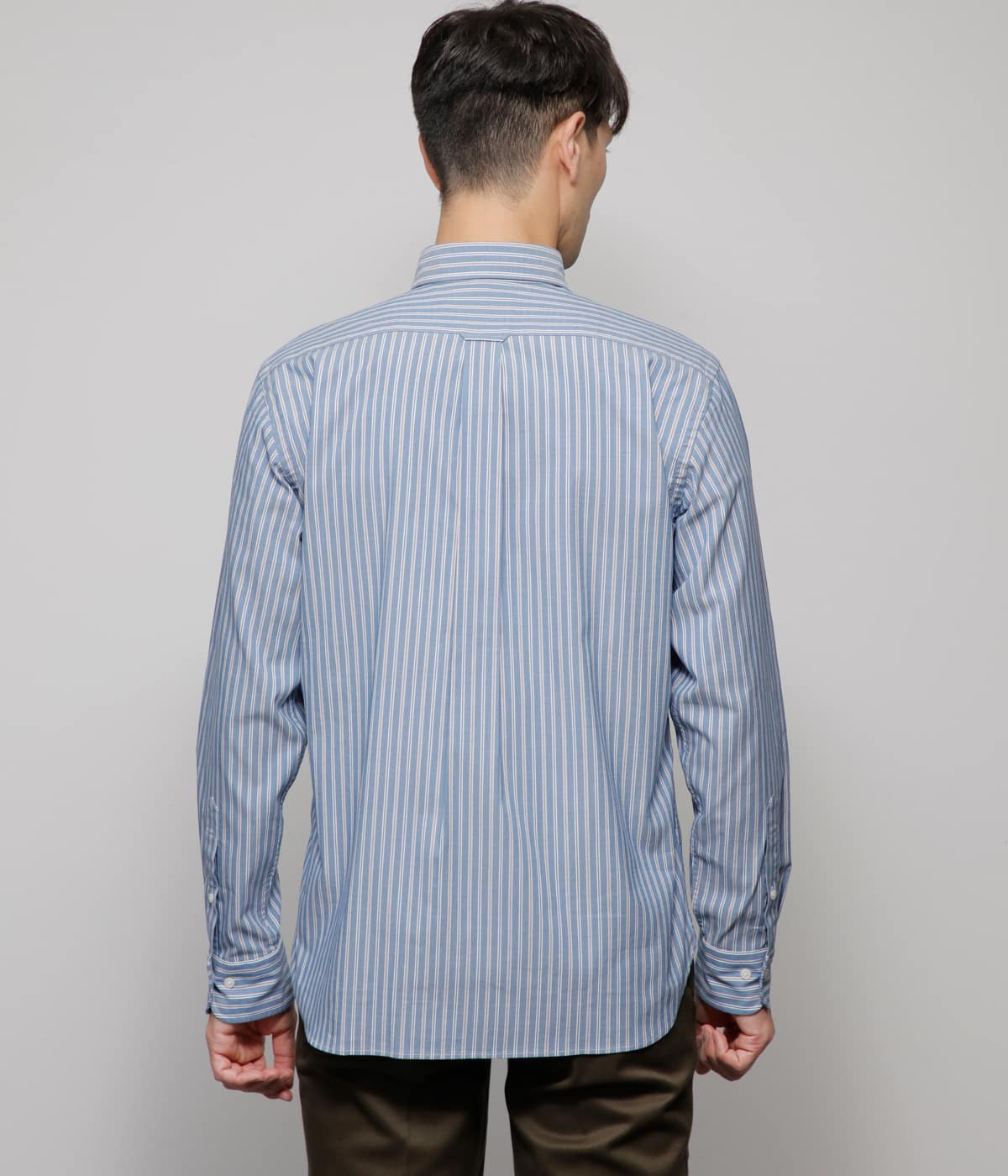 トラッドな配色が特徴のストライプ柄の長袖ショートボタンダウンシャツ。1枚でのシンプルな着こなしはもちろん、ジャケットやニットとのコーディネートもおすすめです。