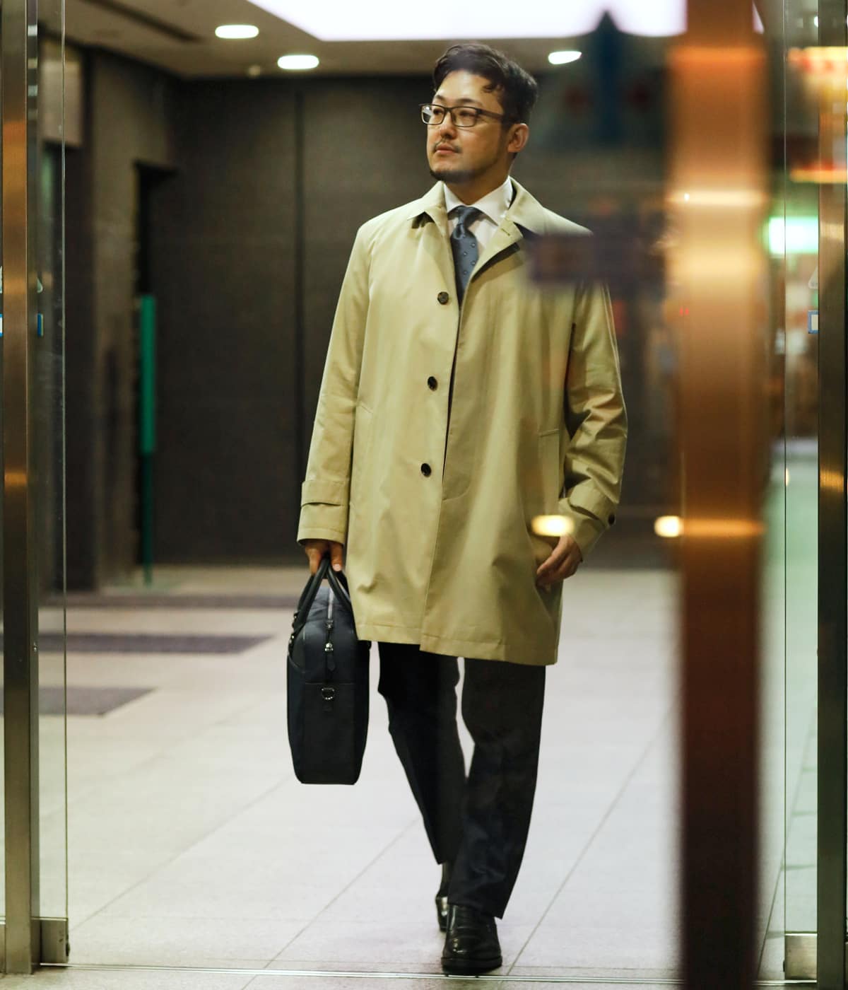 オーセンティックな綿ステンカラーコート