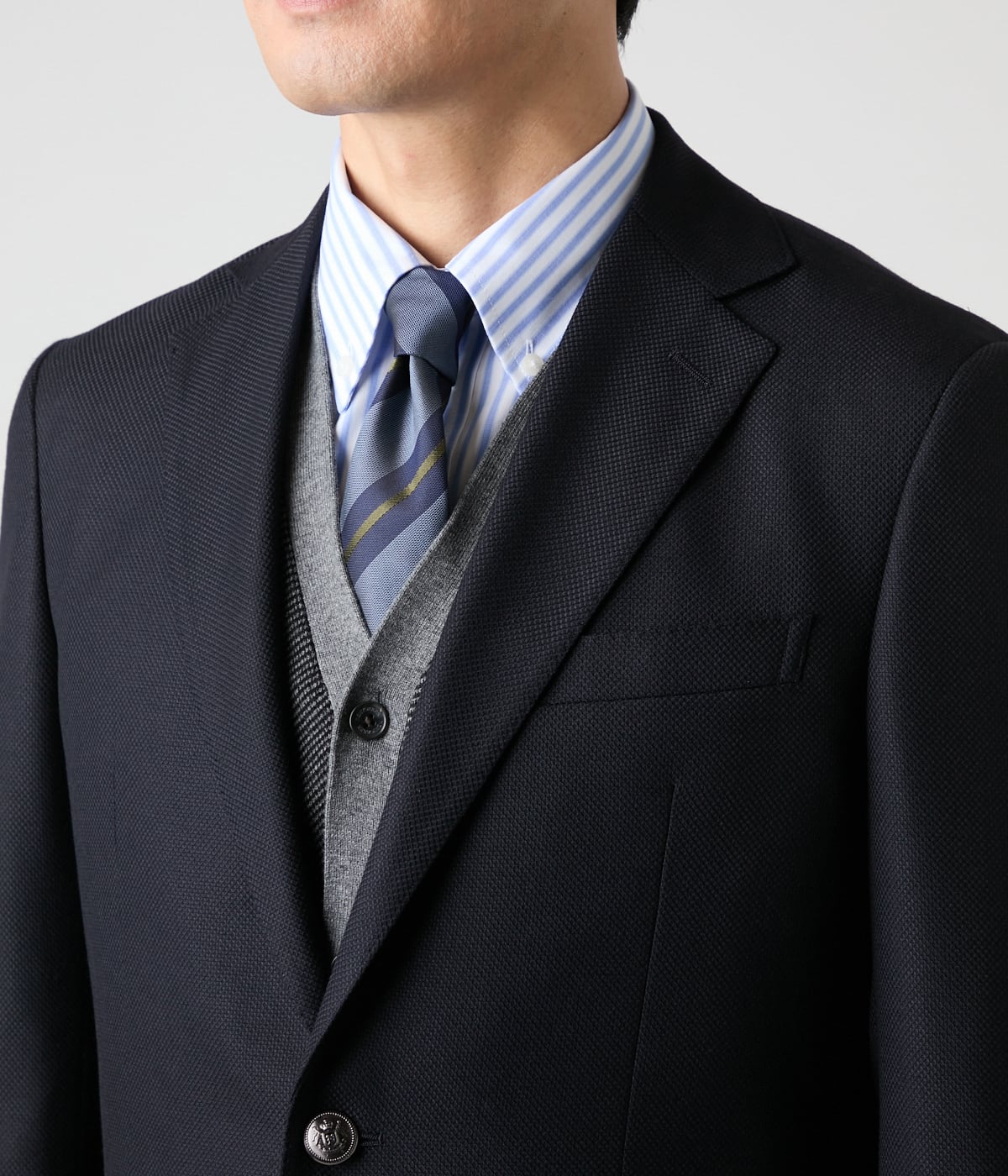 防シワ性で人気の高い「TRAVEL COMFORT/トラベルコンフォート」シリーズのブレザー。程良いハリ感と光沢が生む品格ある佇まいで、様々な色柄のシャツ・ネクタイと合わせやすく、シーンを選ばない汎用性の高い1着です。