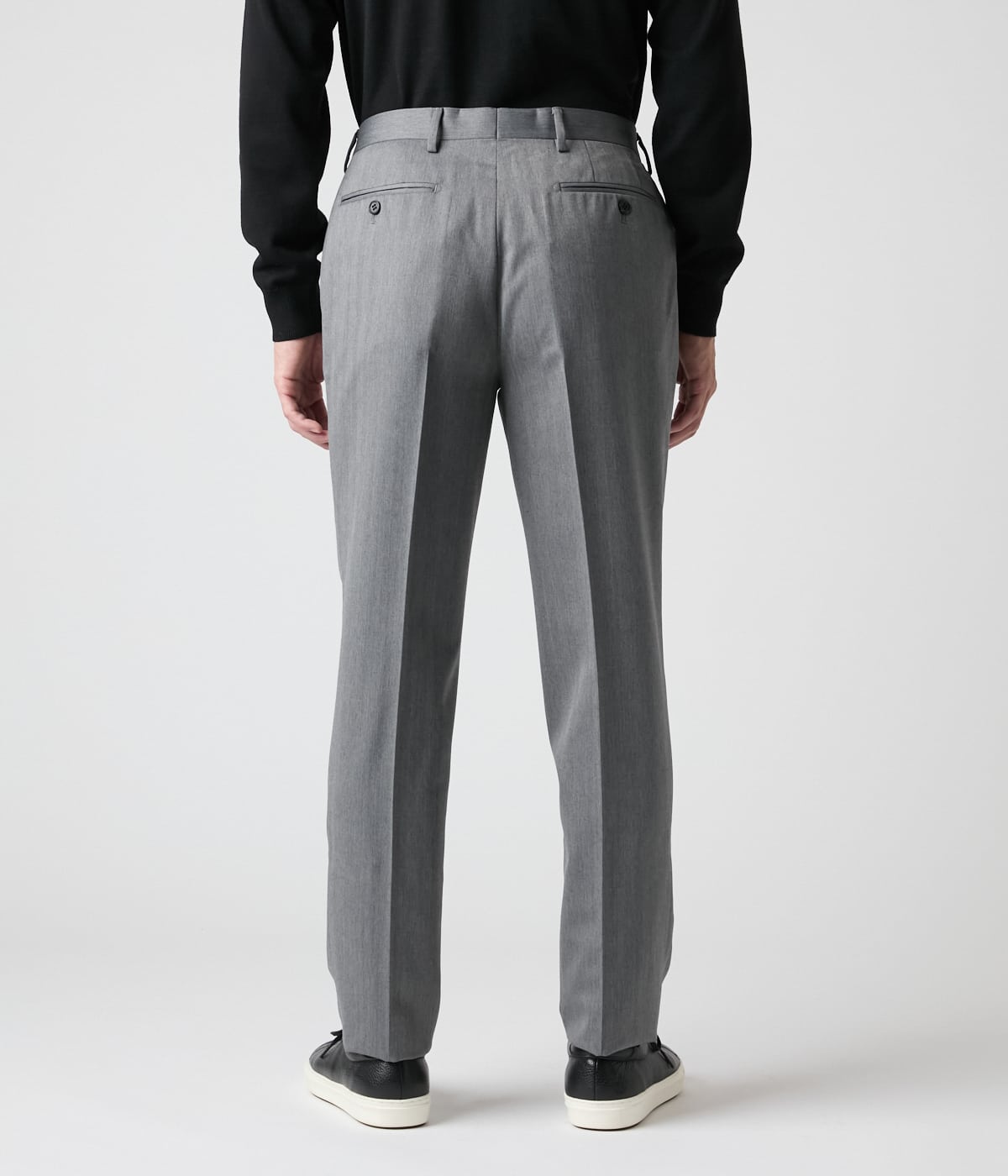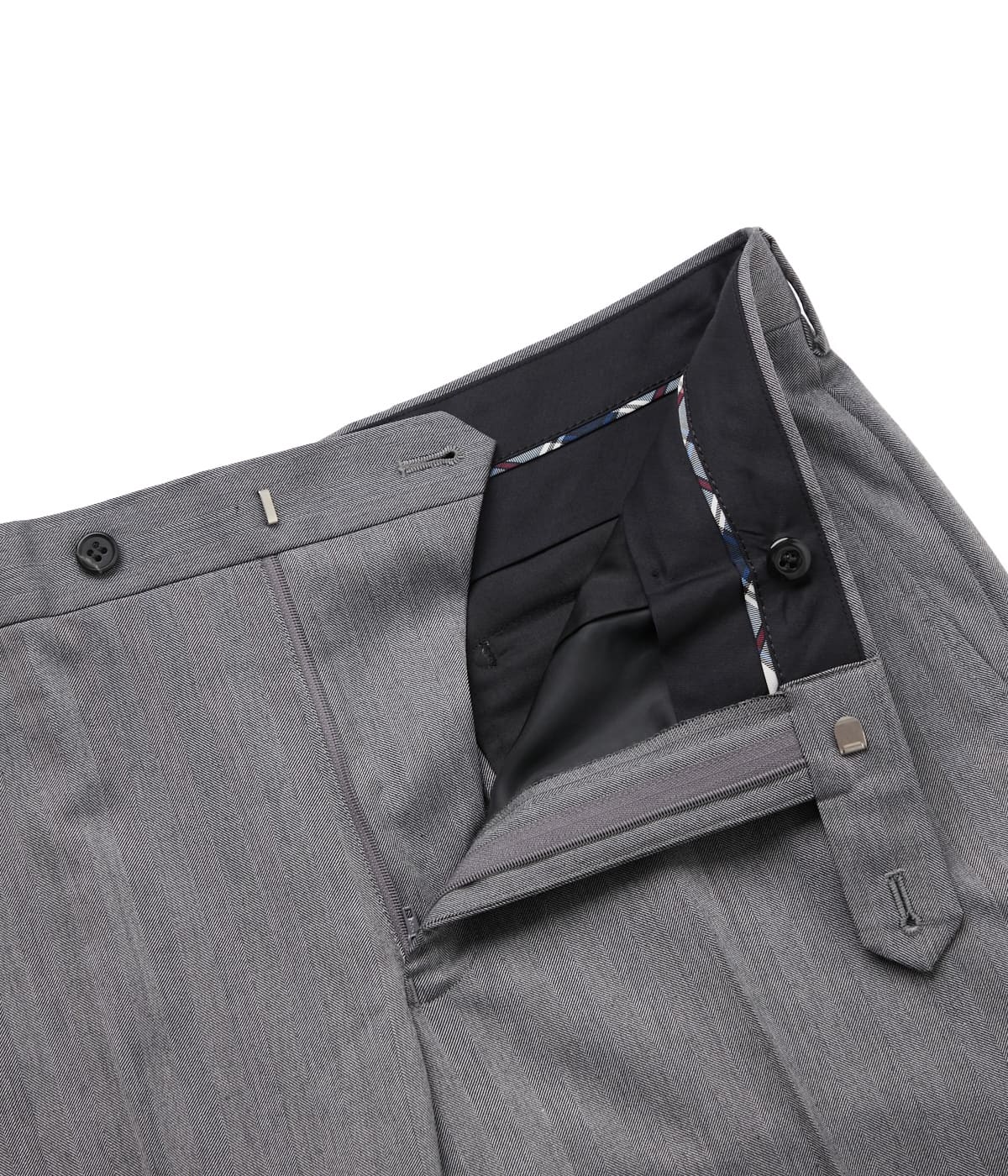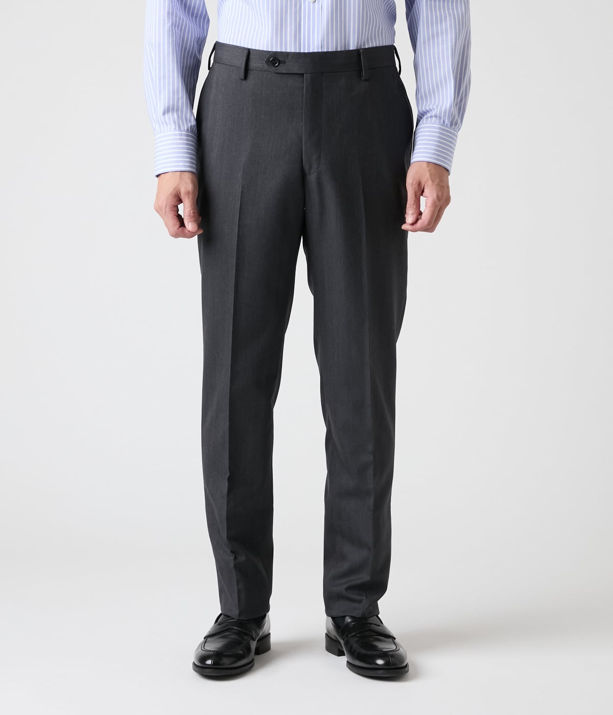 ウールの上品さとポリエステルの扱いやすさを融合した、季節感のあるヘリンボーン柄のスラックス。落ち着いたトーンと織柄が大人の品格を引き立て、ビジネススタイルから休日のお出かけスタイルまでオンオフ兼用で活躍します。