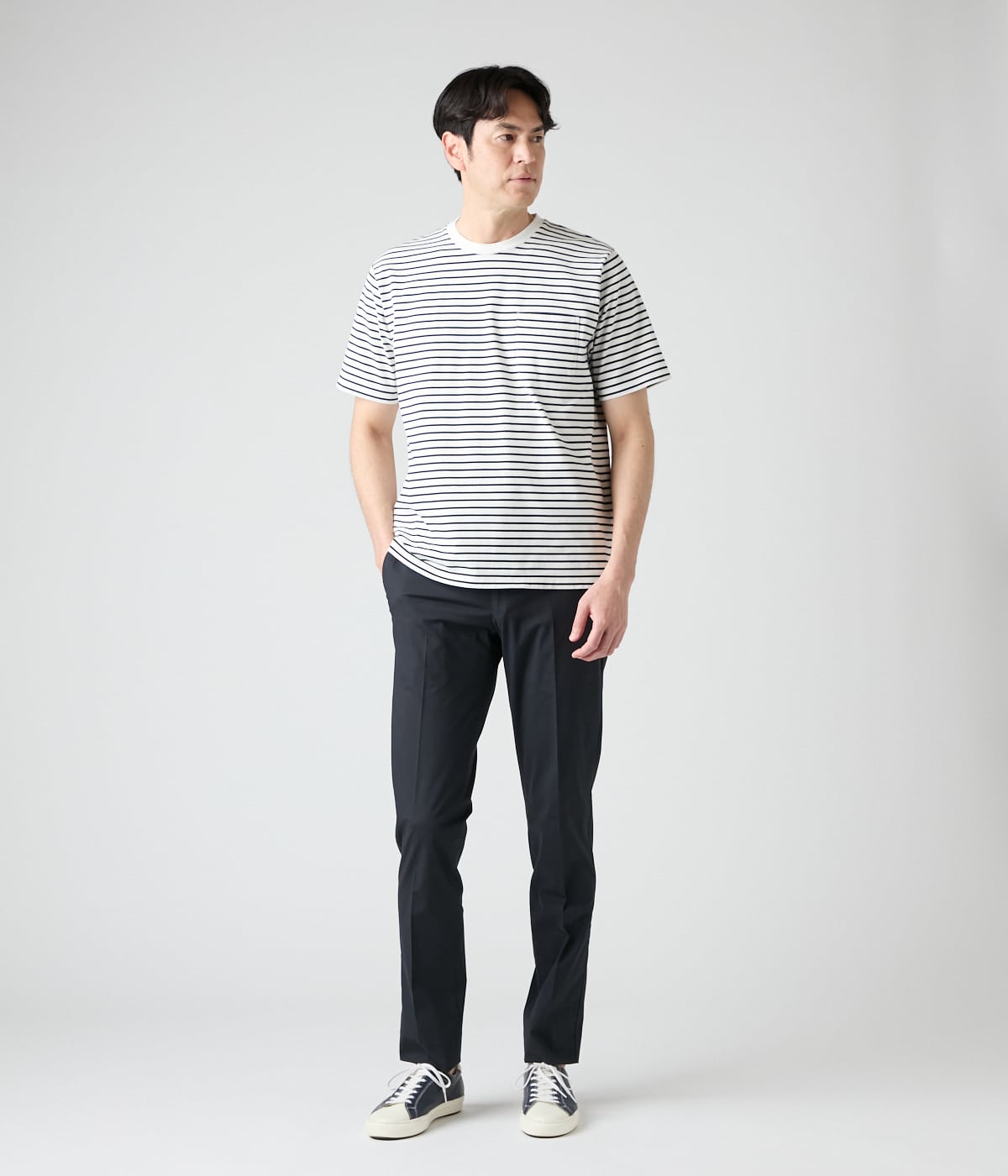 清涼感のあるコードレーン生地のパンツ。しっかりとしたハリ感がありながらストレッチ性があり、ひんやりと感じる接触冷感性が特徴です。タイドアップしたビジカジスタイルから休日のカジュアルスタイルまで、オンオフ問わず活躍します。