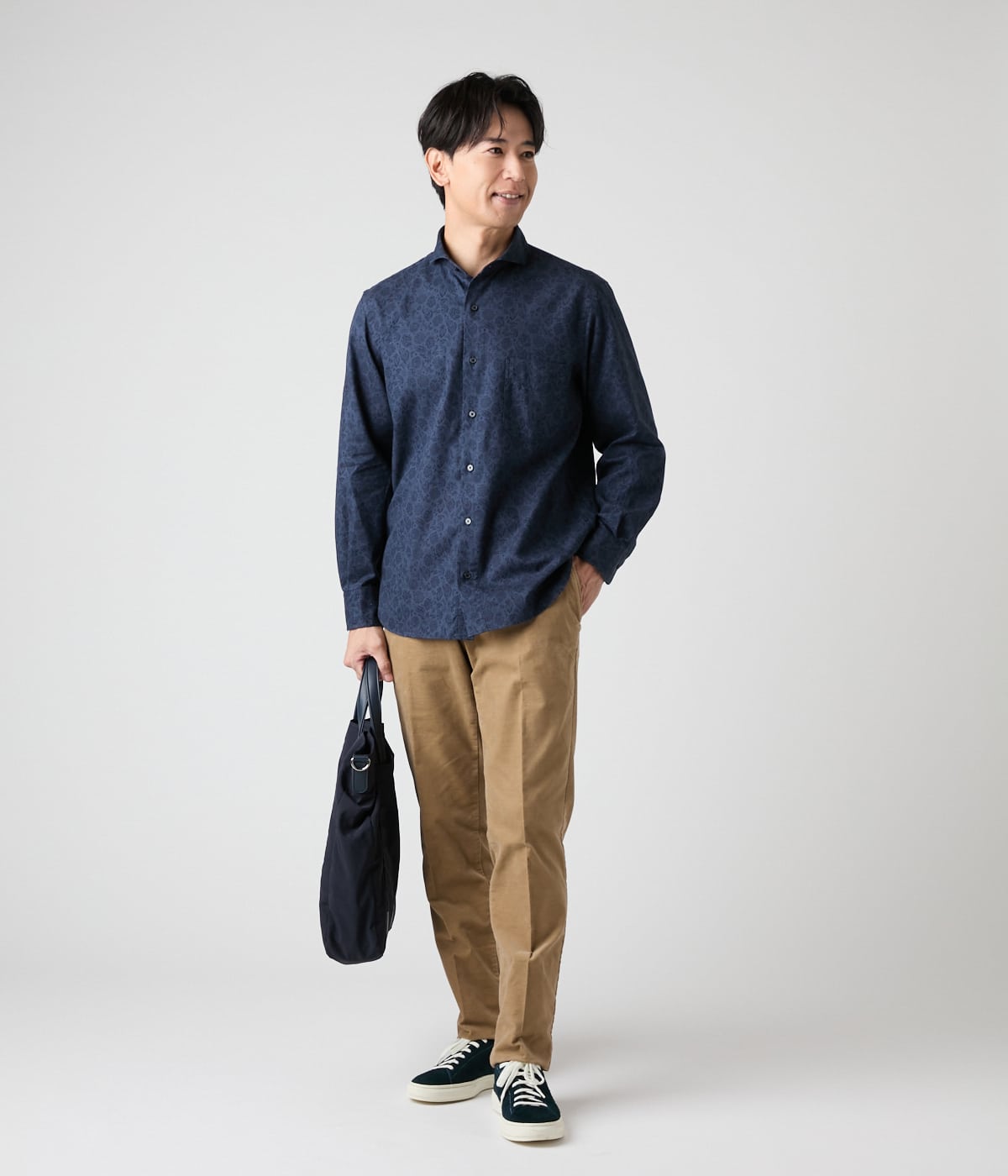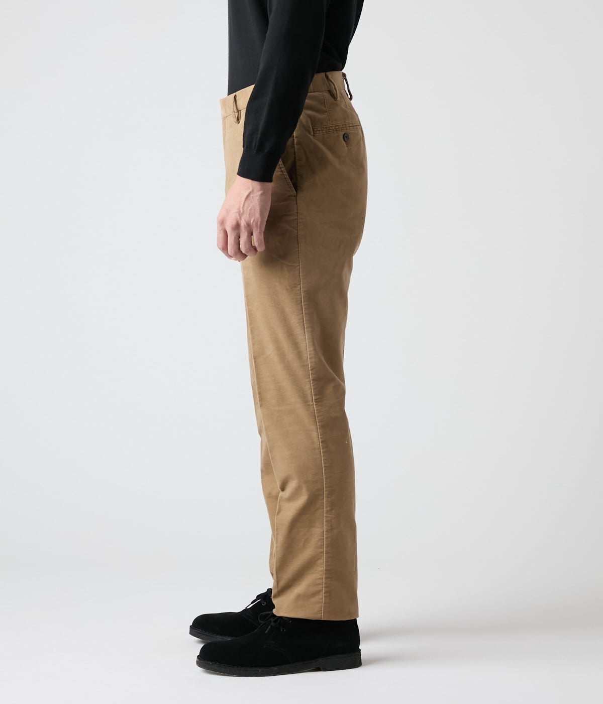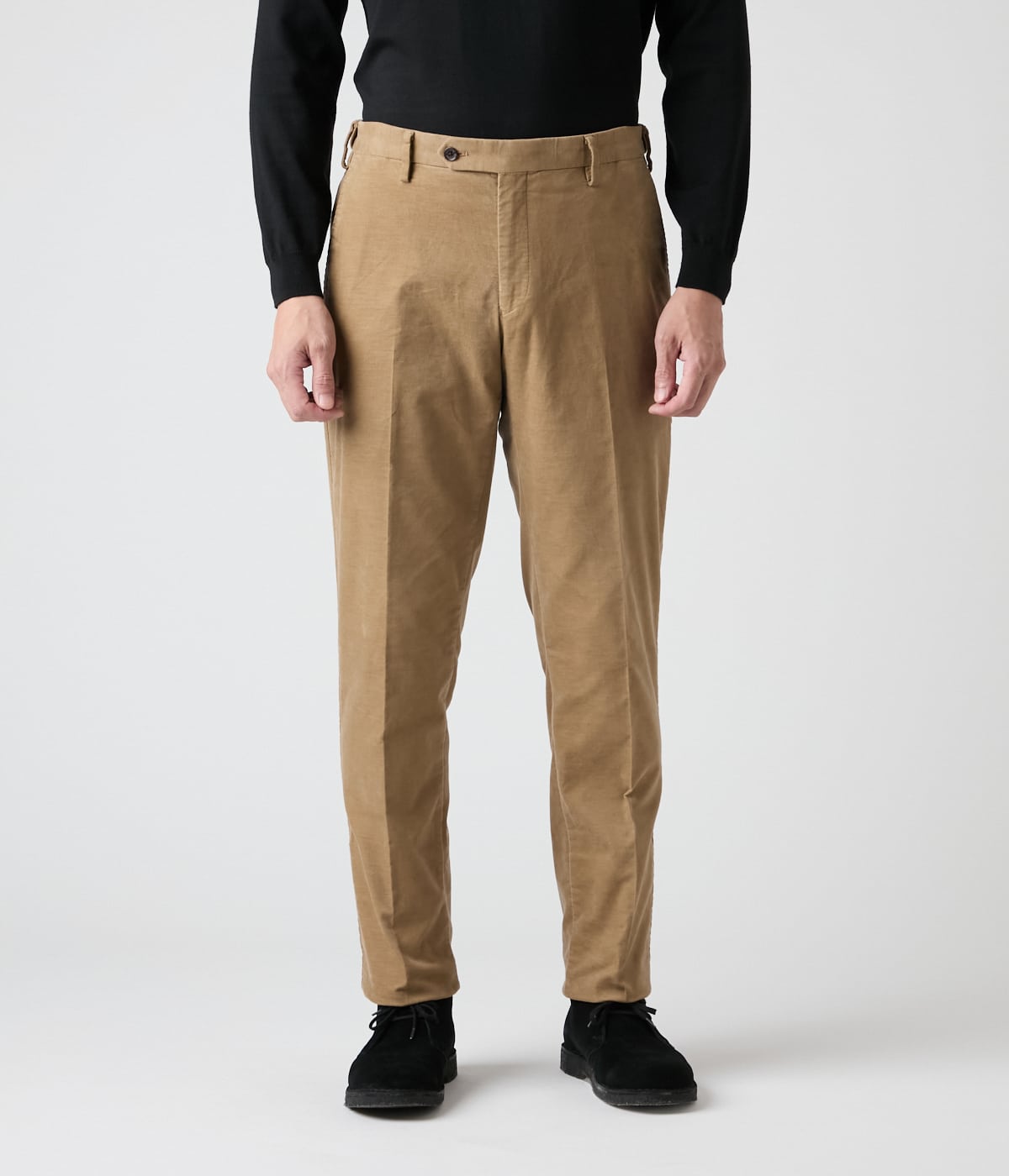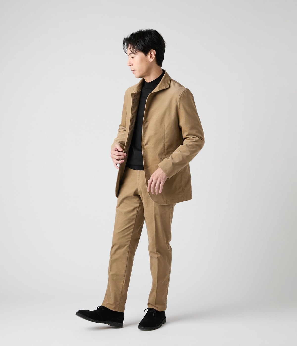 適度に起毛をかけた表面を均一にカットした、斜めコーデュロイのセットアップ対応パンツ。膨らみがあり伸縮性に優れた表地に洗い加工を入れて、程よいカジュアル感をプラスしています。同色・同素材のアウタージャケットと合わせたセットアップスタイルや、アウターの色を組み替えたジャケット×パンツスタイルがおすすめです。