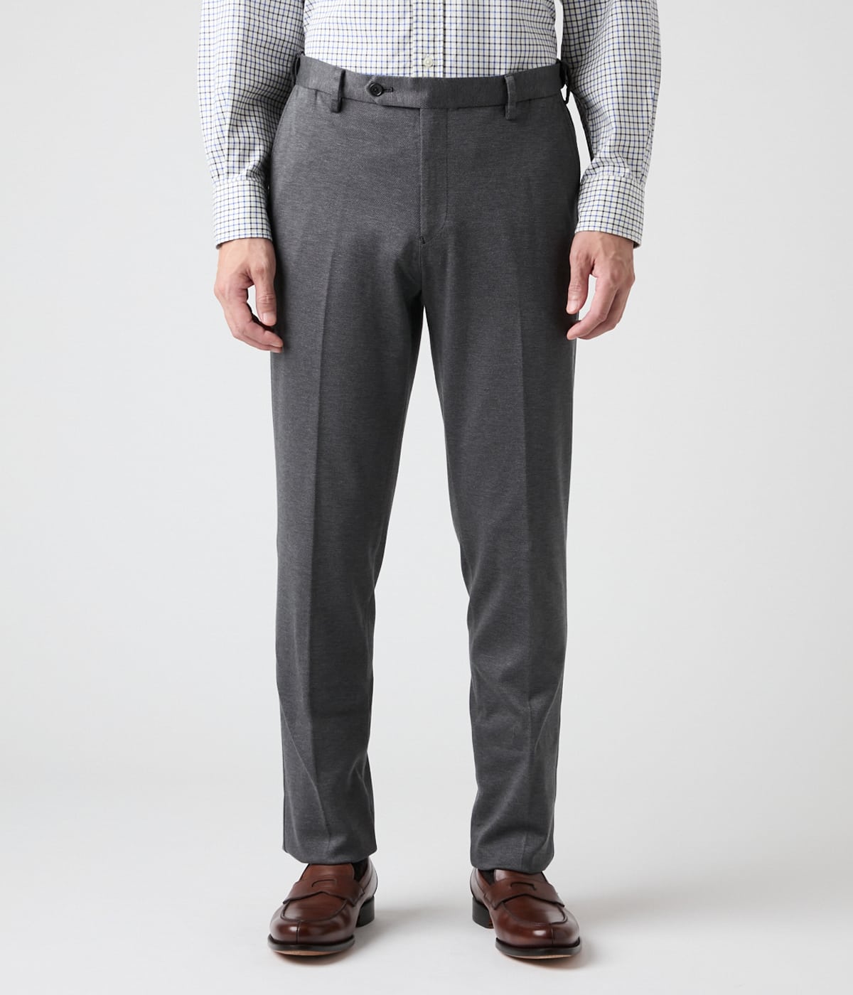 ウールライクな表情とジャージー生地の快適な穿き心地を両立したパンツ。東レ社の発熱繊維「ソフトサーモ」を使用した機能性生地を採用しています。 柔らかな温かさのあるウール調の風合いが、季節感のある着こなしを叶える1本です。