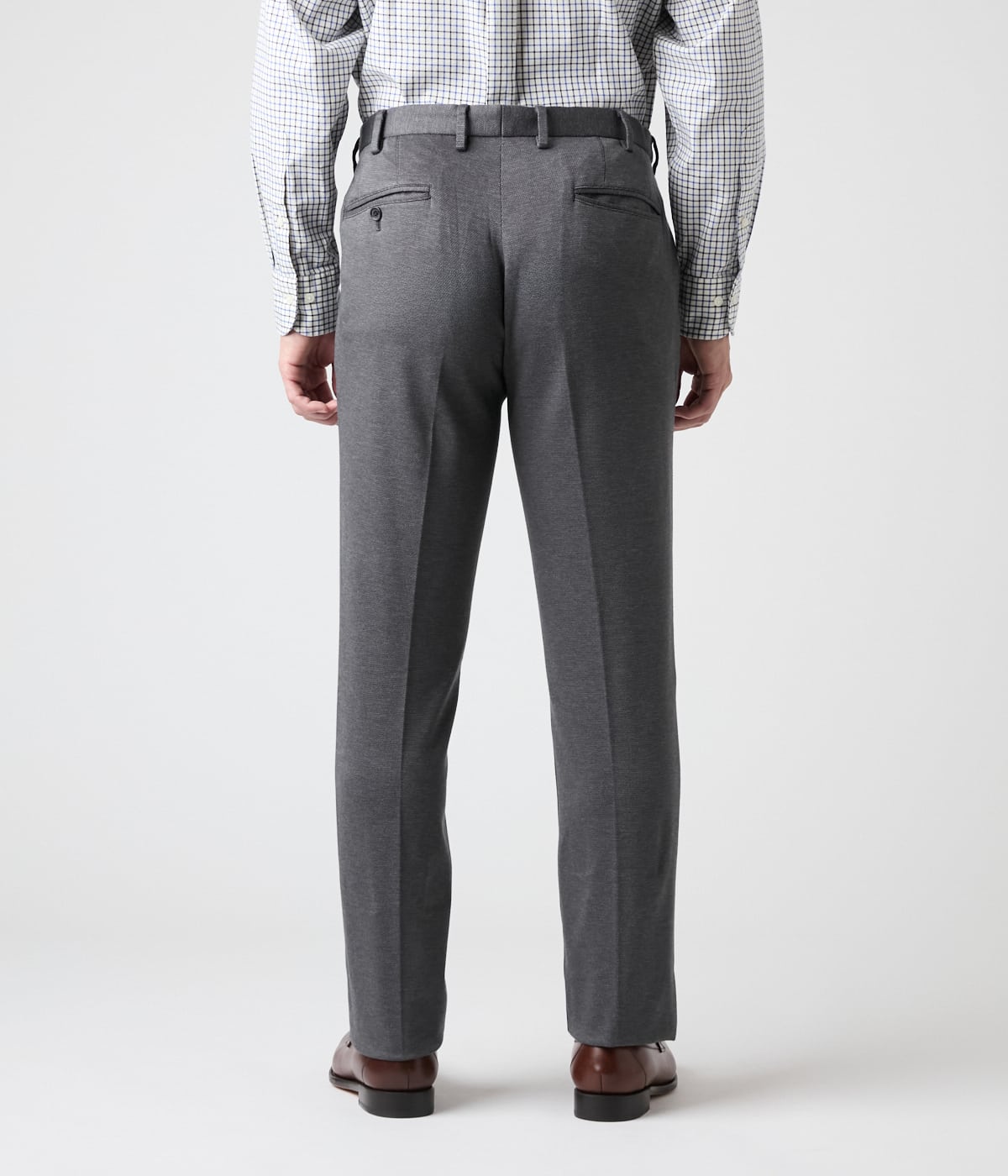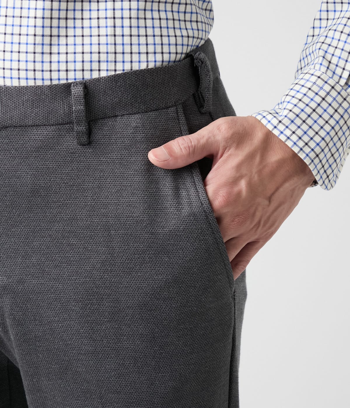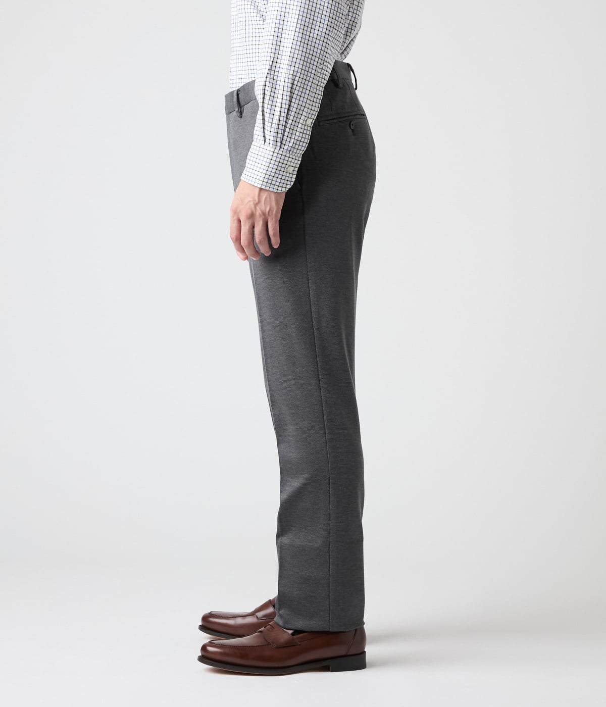 テーパードシルエットのスリムノータックモデルをベースに、横・後ろから見た際のシルエットをよりすっきりとスタイリッシュな印象になるよう設計したパンツモデル。ウエストサイド部分にはアジャスト仕様を採用し、長時間着用してもストレスが少なく快適な穿き心地です。2024年春夏シーズンより裾幅を0.5cm大きくし、ひざ下にゆとりを持たせています。