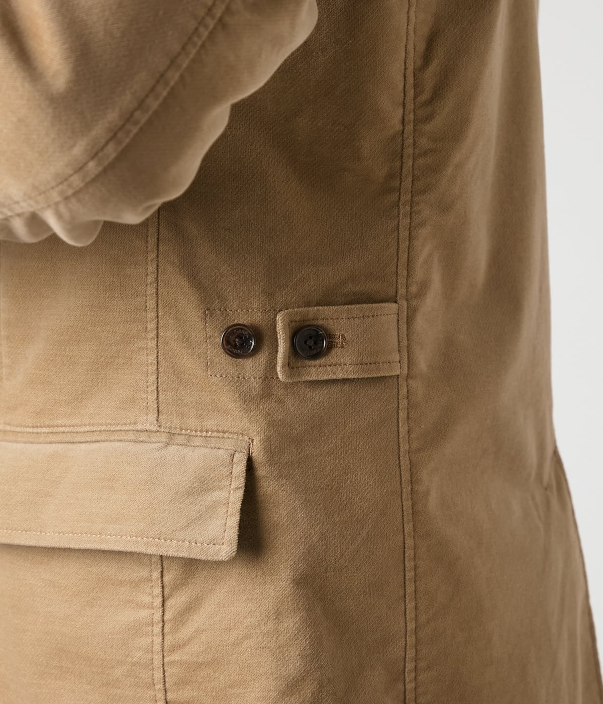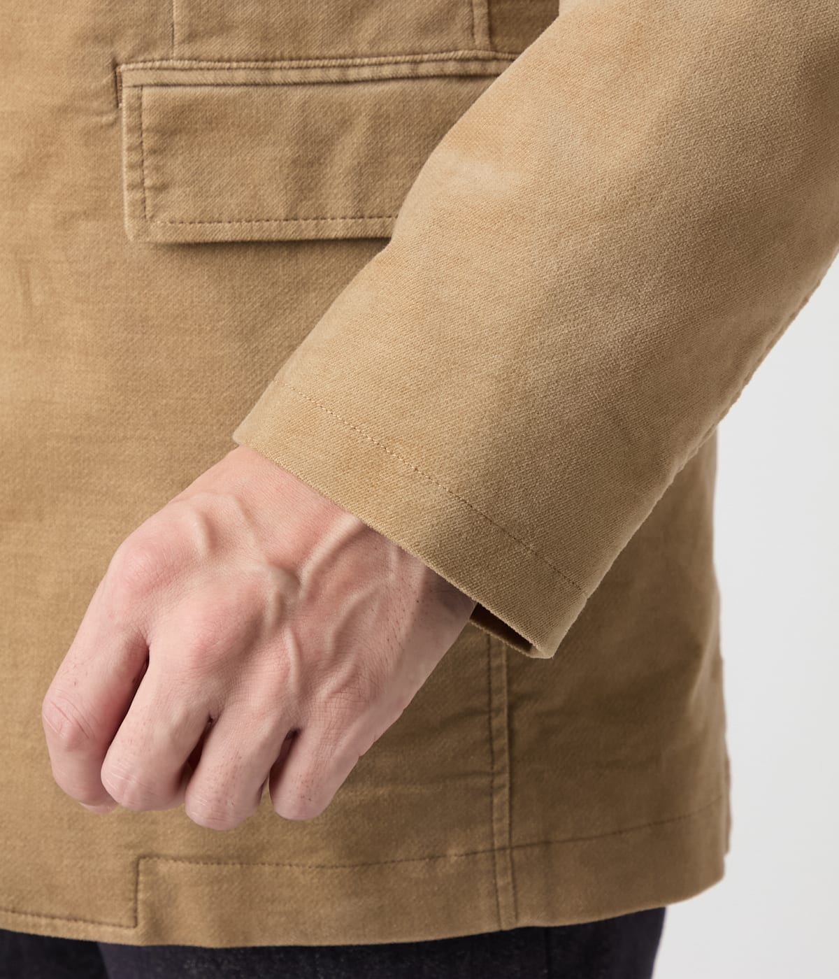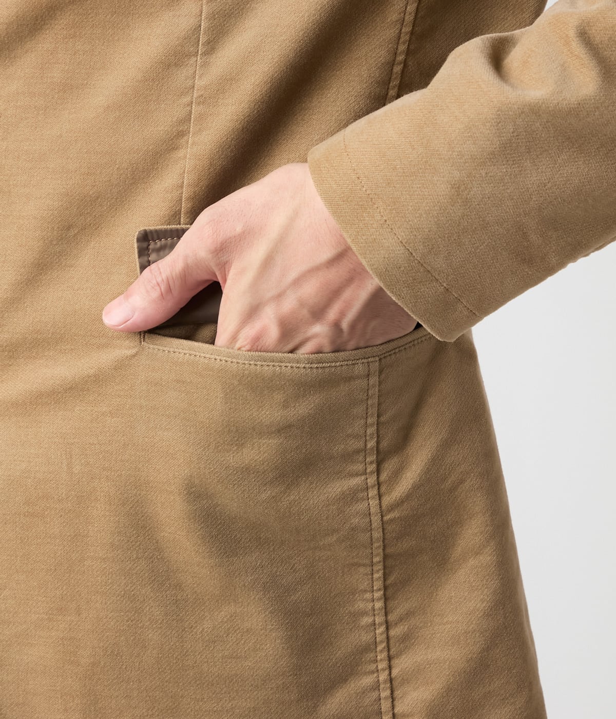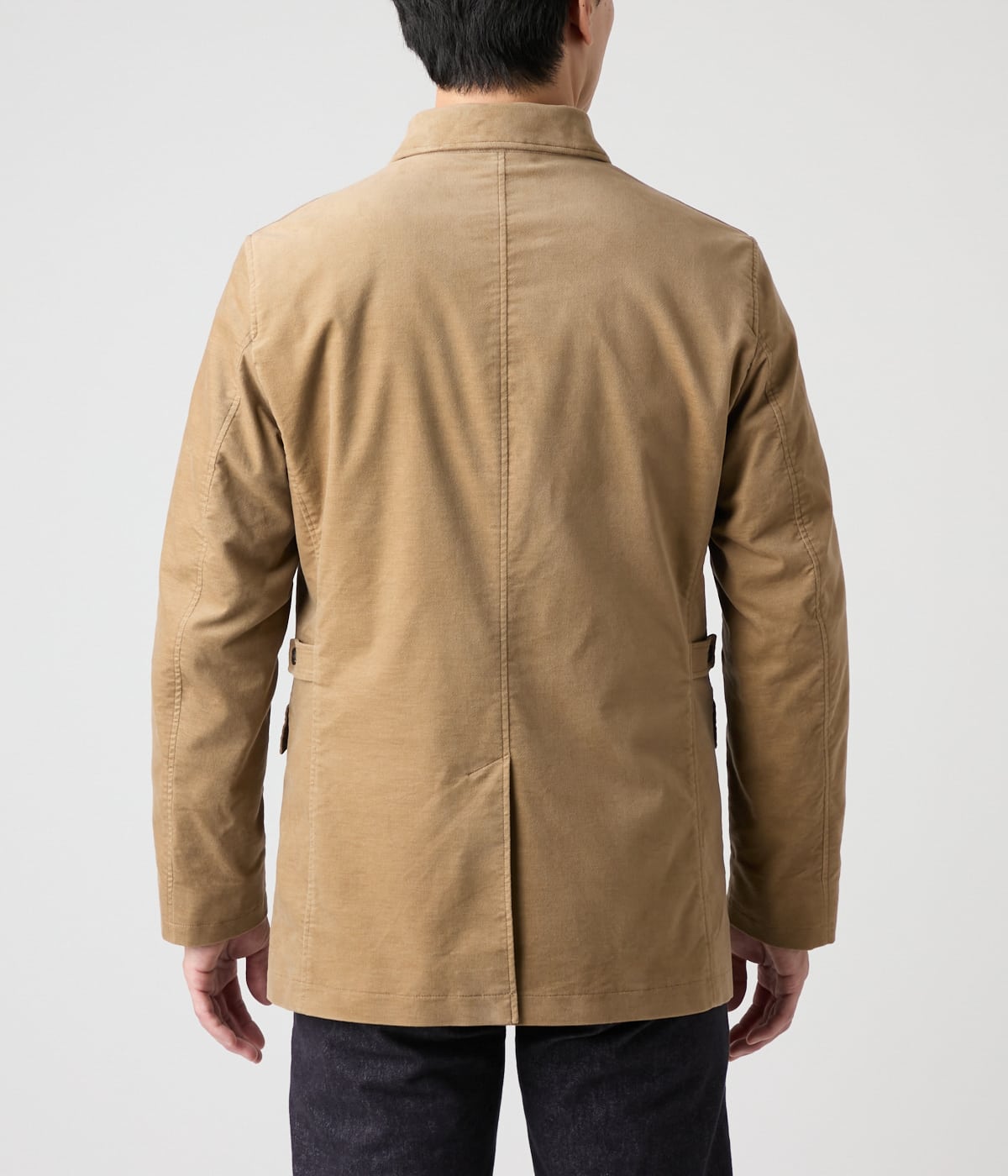 コットン、ポリエステル、ポリウレタン素材を使用。表面を均一にカットした膨らみがあり繊細な畝が特徴の、伸縮性があるコーデュロイ生地を使用しています。