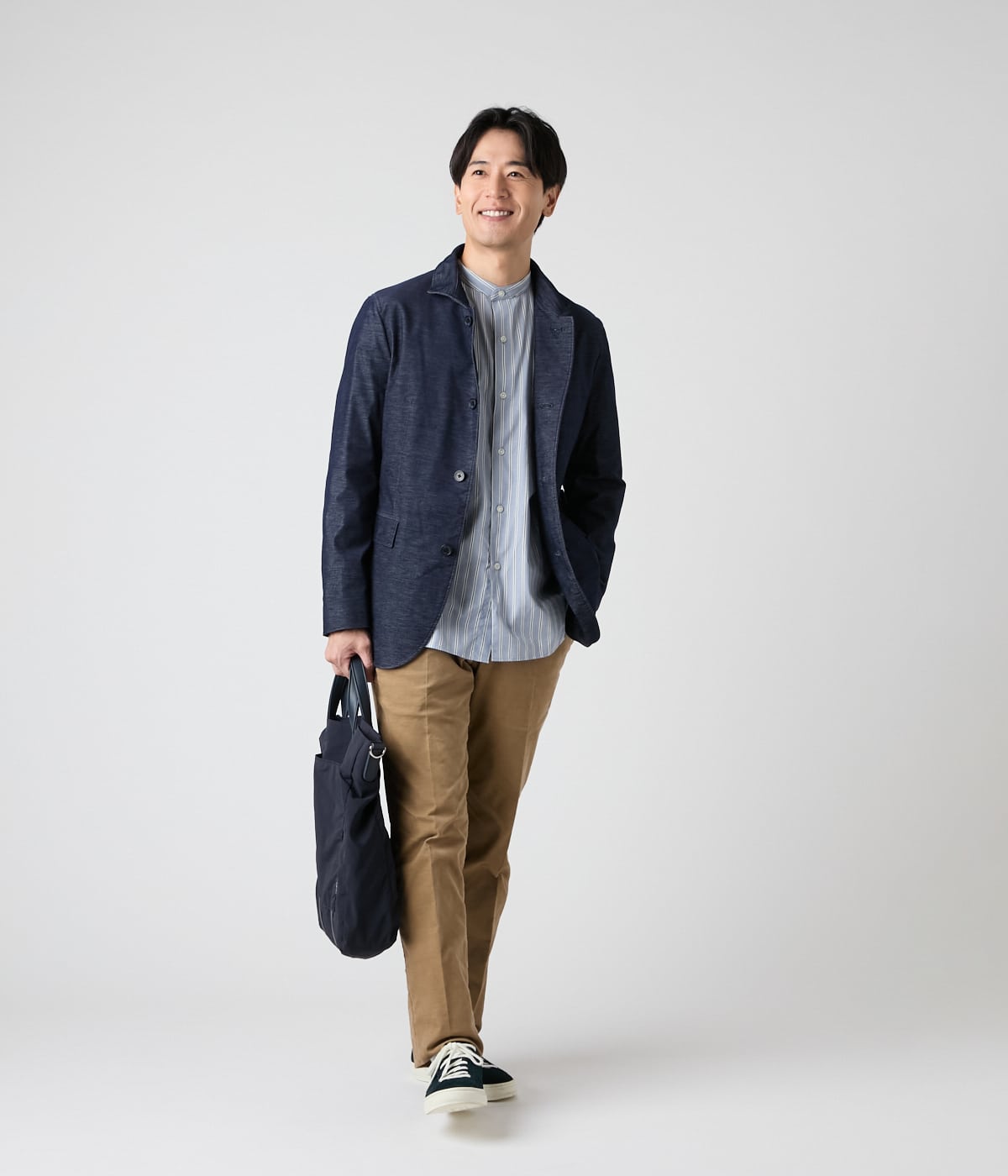 定番モデルをカッタウェイカラーにアップデートしたセットアップ対応のコンバーチブルアウター。膨らみがあり伸縮性に優れた表地に洗い加工を入れて、程よいカジュアル感をプラスしています。同色・同素材のパンツと合わせたセットアップスタイルや、パンツの色を組み替えたジャケット×パンツスタイルがおすすめです。