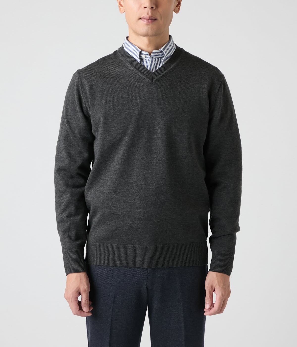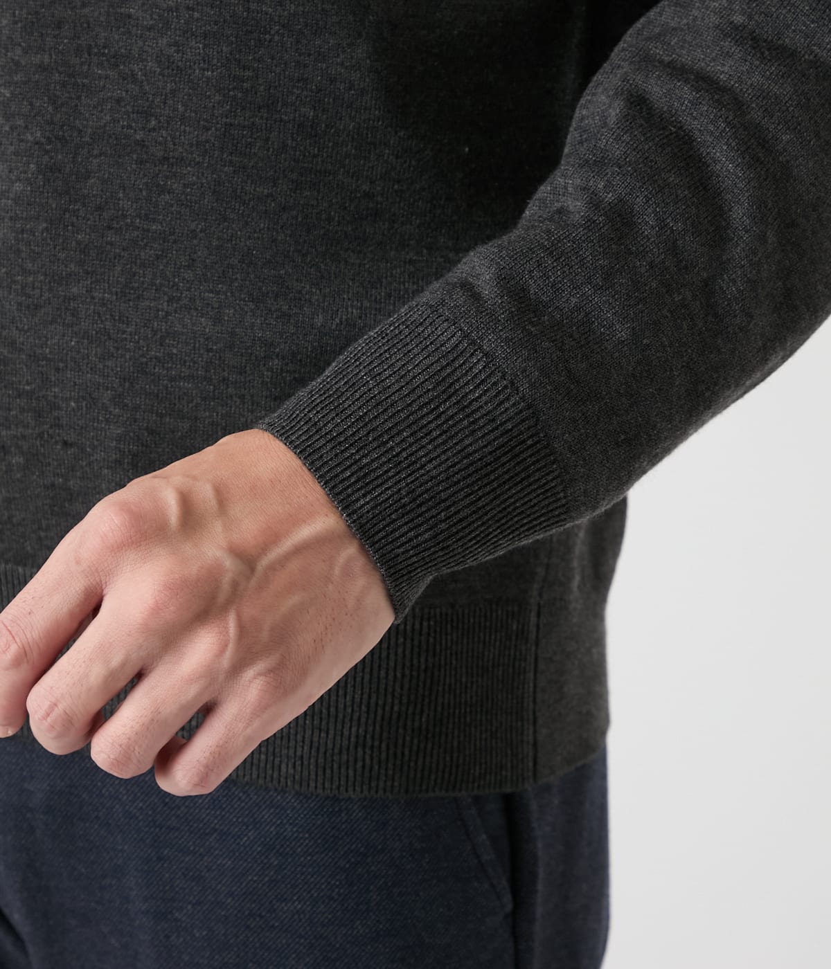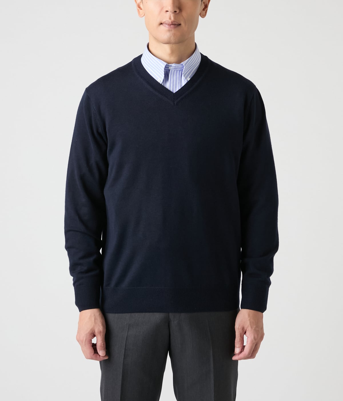 無駄を省いたミニマルなVネックデザイン。すっきりとした印象でジャケットを羽織った際にも繊細な美しさが引き立ちます。