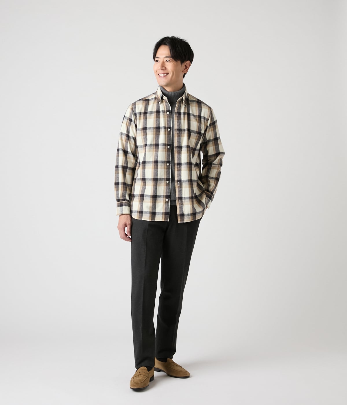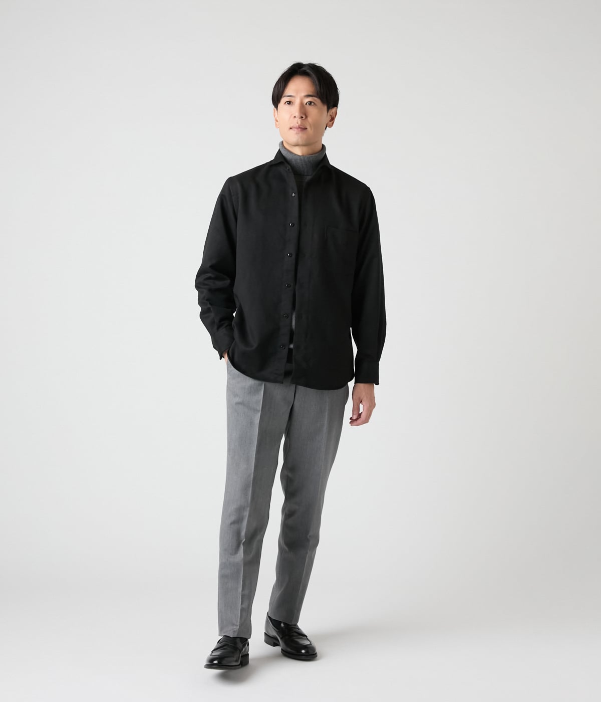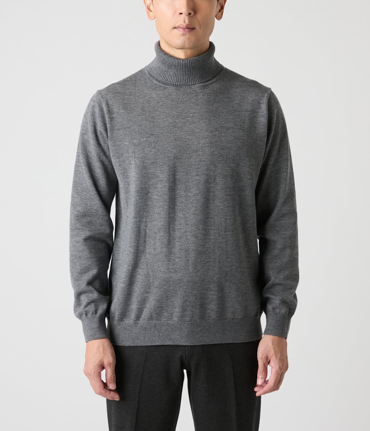 ベーシックで汎用性のある無地デザイン。程よいフィット感のあるシルエットで、首元に自然なボリュームが出るタートルネックニットは、ジャケットやブルゾンのインナーだけではなく、秋口のシャツとのレイヤードで季節感を演出できます。
