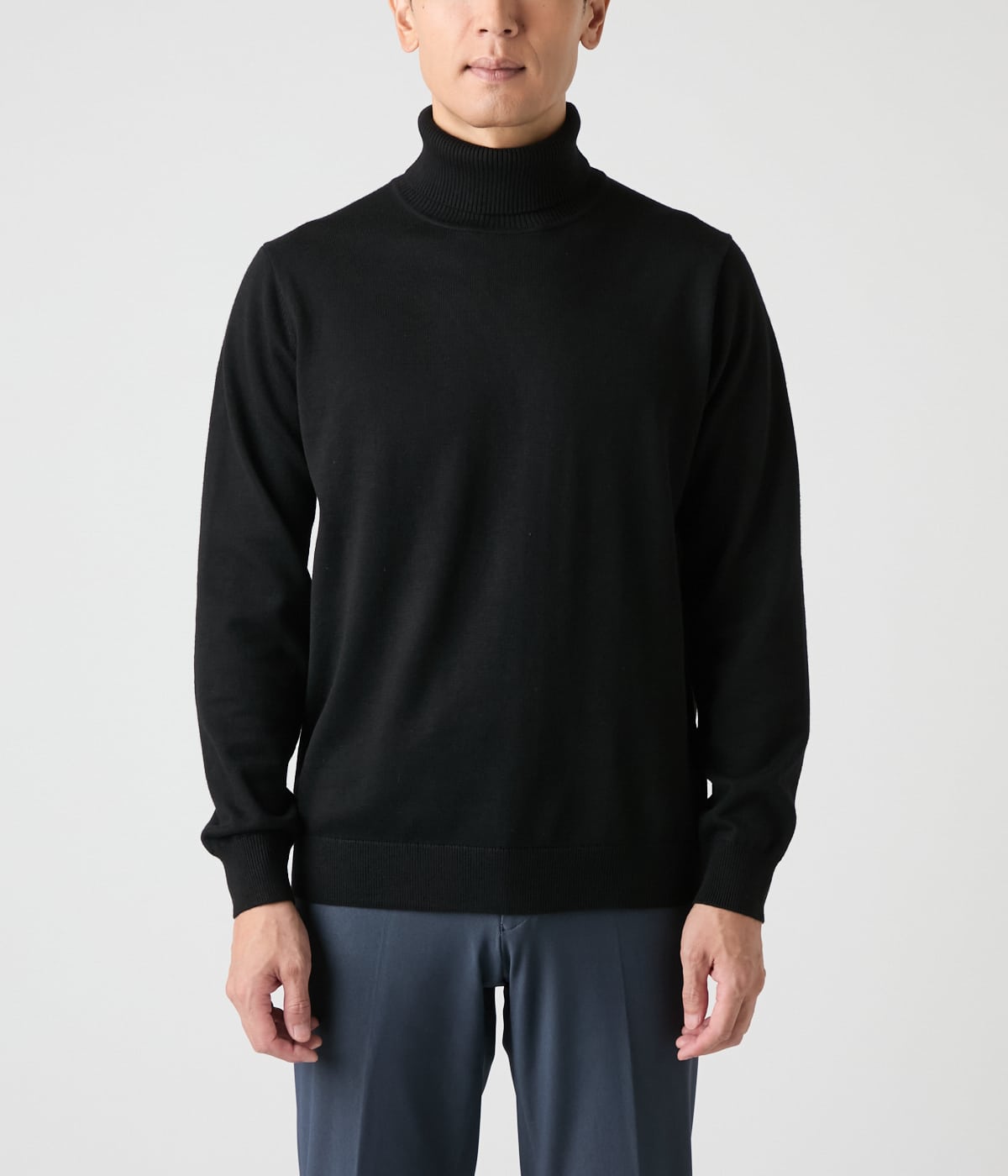 首元までしっかり暖かく、1枚でもジャケットインでも様になるタートルネックニット。ビジネスカジュアルから休日スタイルまで、幅広いシーンで活躍する万能アイテムです。シンプルながら上品な印象を演出し、秋冬の定番として長く愛用できます。