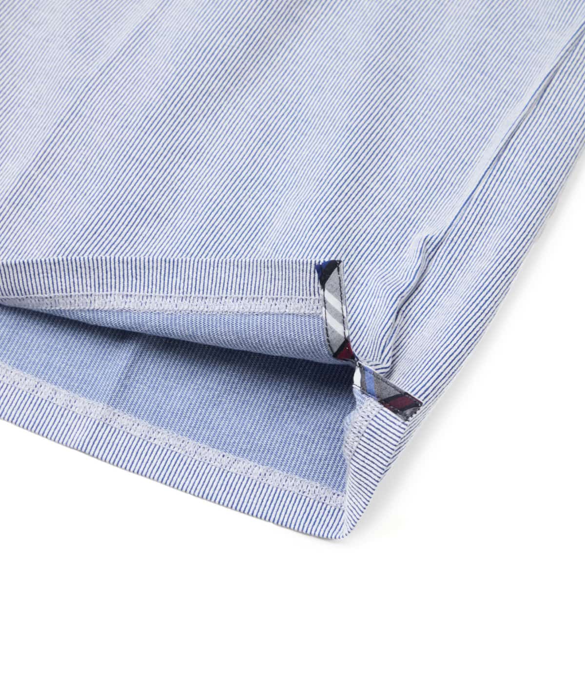 オンオフ兼用で着用可能なストライプデザイン。裾のスリットと台襟裏にニューヨーカータータン柄を施し、コーディネートのアクセントになります。