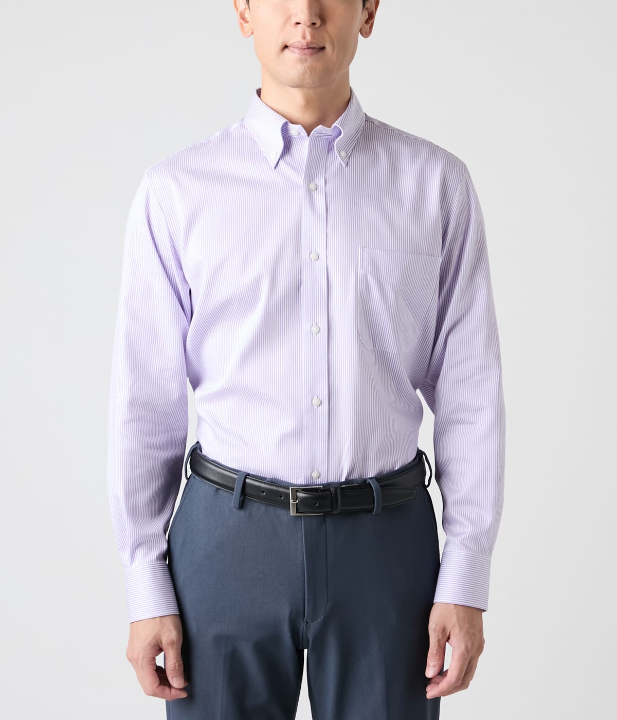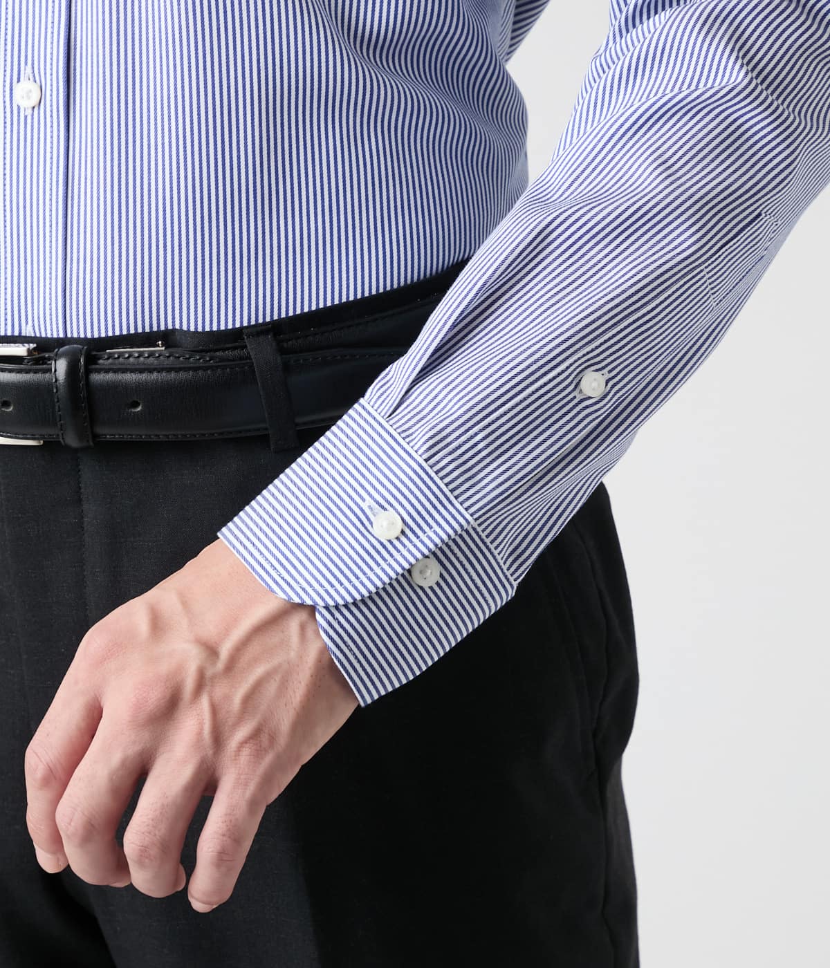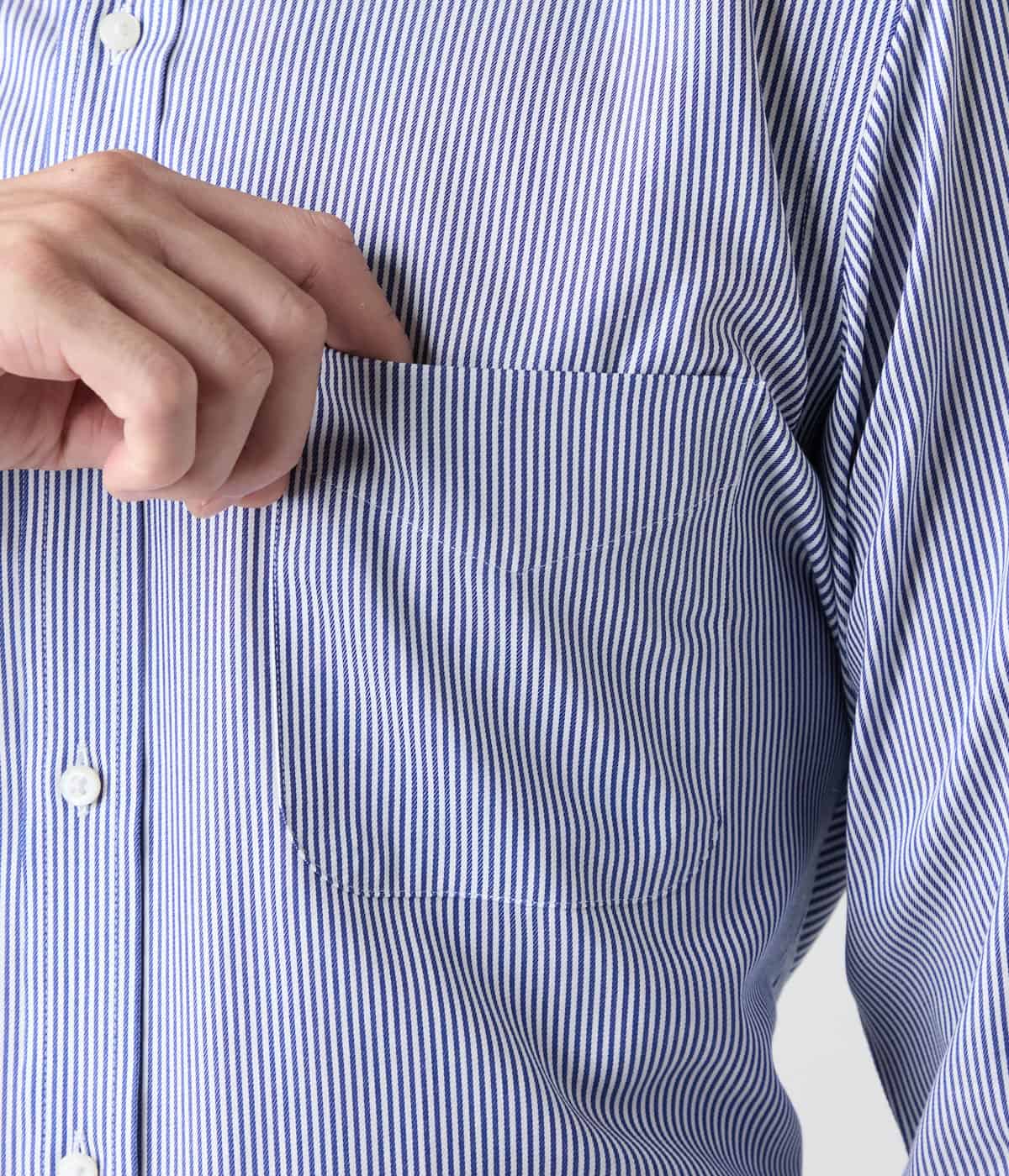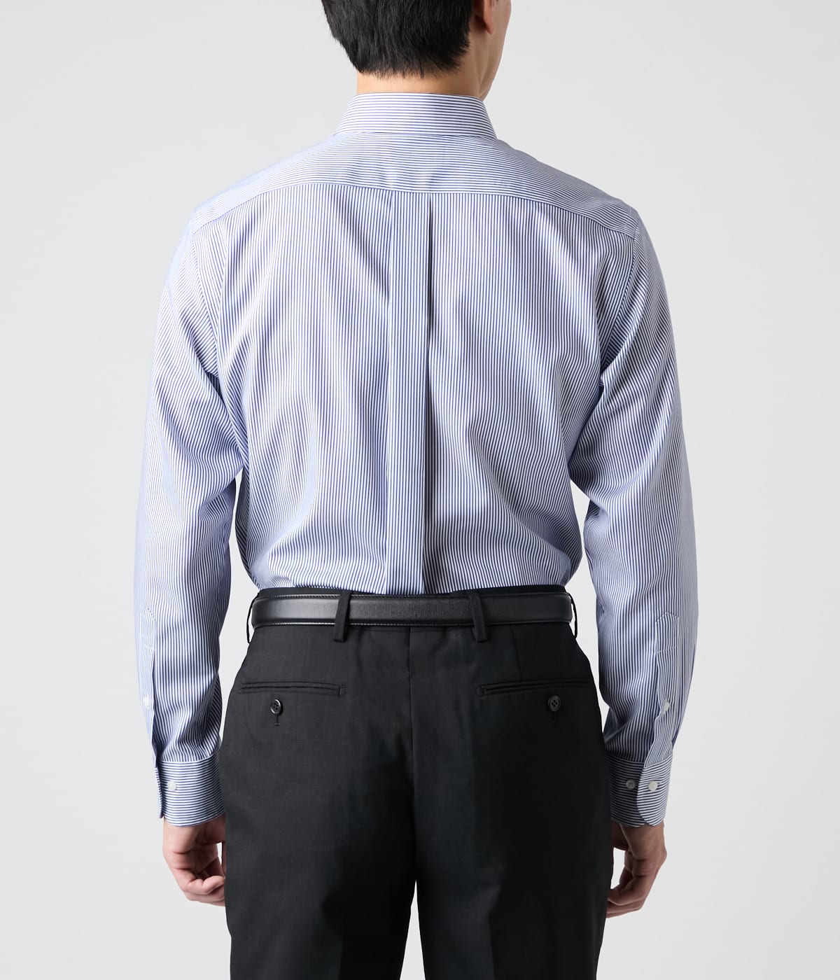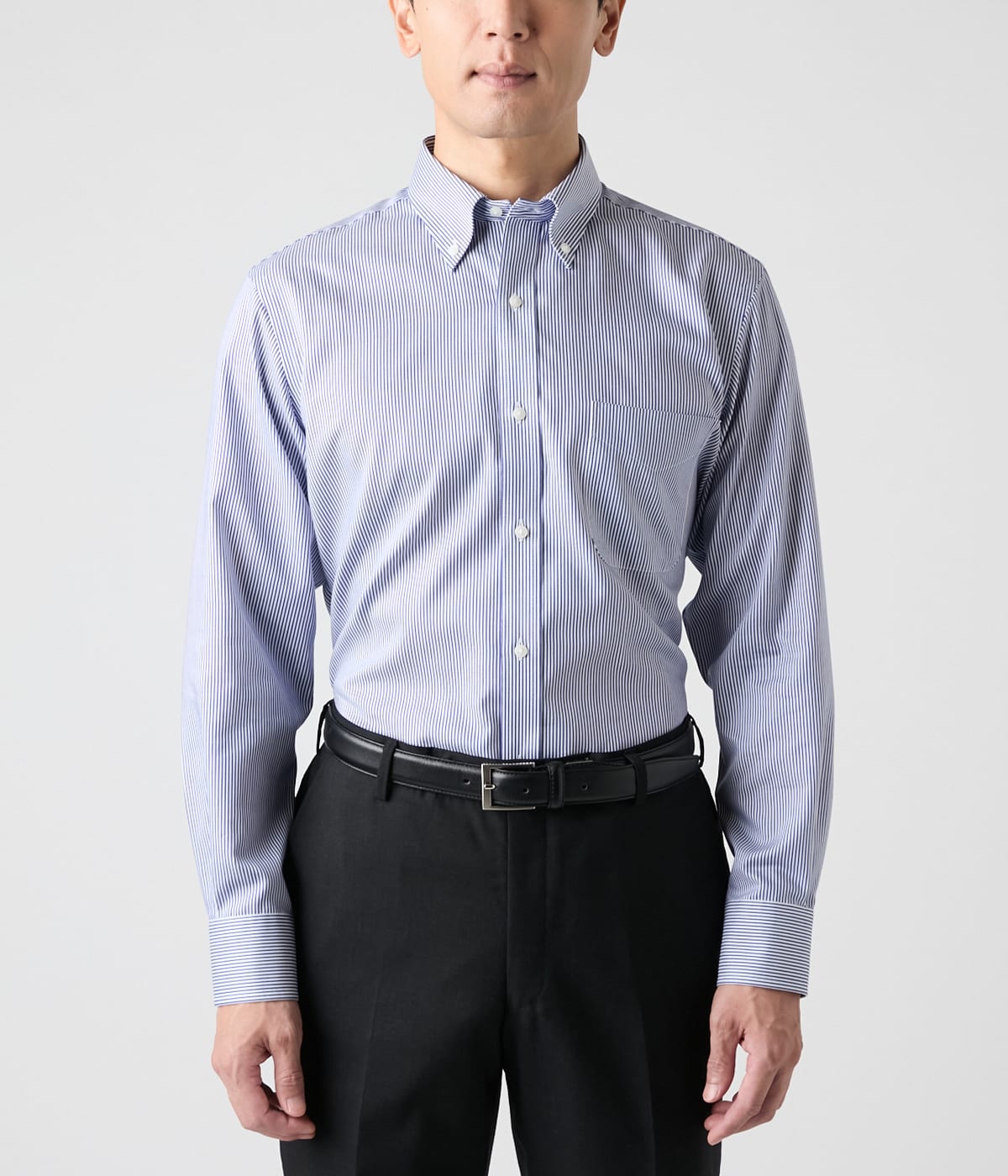 立体感のあるドビー組織に上品なロンドンストライプを施したボタンダウンシャツ。シャープなストライプ柄ながら奥行きを持たせ、ビジネスからカジュアルまで幅広く品格ある着こなしを叶えます。タイドアップしたビジネススタイルからノーネクタイのラフなスタイルまで、シーズンを通して活躍します。