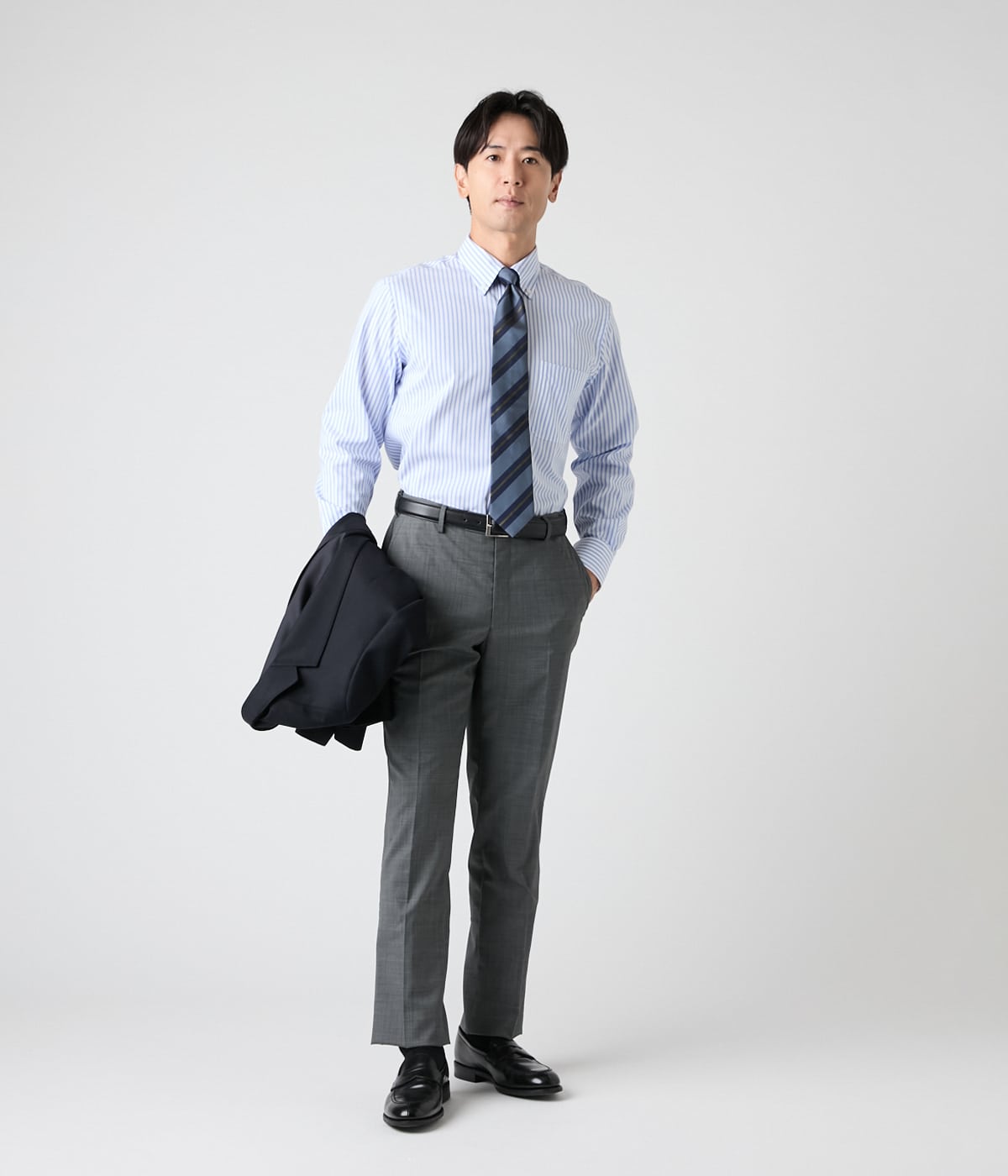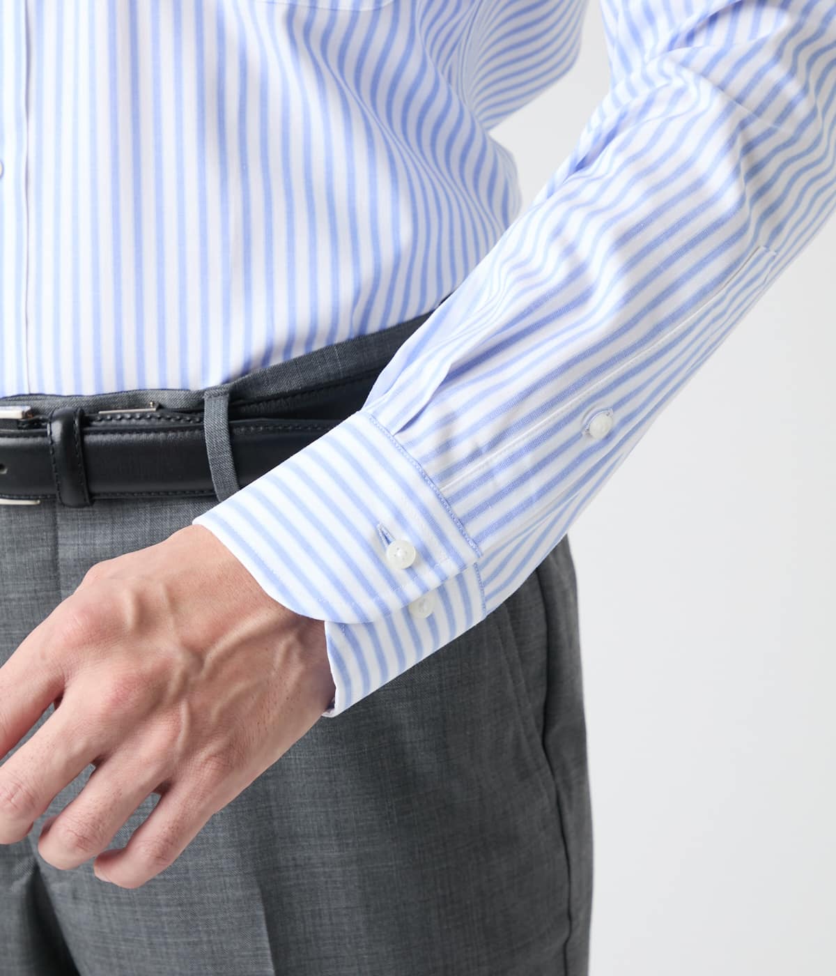 シワになりにくいEASY CARE加工が施され、コットン100%ながら生地の加工と特殊縫製技術により、シワを軽減させたシリーズ。