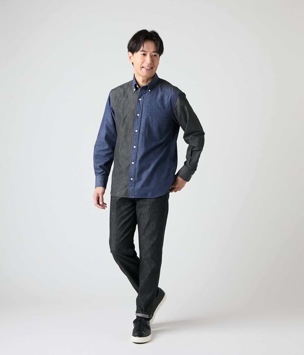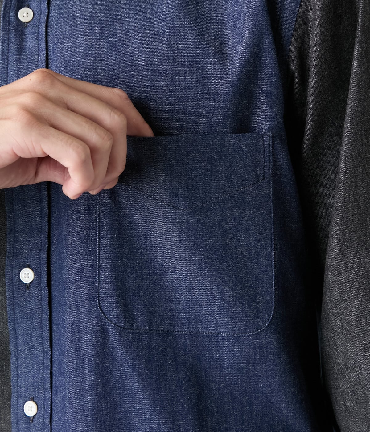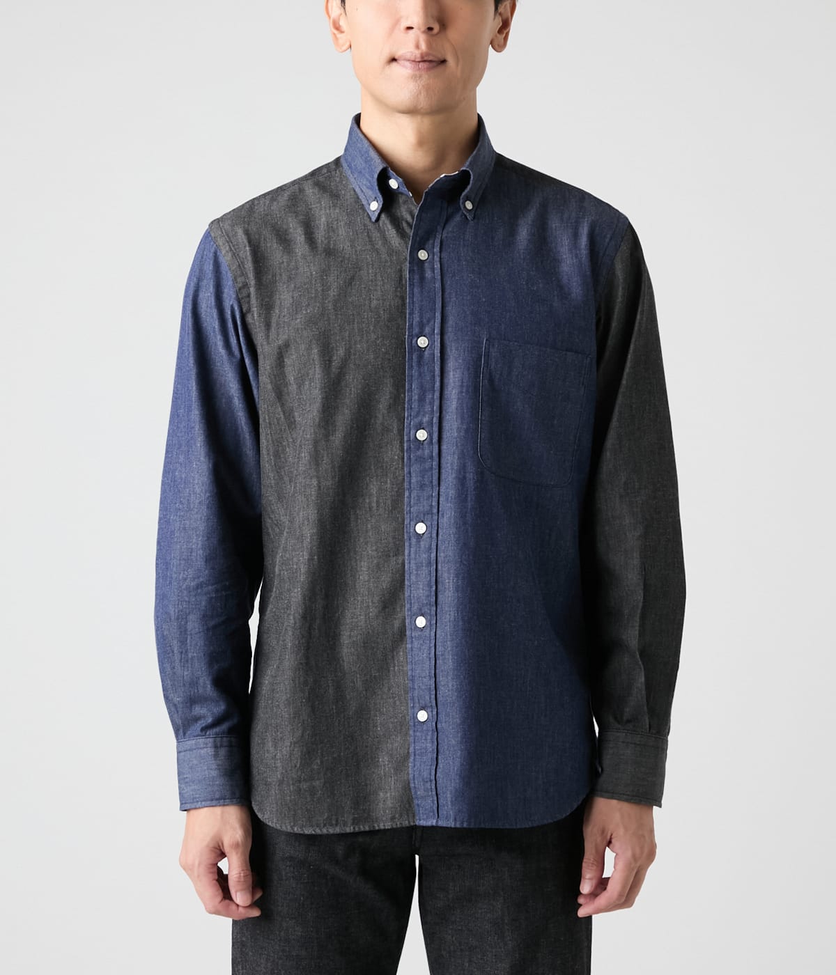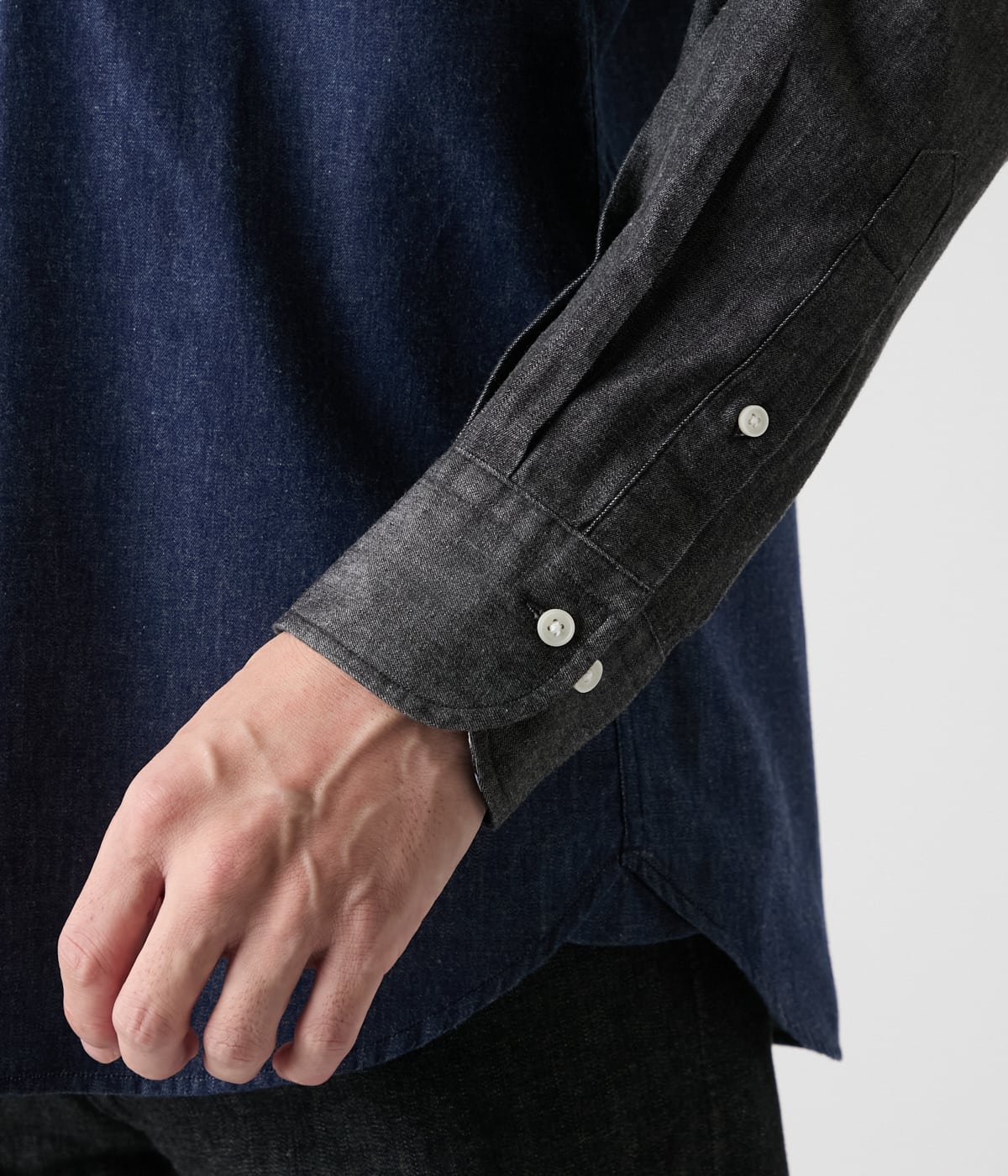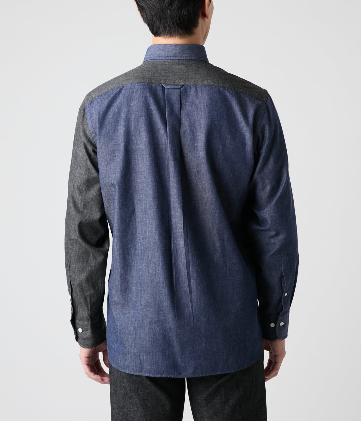 デニムライクな風合いのシャンブレーツイルを用い、クレイジーパターンで仕上げた長袖ショートボタンダウンシャツ。製品洗いによって生まれる自然な色合いが、こなれた雰囲気に仕上がっています。着込むほどに色味の変化を楽しめ、長く愛用できる一着です。単品での着用はもちろん、アウターやニットのインナーとしても幅広く活躍します。
