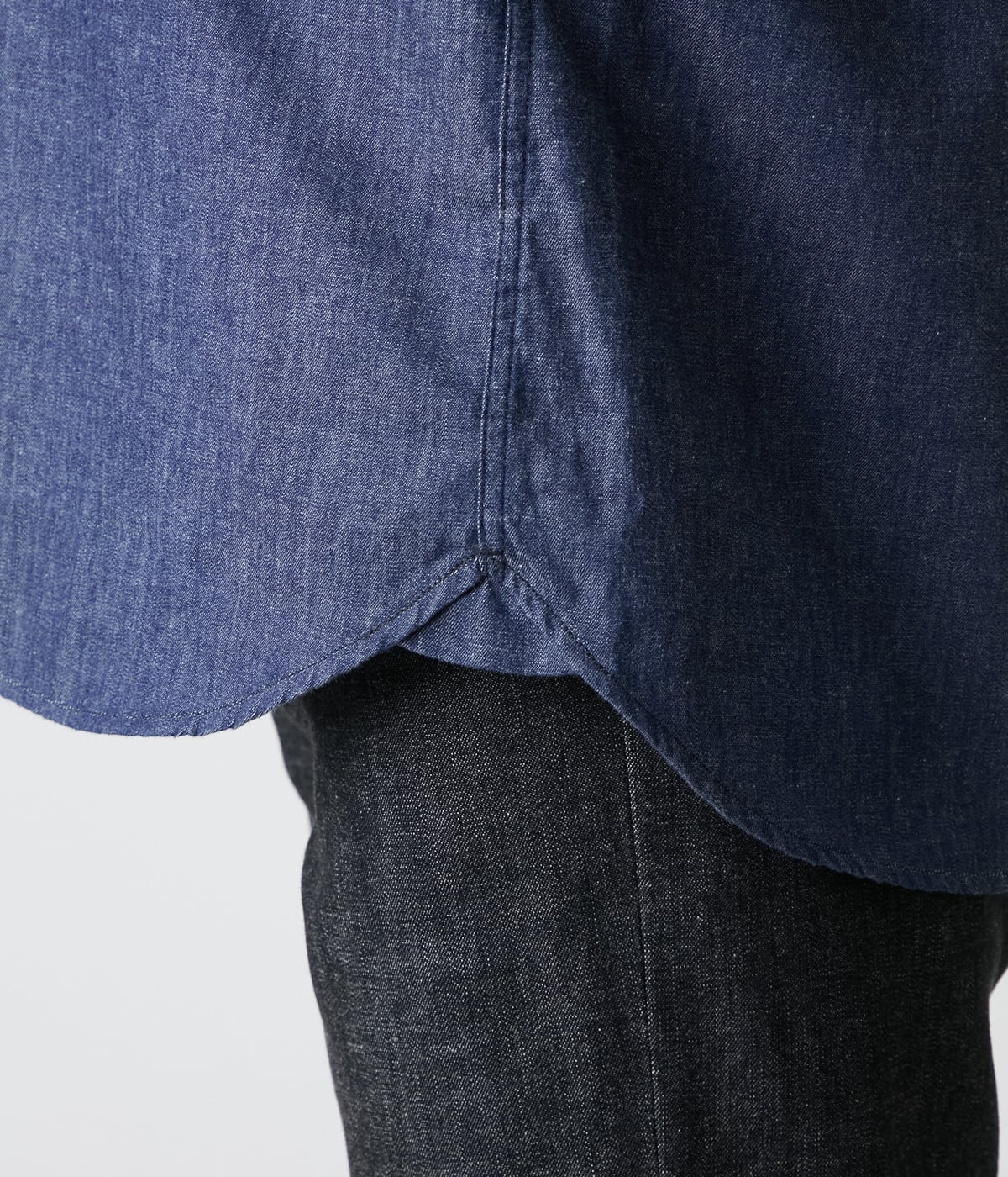 コットン、ポリエステル素材を使用。丈夫さと軽快さを兼ね備えたシャンブレーツイル素材で、デイリーに着回しやすい仕上がりです。