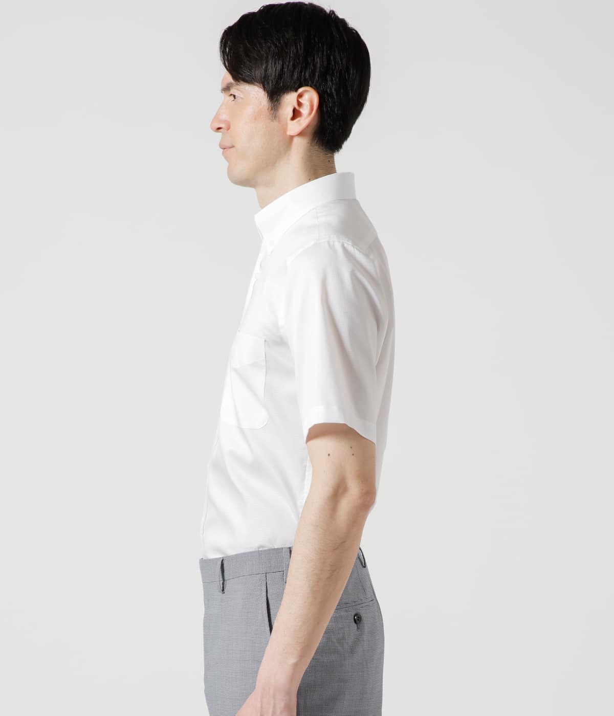 同系色のドビー織りで柄表現したボタンダウンシャツ。吸水速乾性を備えた素材を使用した、汗ばむ季節も快適な着心地を叶えてくれるアイテムです。一見無地見えするデザインは着回しがきく為、初夏から盛夏までオンオフ問わず様々なスタイリングを愉しめます。