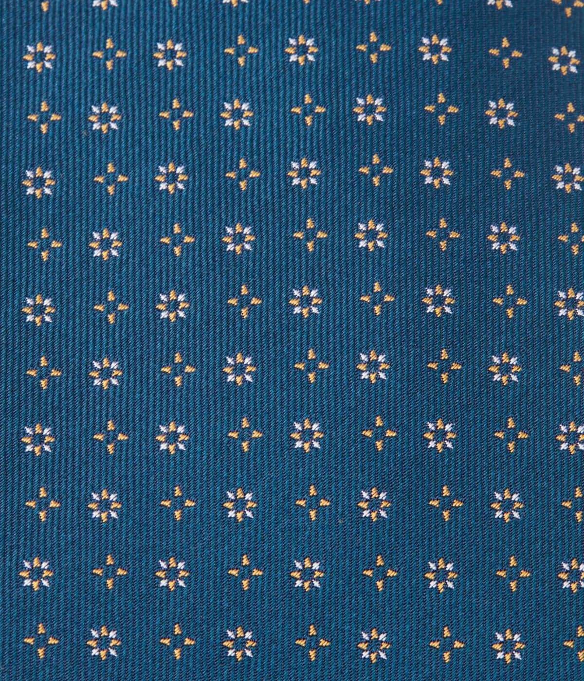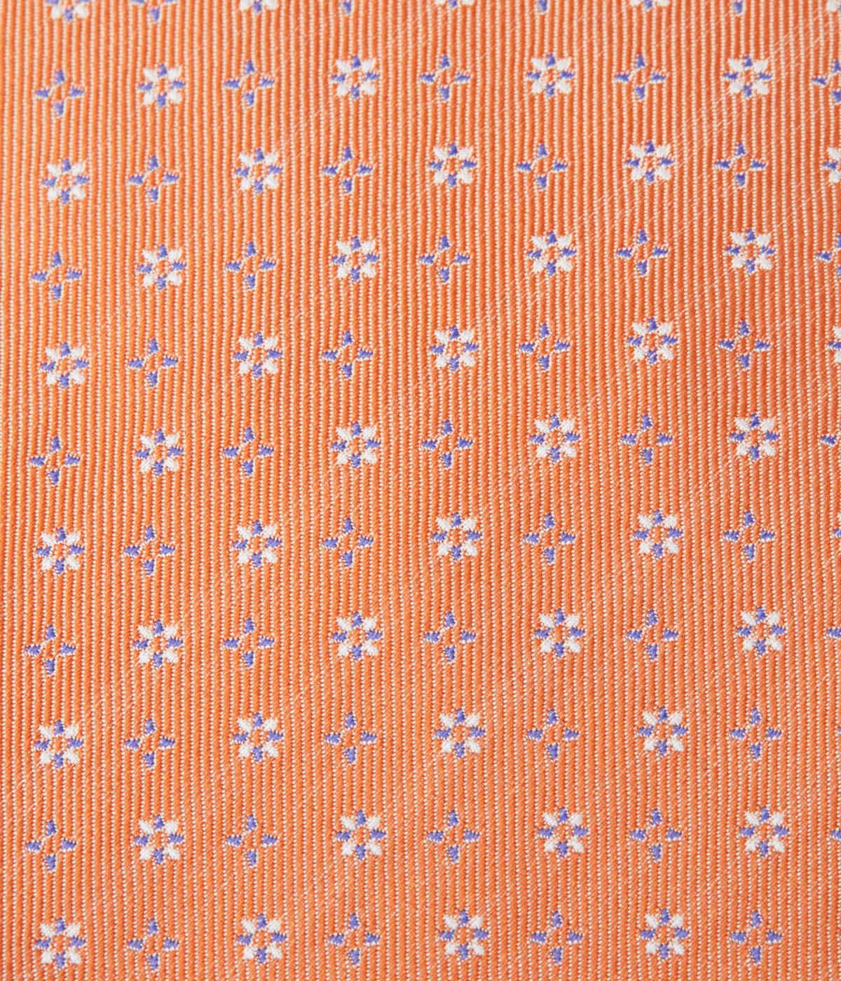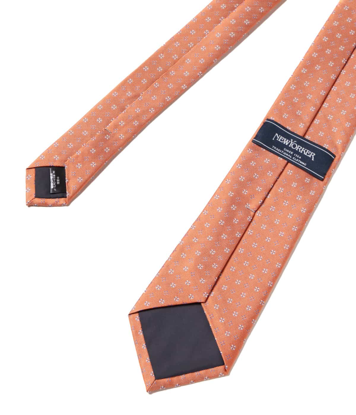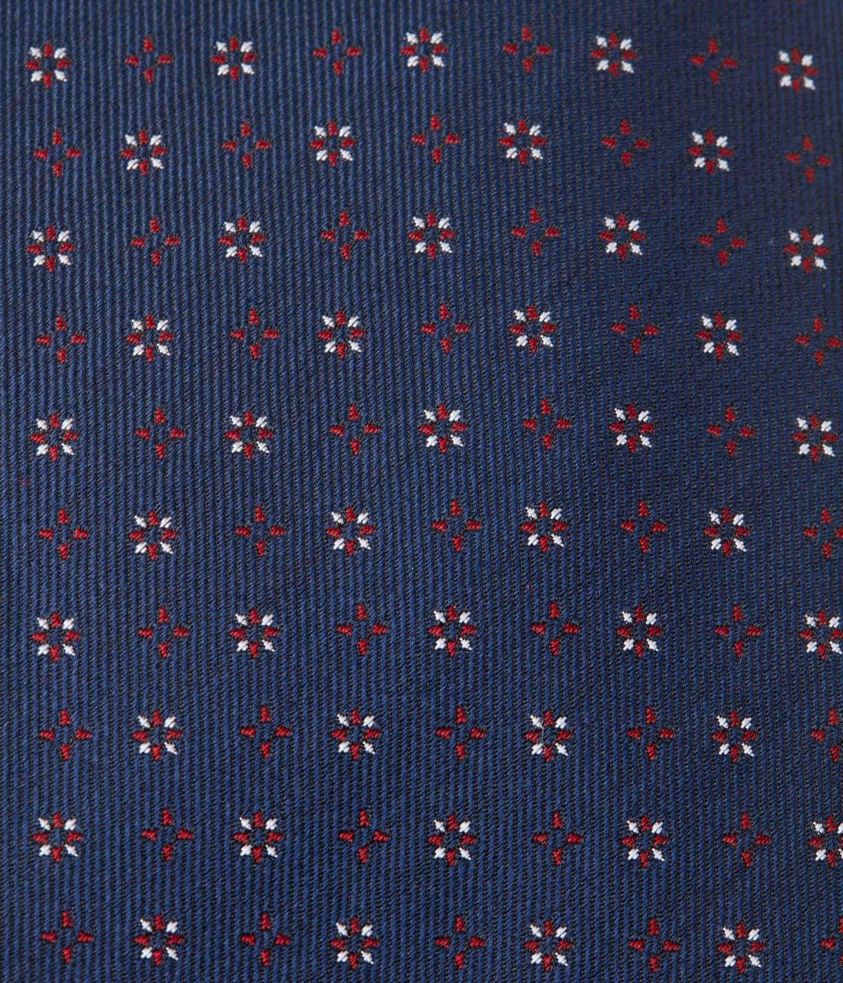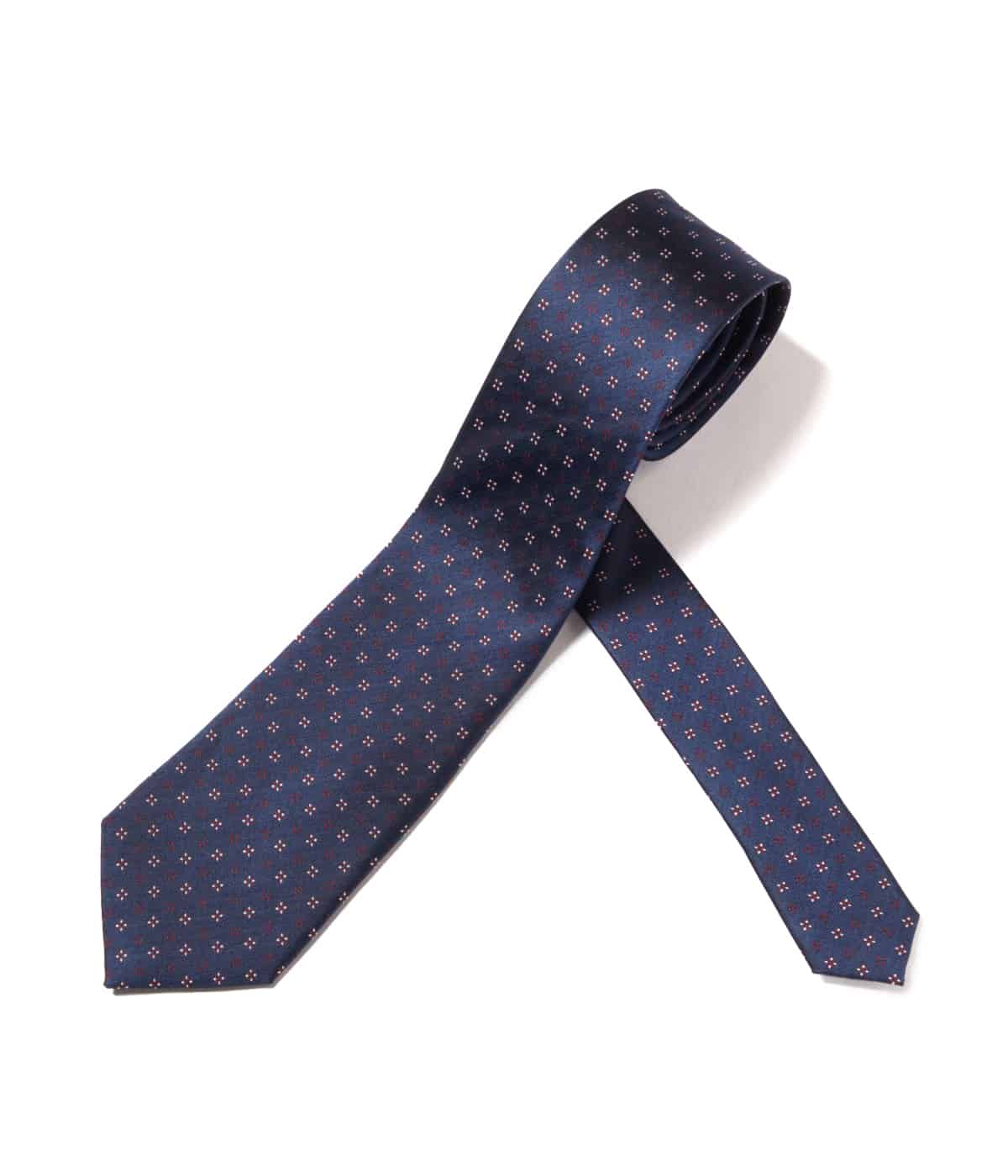 華やかな印象のフラワードット柄のネクタイ。2パターンの小ぶりの花柄を交互に散りばめたデザインは、適度なアクセントになります。