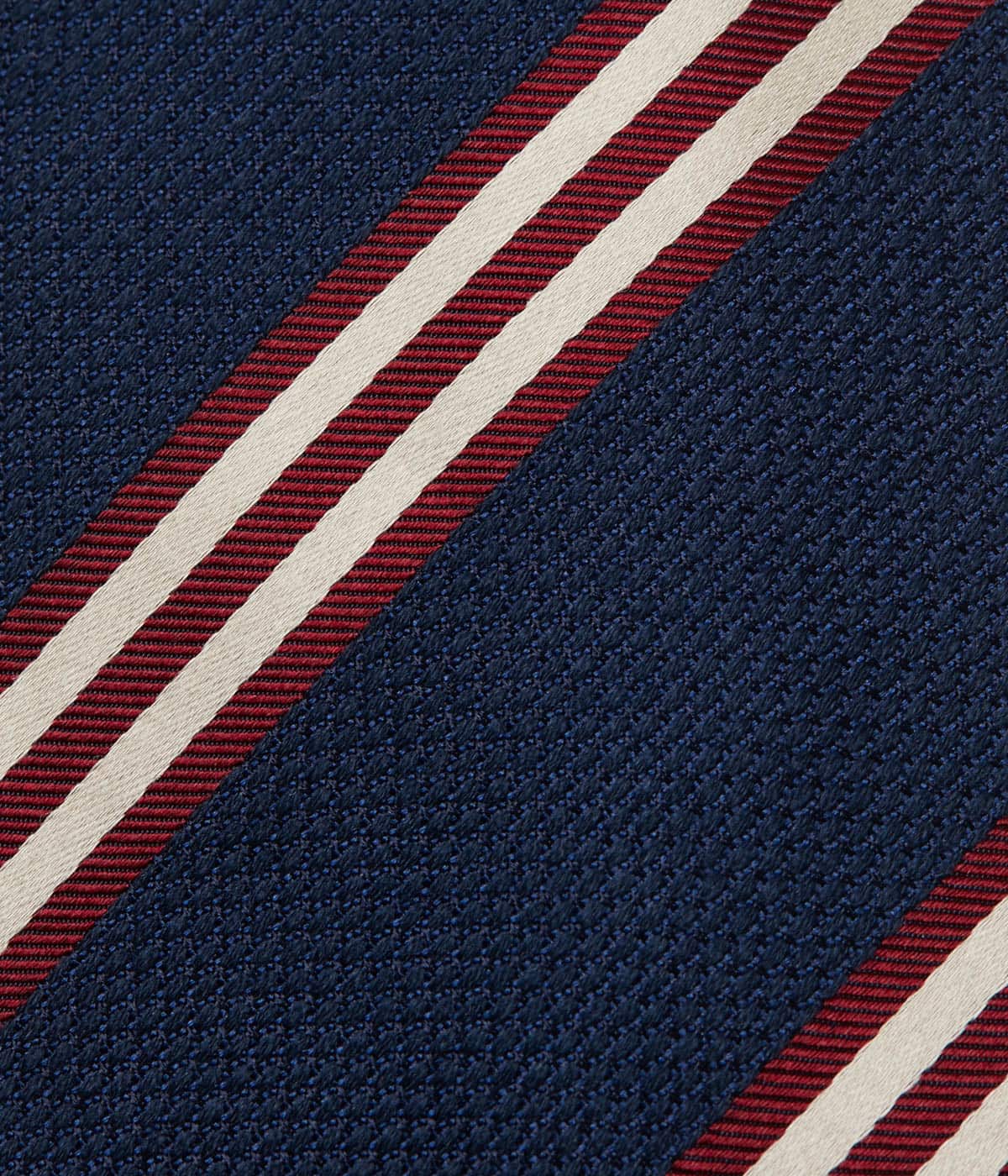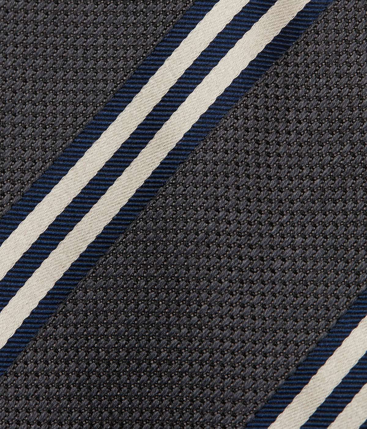 Vゾーンに取り入れやすいレジメンタルストライプ柄のネクタイ。ベースカラーにホワイトと差し色のラインで構成されたデザインで、汎用性の高い1本です。ドレッシー過ぎないマットな質感のシルク×ウール素材が秋冬のトラッドスタイルにぴったりです。