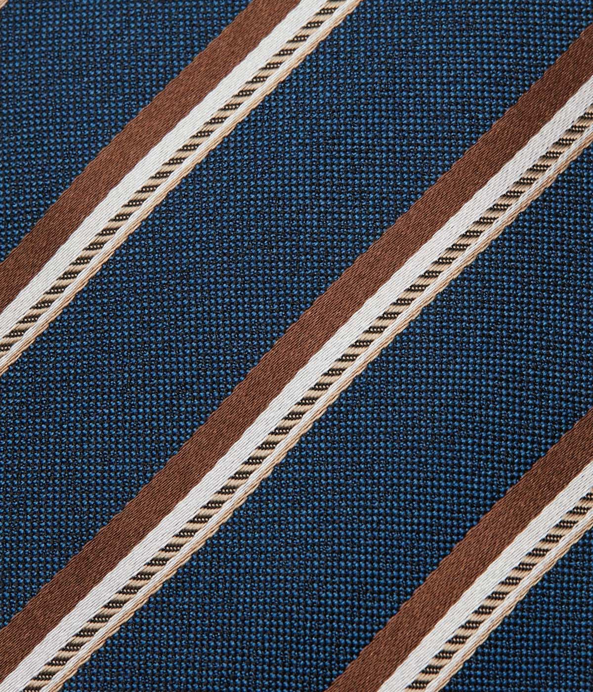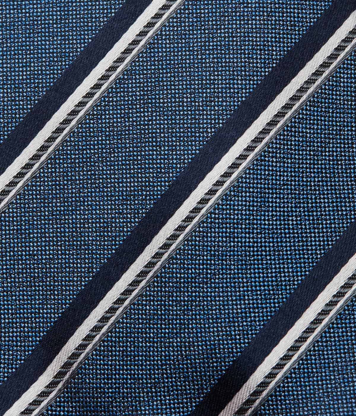 霜降り調のメランジが色味に奥行きを感じさせるストライプタイ。細いピッチのストライプが上品な雰囲気を演出します。