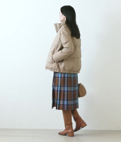 両サイドのベルトを留めて着用する、オーセンティックなデザイン。カジュアルな印象になりすぎない膝下丈のため、品よくスタイリングがまとまります。また、後ろウエストはゴム仕様で、快適な穿き心地が魅力。キルトピン付き。裏地なし。ポケットなし。
