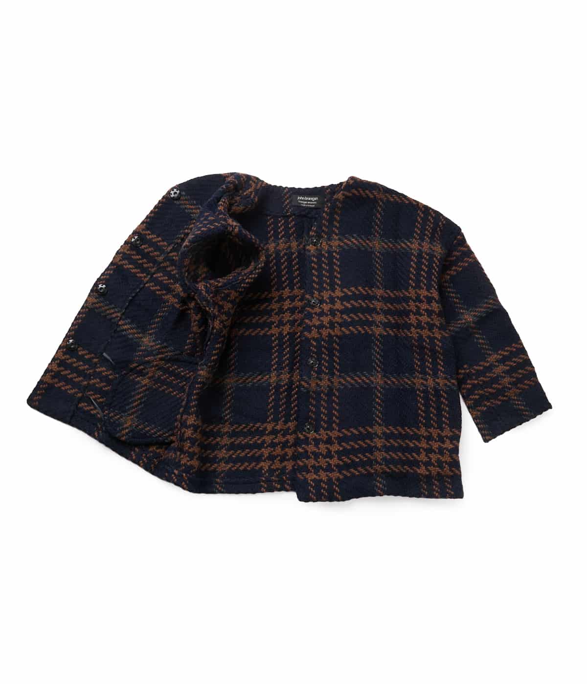 アイルランドのファクトリーブランド 「John Branigan(ジョン・ブラニガン)」 からセレクトした、羽織るだけで着映えるノーカラーのツィードアウター。ざっくりとした織り地が程よくカジュアルで、コート未満のハザマ時期にぴったりのアイテム。クラシックなチェック柄が上品な印象を与え、デイリーからお出かけまで幅広く活躍します。キャメルの配色が大人きれいを叶える、ネイビー1色展開。