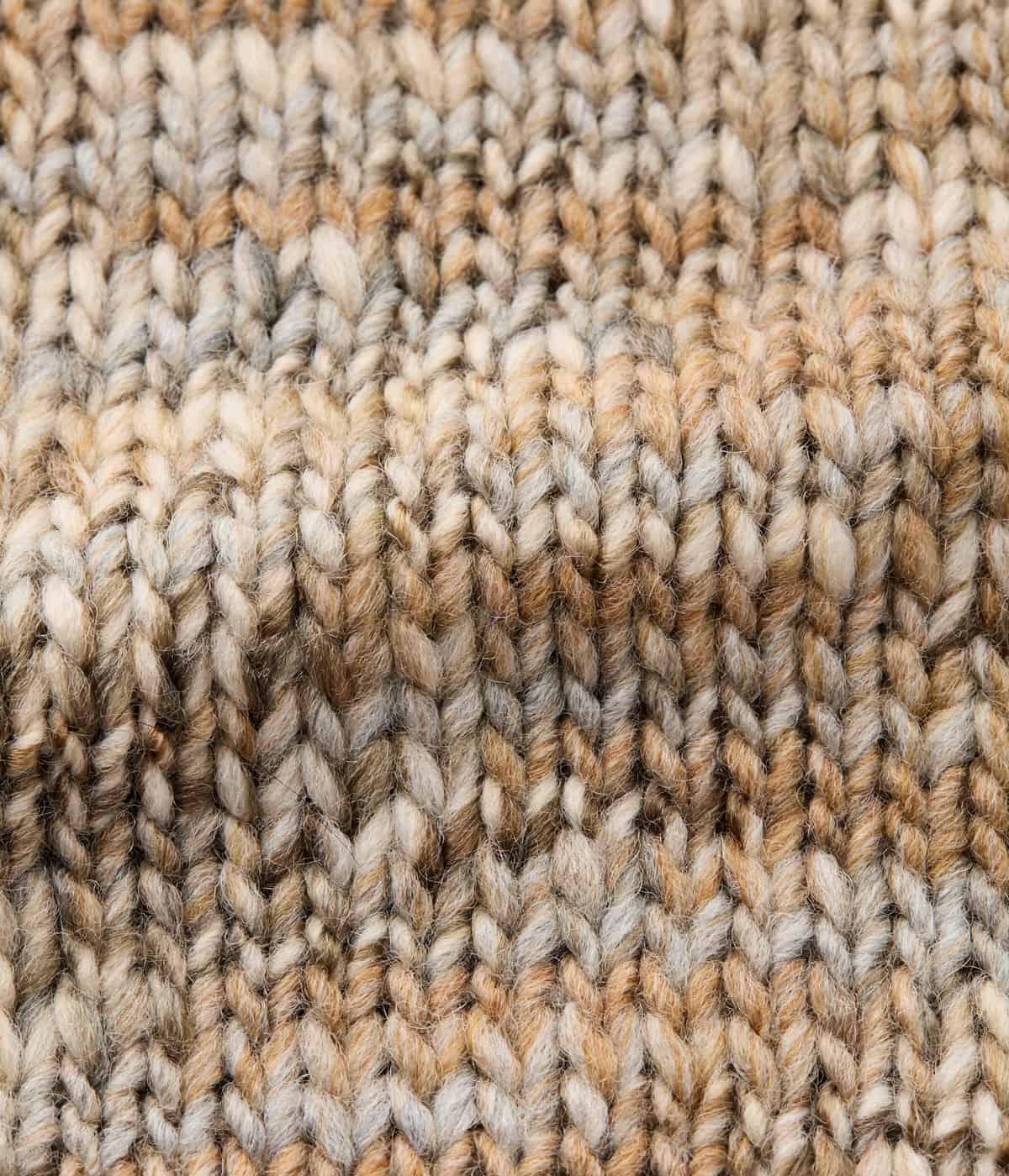 ふんわりとしたやわらかさと軽やかな着心地を両立した、アクリルとウールのブレンド素材。ウールのあたたかさを保ちながら、アクリル混ならではの軽さを備えています。