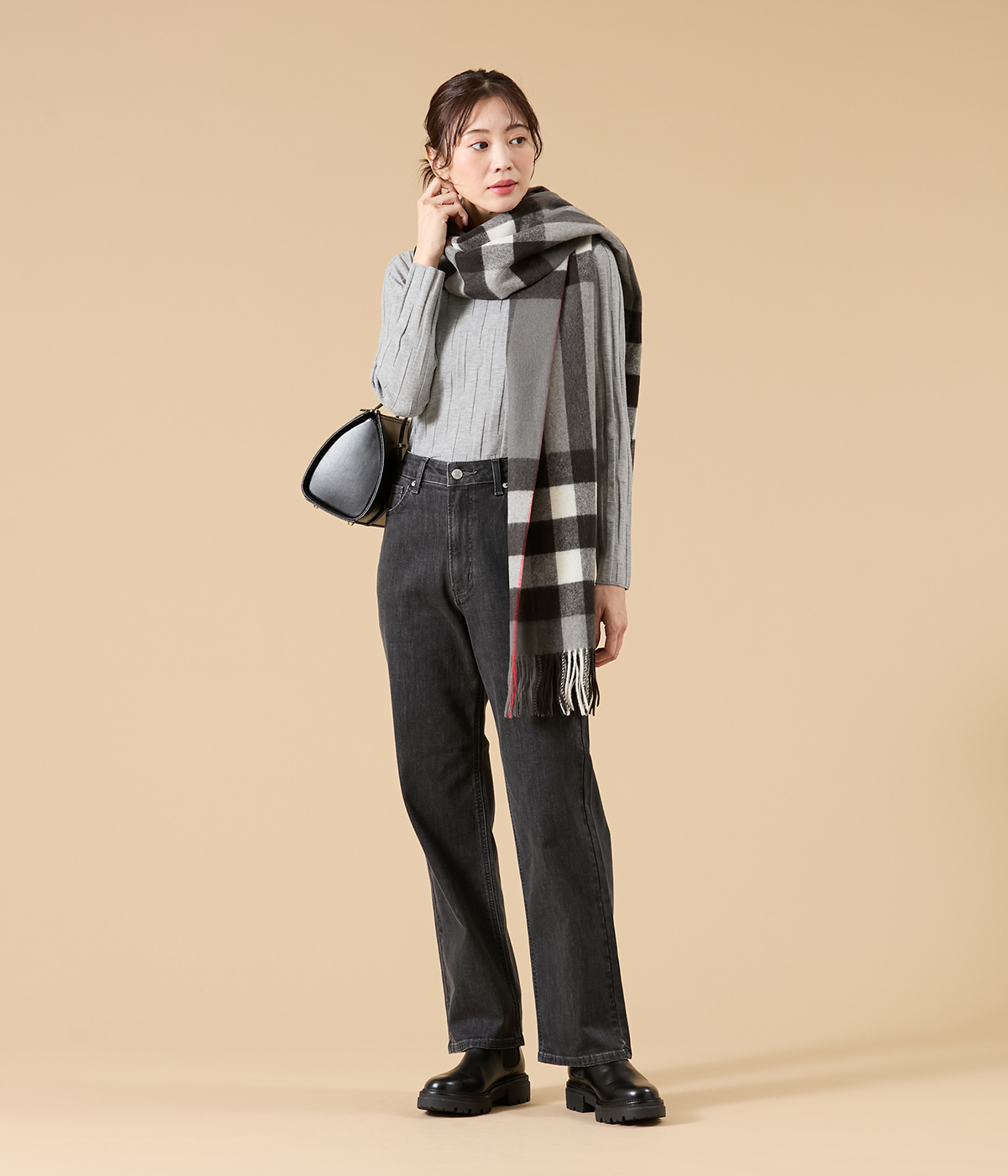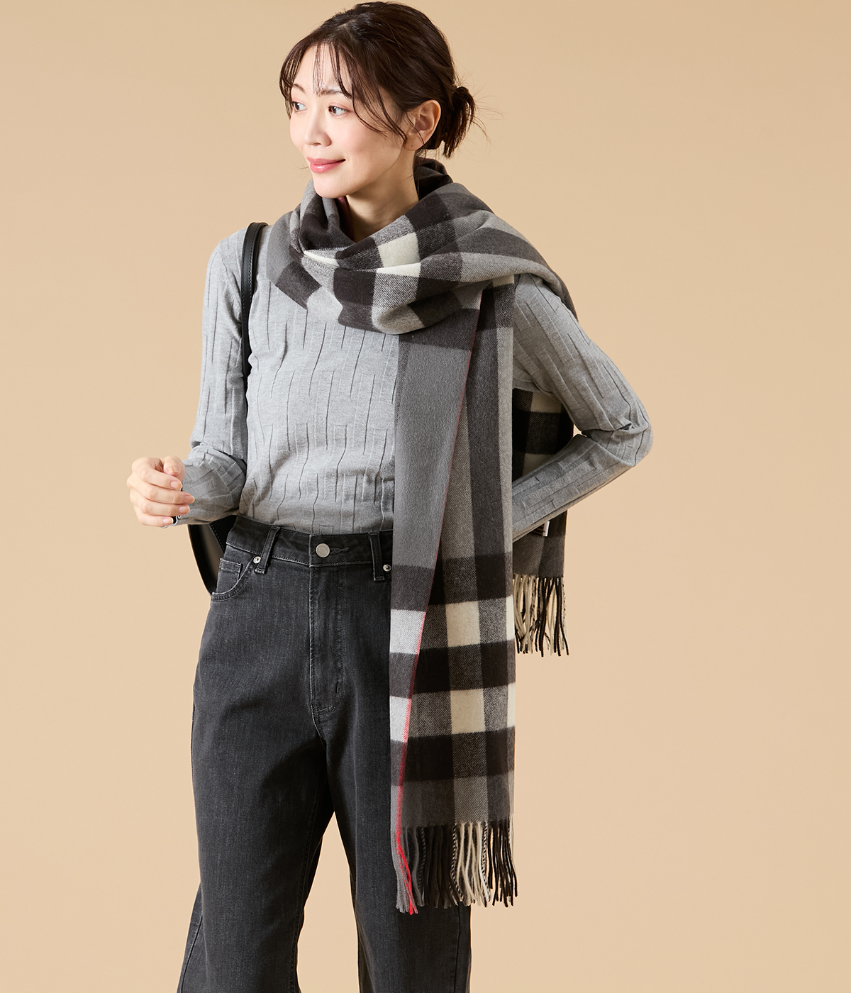 一点投入で華やぐ、チェック柄ストール