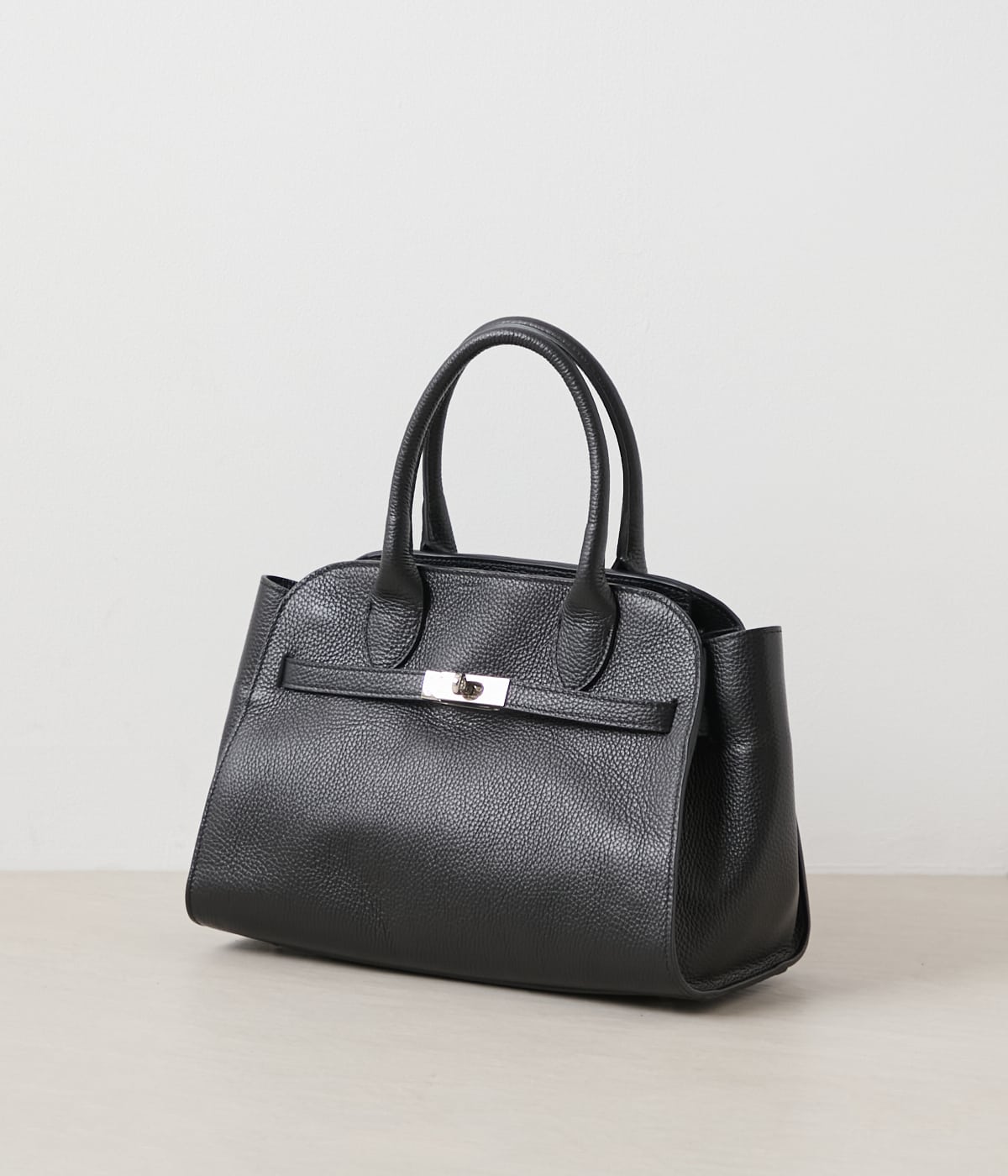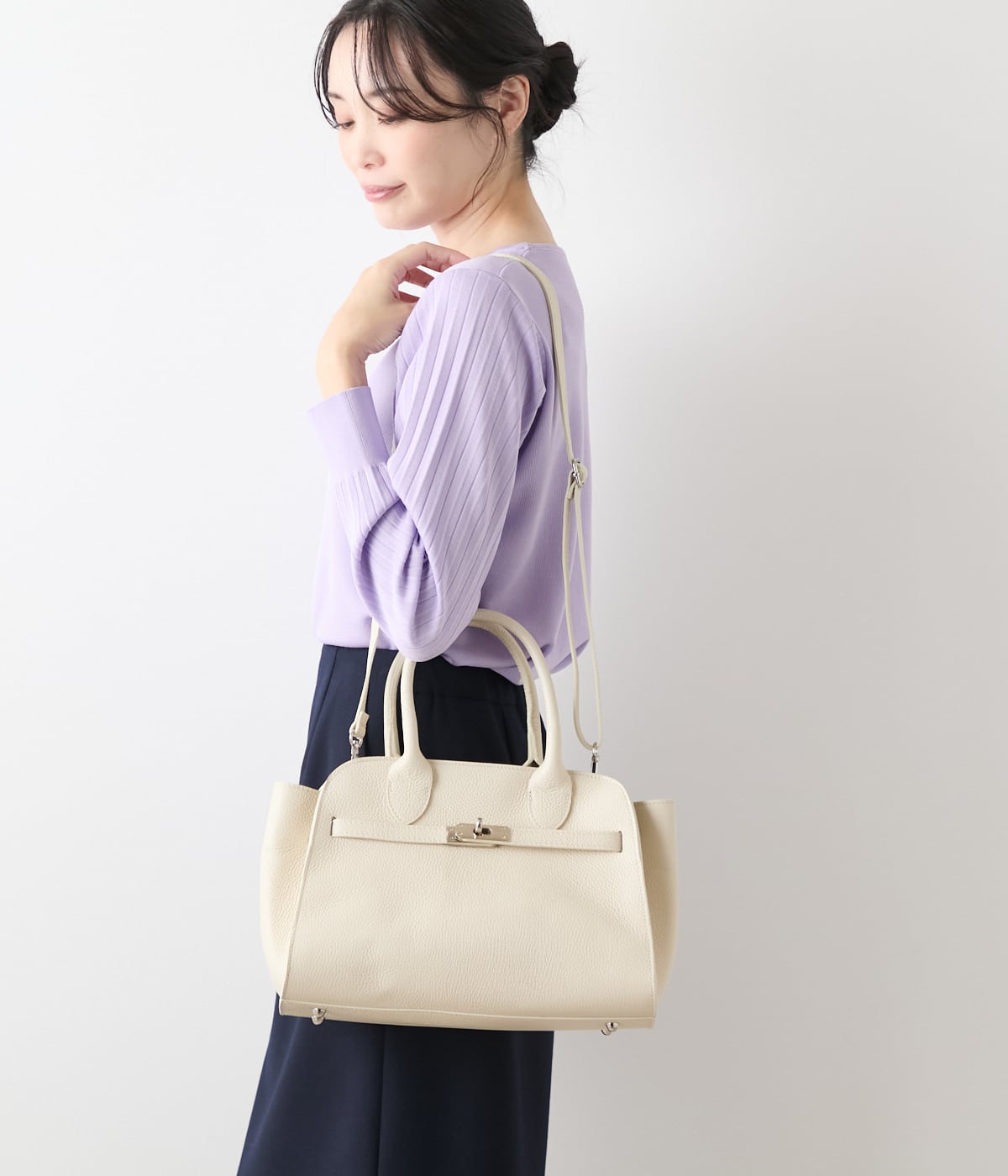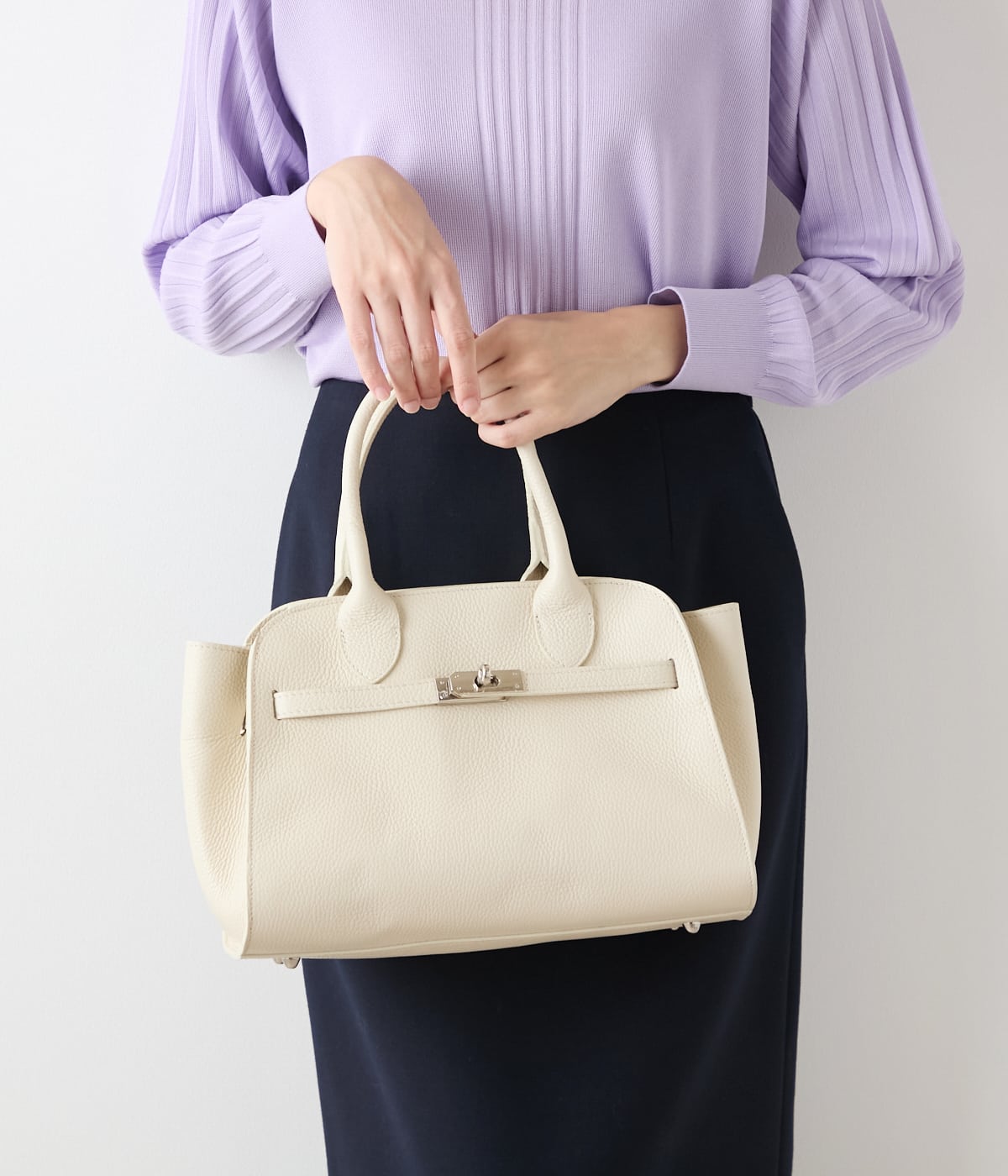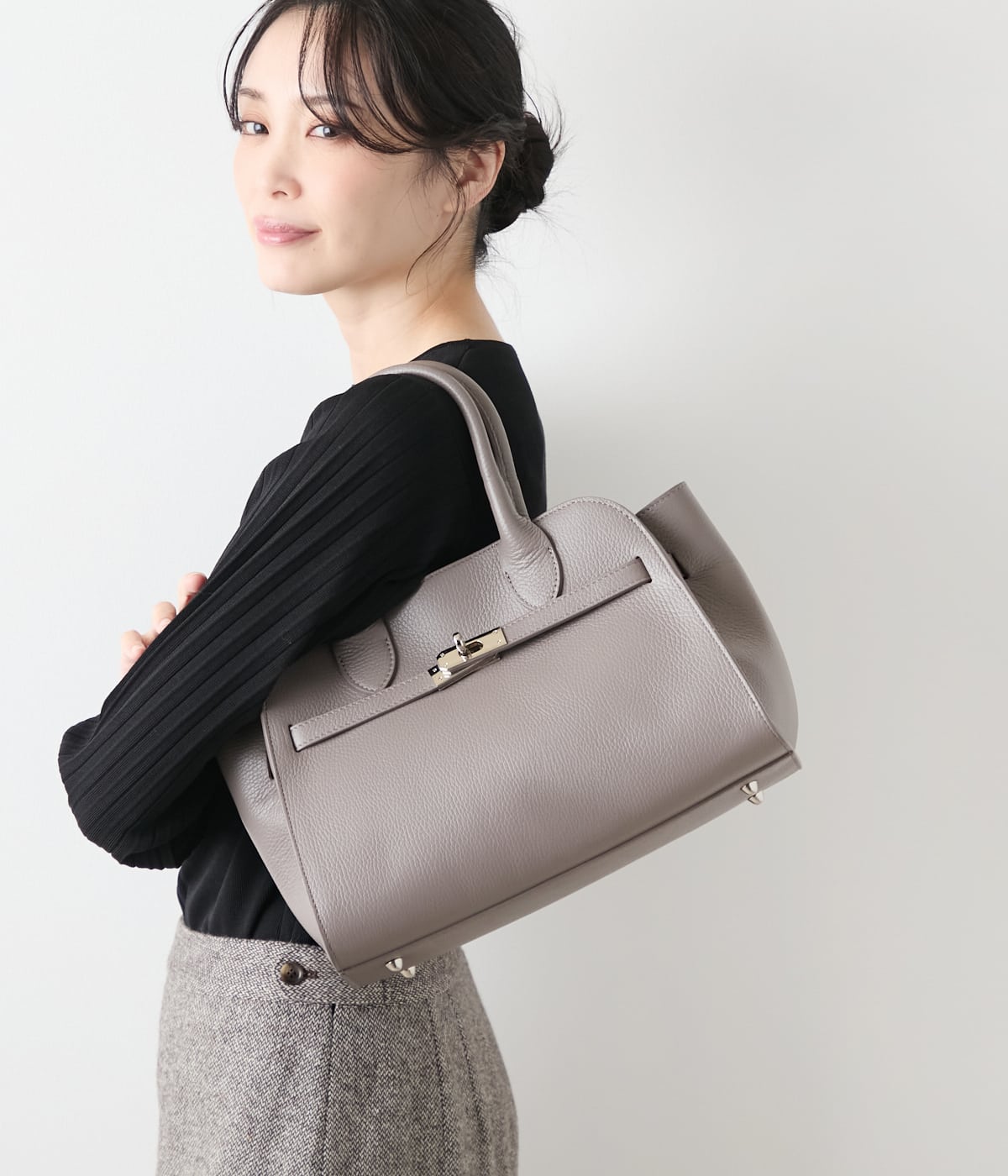 イタリアのファクトリーブランドAULENTTI(オーレンティ)よりセレクトした、金具が上品なハンドバッグ。付属のショルダーストラップを装着すれば、お仕事シーンにも休日のおでかけにも活躍する2WAY仕様。上品でありながら実用性も備えた、頼れるアイテムです。落ち着きとモード感を兼ね備えた、都会的なニュアンスのダークグレー、シーンを選ばず品格を与えてくれる定番ブラック、スタイリングをソフトで華やかに明るく仕上げるアイボリーの3色展開。
