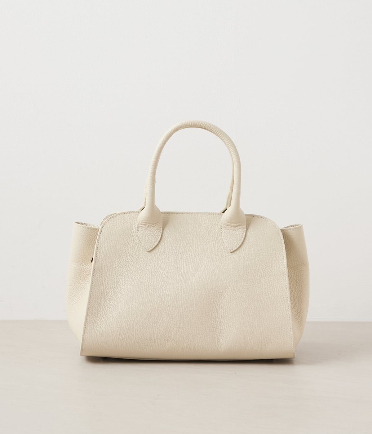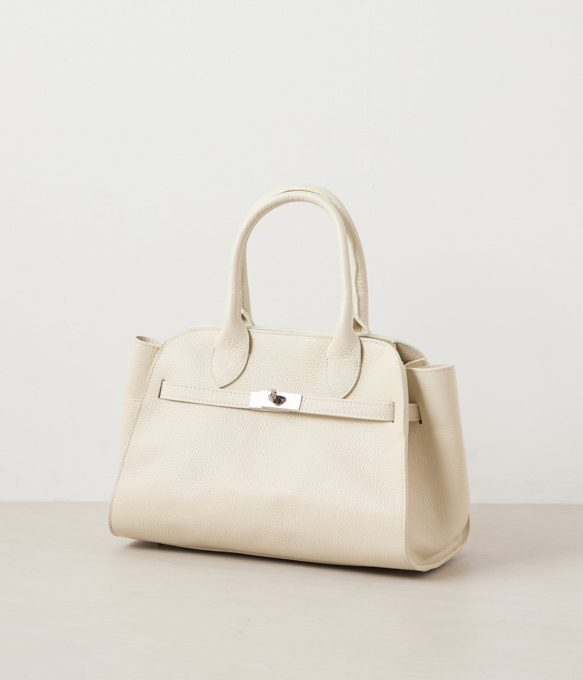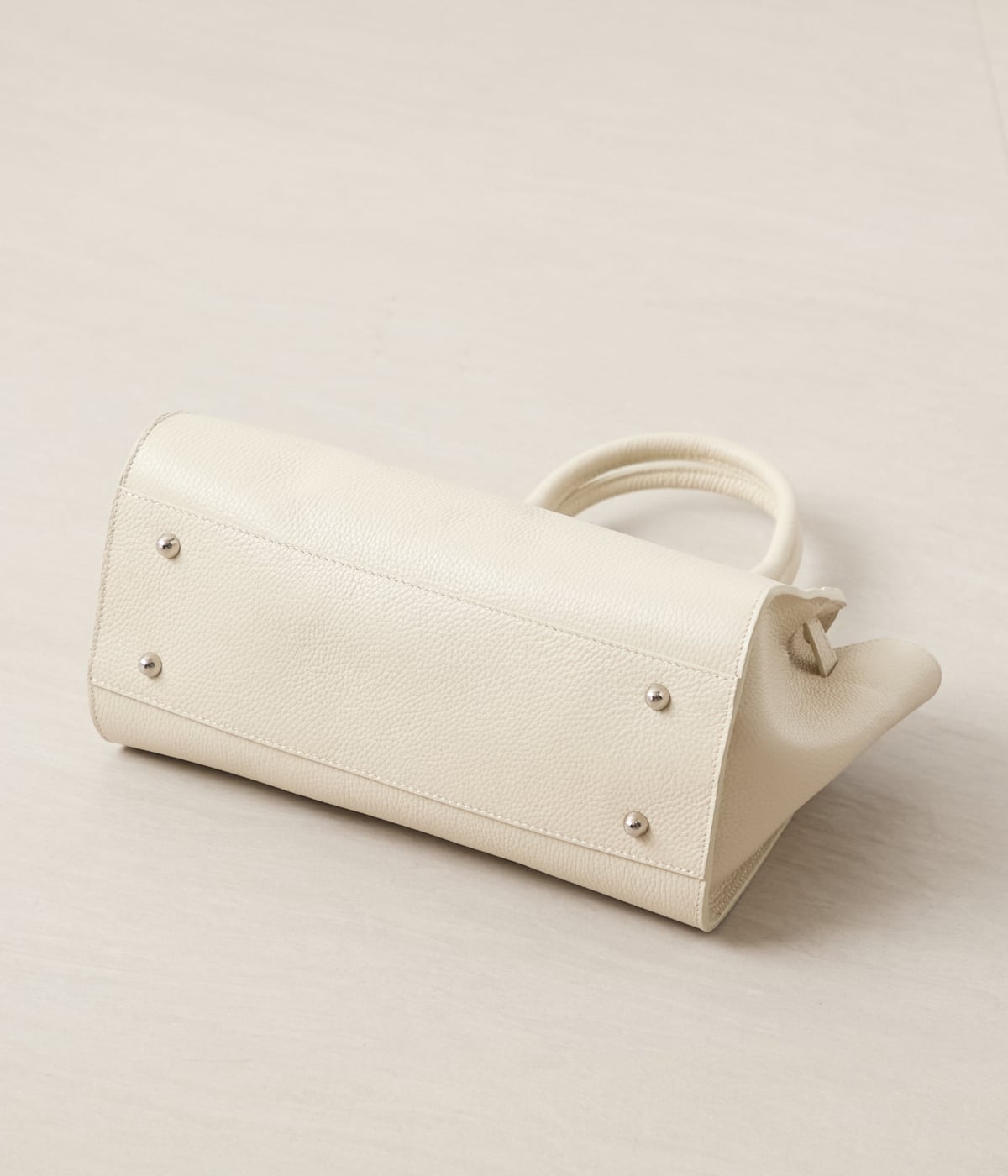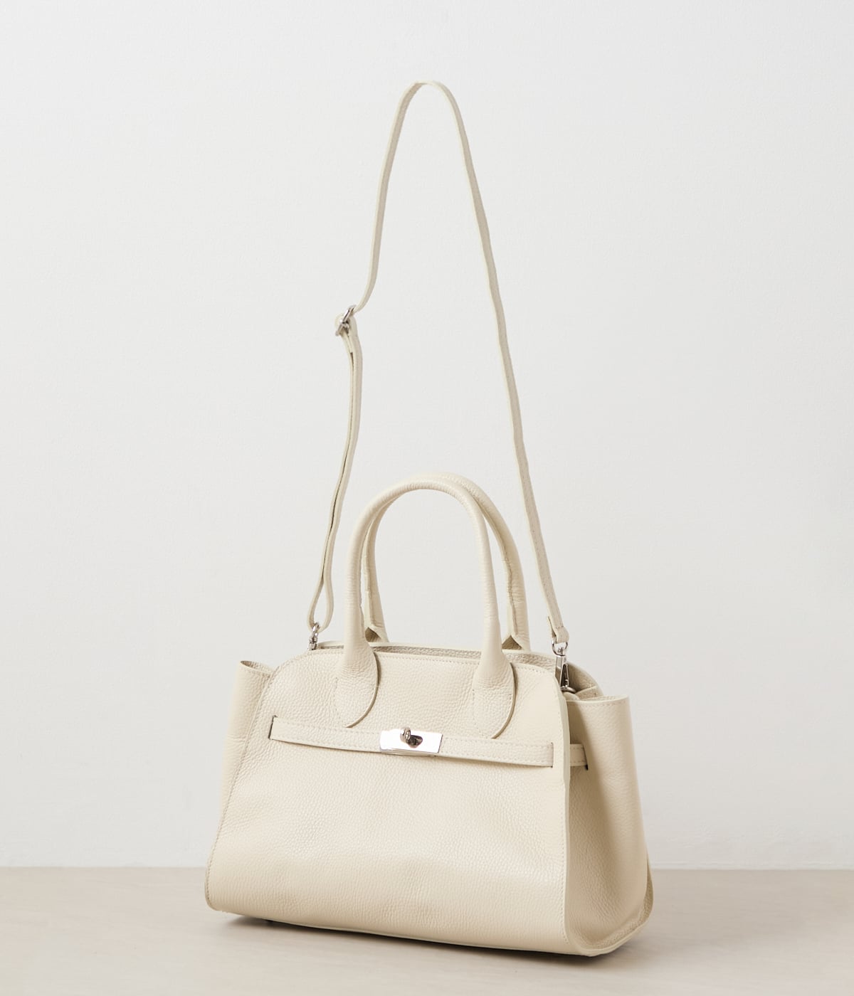 イタリアのファクトリーブランドAULENTTI(オーレンティ)よりセレクトした、金具が上品なハンドバッグ。付属のショルダーストラップを装着すれば、お仕事シーンにも休日のおでかけにも活躍する2WAY仕様。上品でありながら実用性も備えた、頼れるアイテムです。落ち着きとモード感を兼ね備えた、都会的なニュアンスのダークグレー、シーンを選ばず品格を与えてくれる定番ブラック、スタイリングをソフトで華やかに明るく仕上げるアイボリーの3色展開。