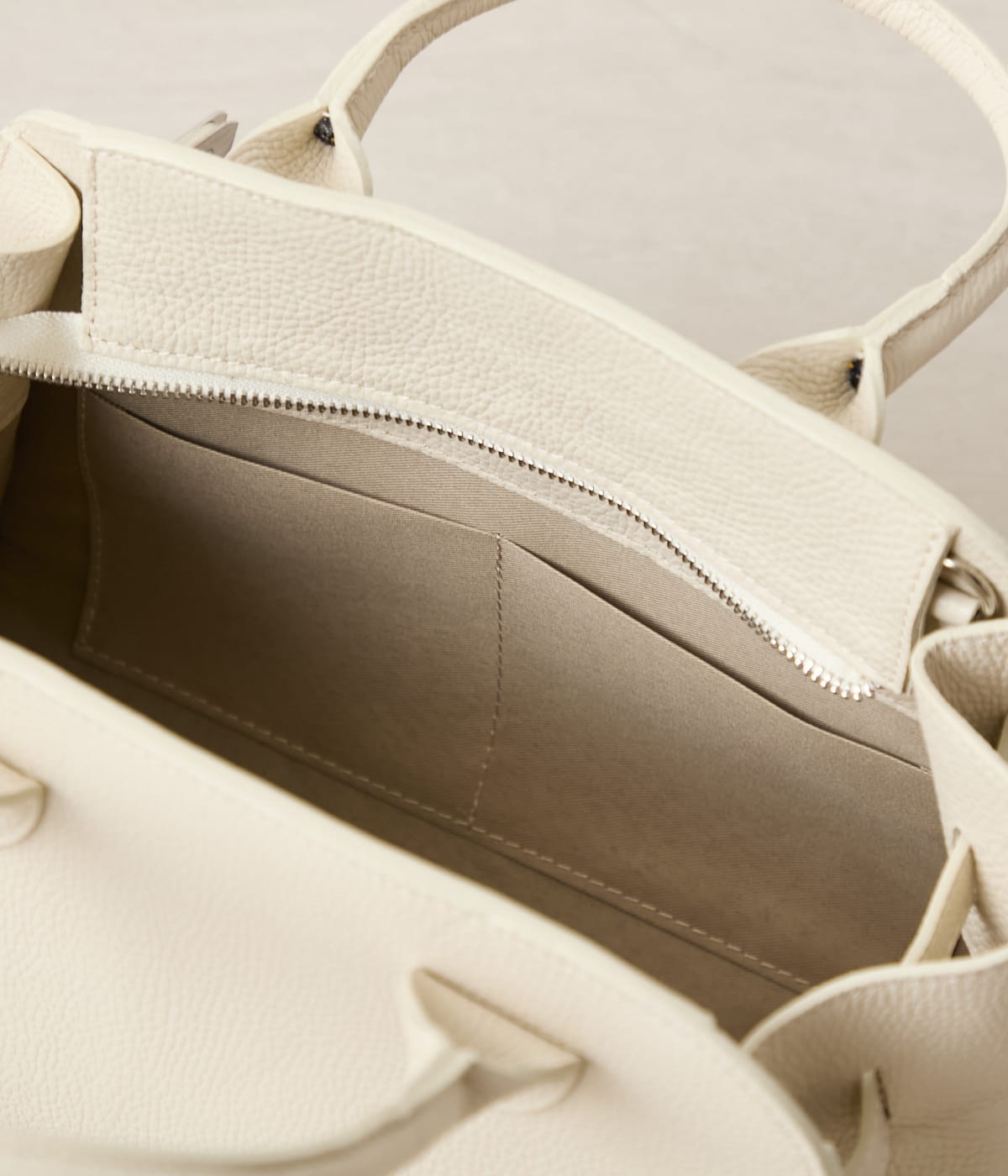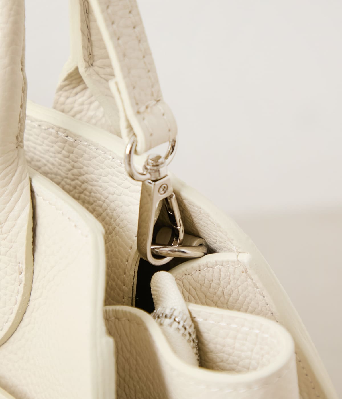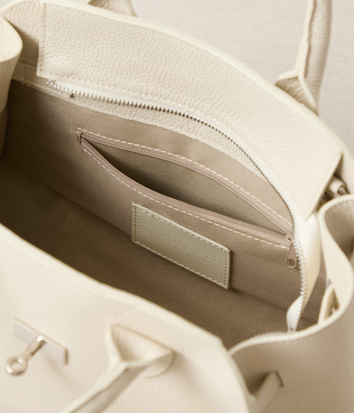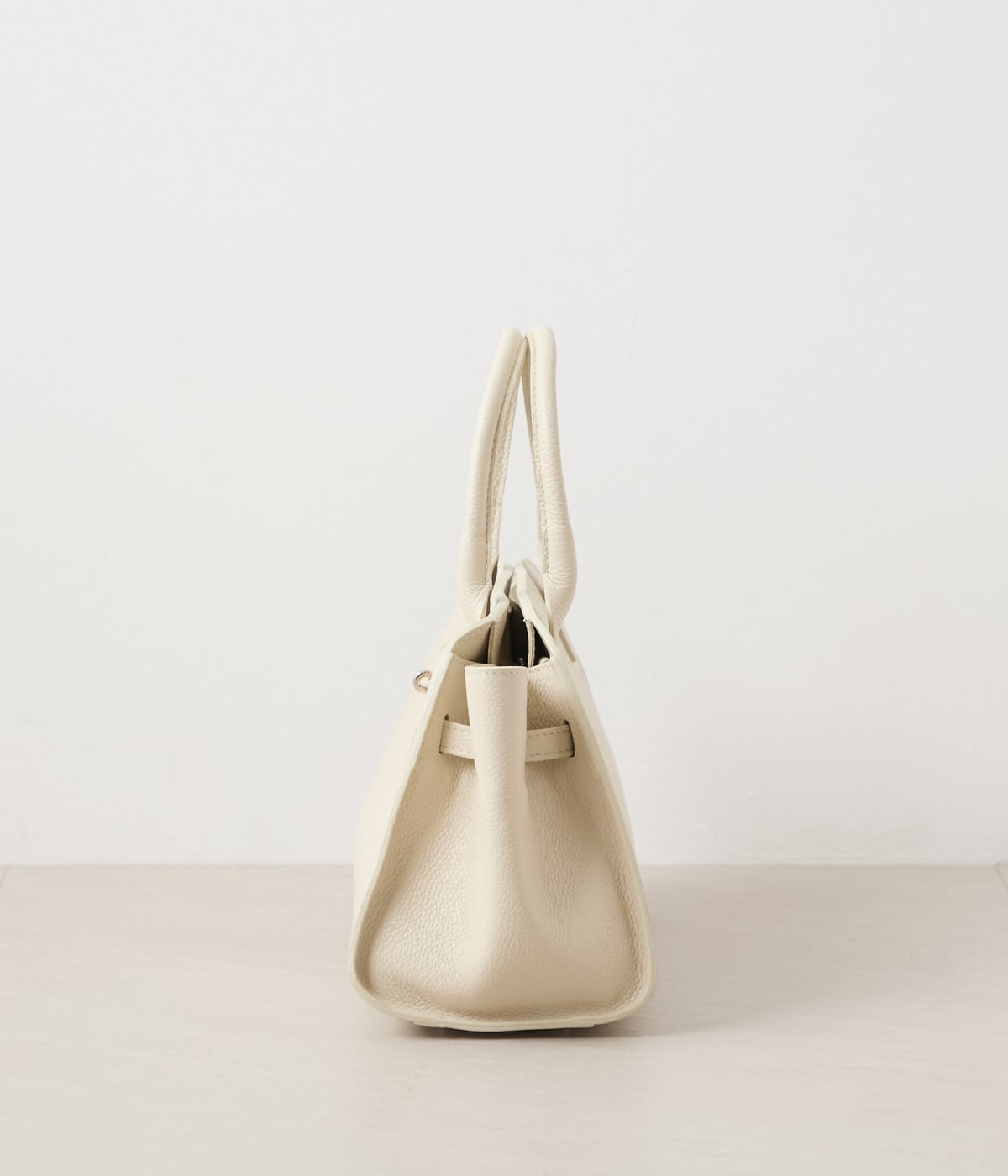 イタリアのファクトリーブランドAULENTTI(オーレンティ)よりセレクトした、金具が上品なハンドバッグ。付属のショルダーストラップを装着すれば、お仕事シーンにも休日のおでかけにも活躍する2WAY仕様。上品でありながら実用性も備えた、頼れるアイテムです。落ち着きとモード感を兼ね備えた、都会的なニュアンスのダークグレー、シーンを選ばず品格を与えてくれる定番ブラック、スタイリングをソフトで華やかに明るく仕上げるアイボリーの3色展開。