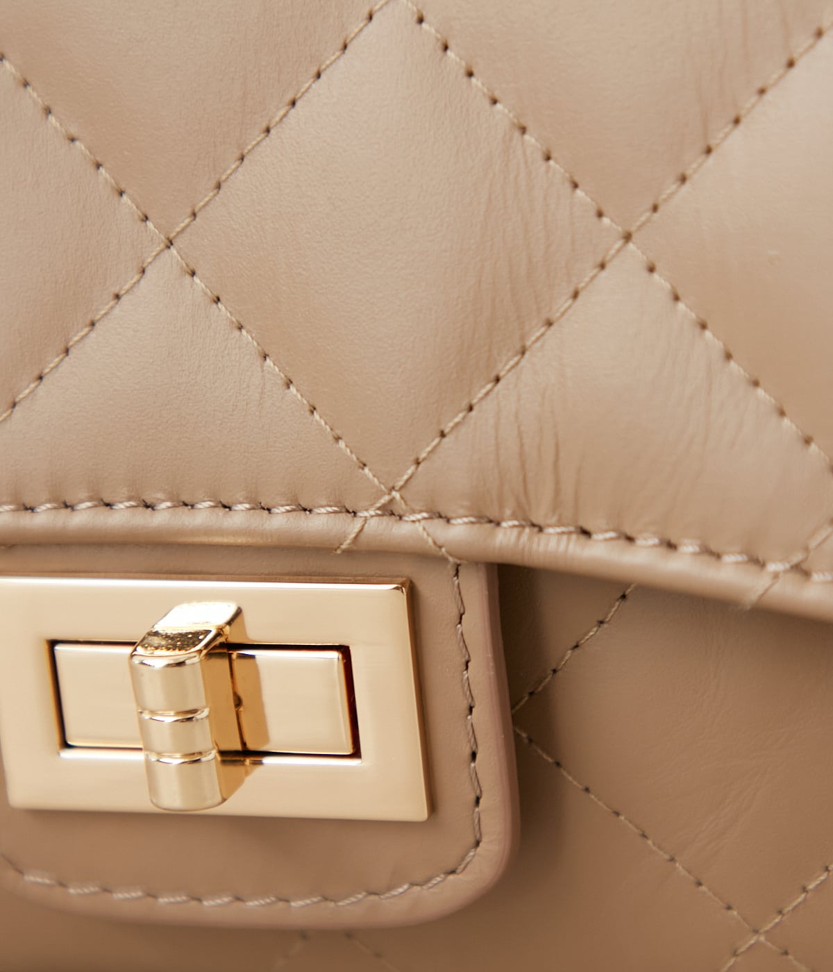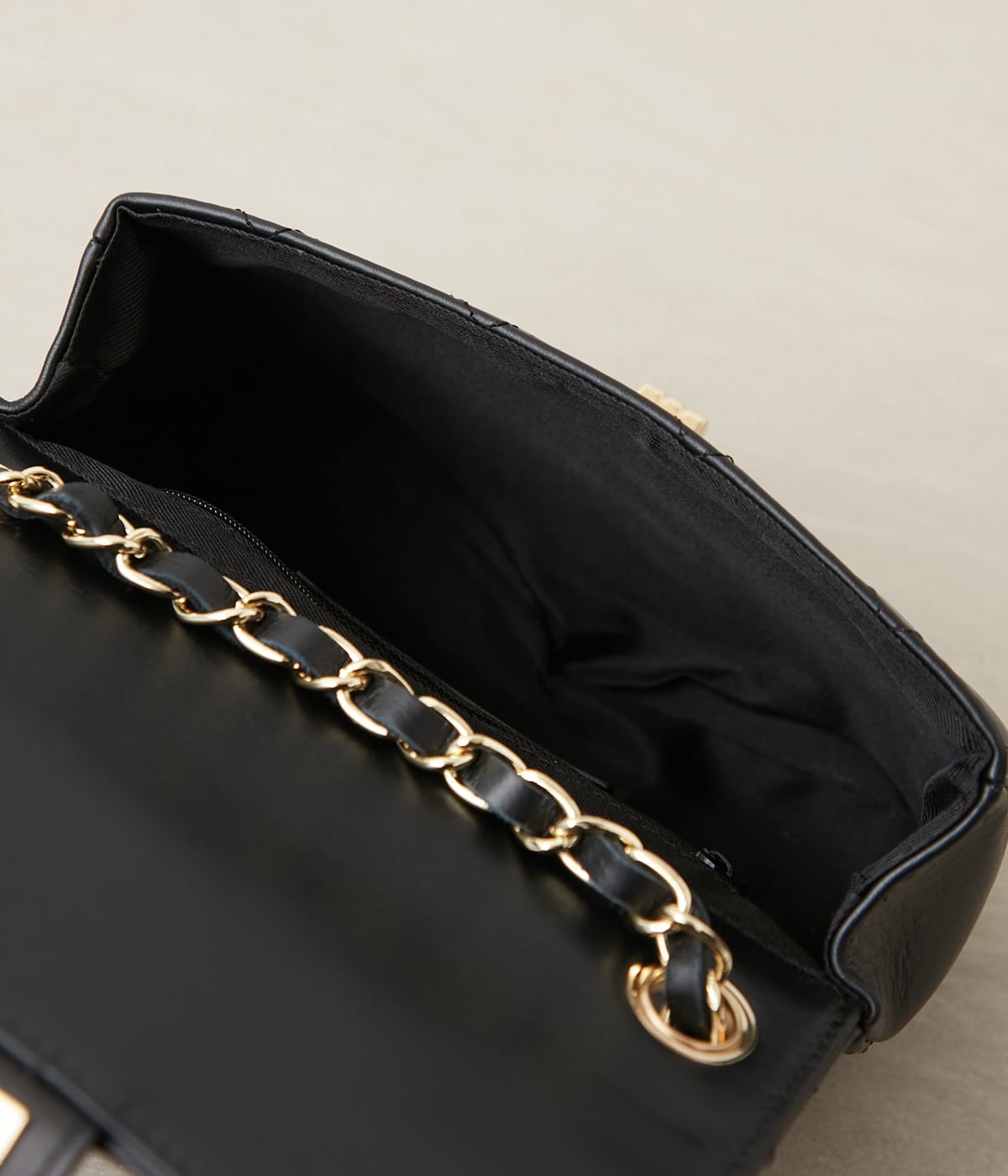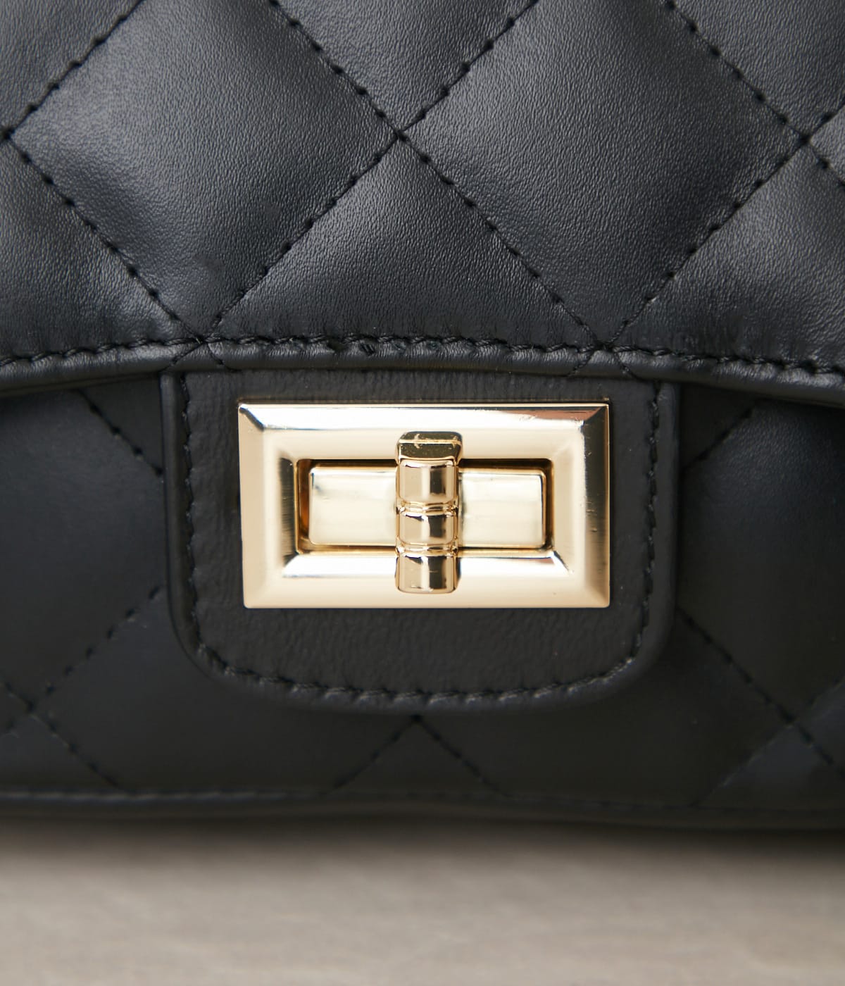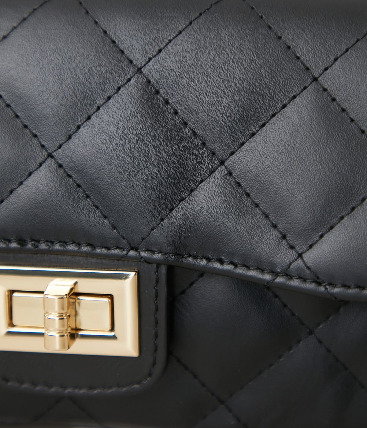 キルティング加工とゴールドのチェーンがお洒落な雰囲気を増してくれるアイテム。コンパクトなサイズ感ですがマチが広く、ミニウォレットやスマートフォン、ハンカチなど最低限の荷物が収納可能。肩掛けのほか、ハンドルを2重にして手持ちスタイルでも活躍します。内側にファスナーポケットあり。