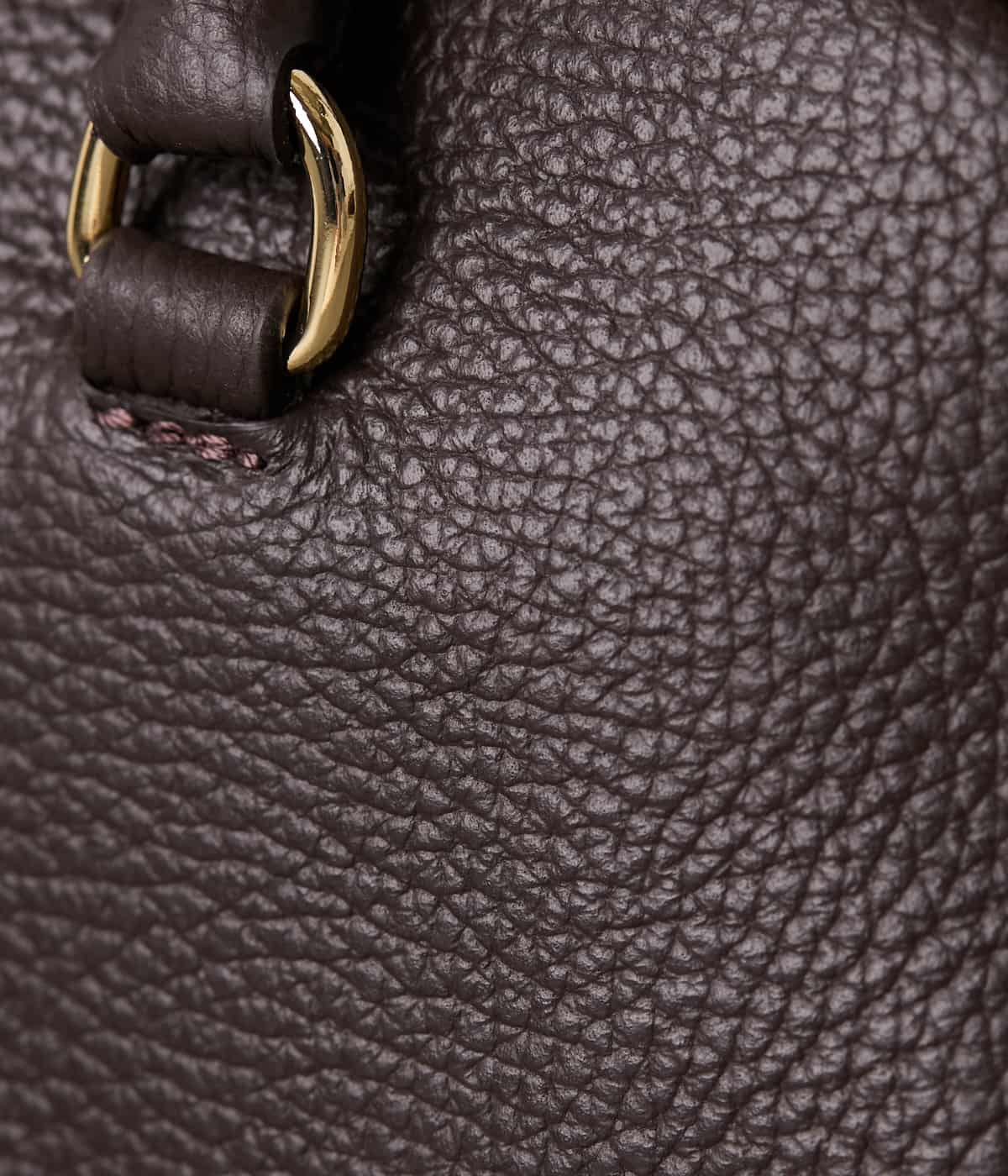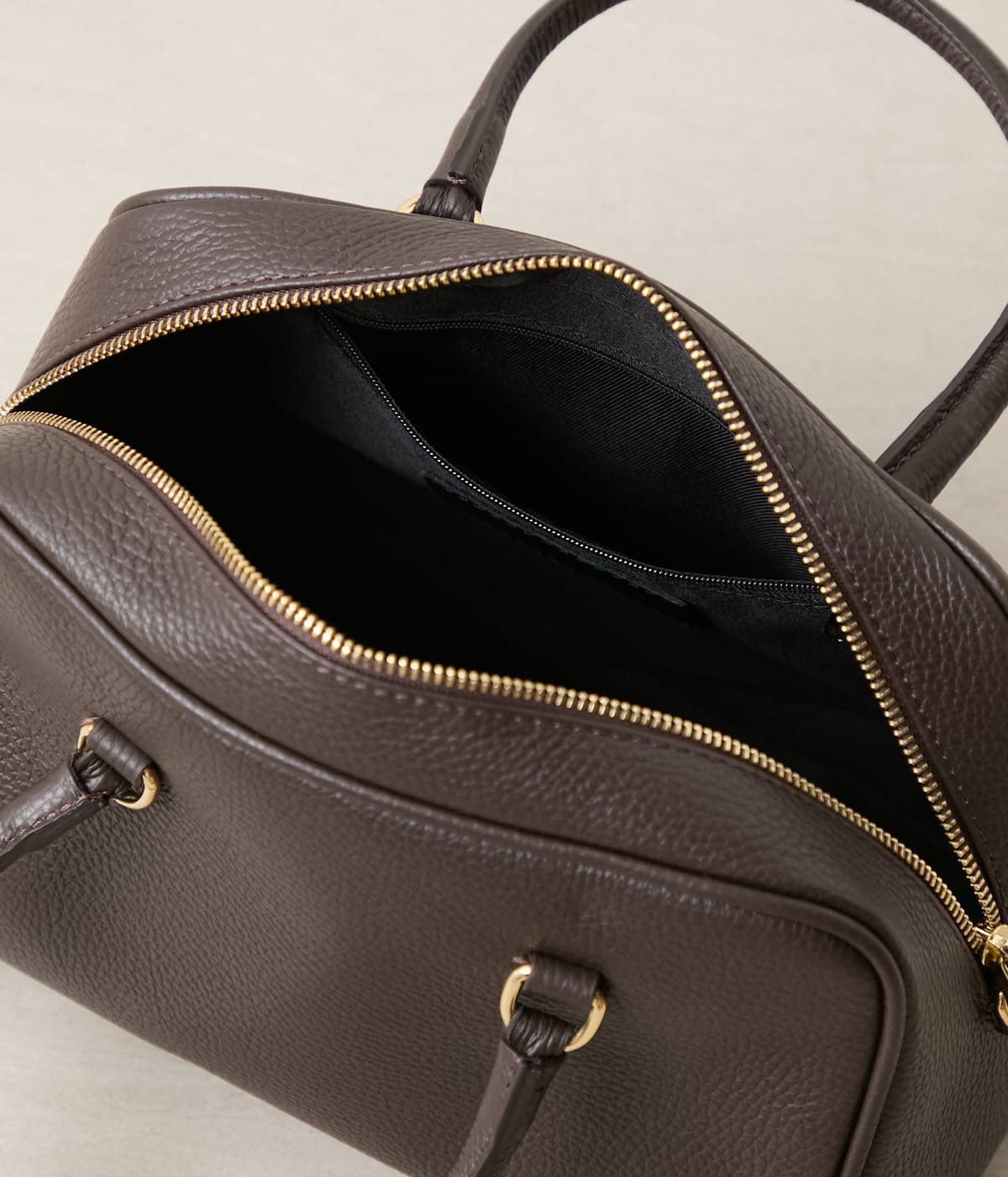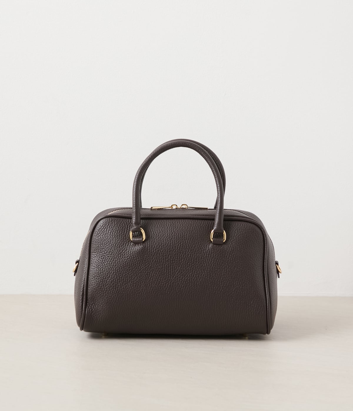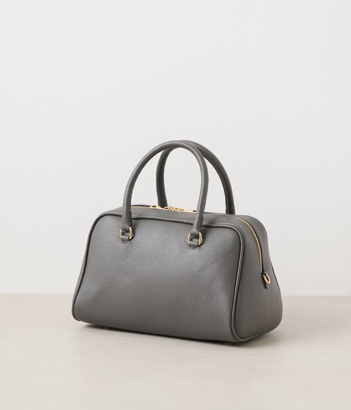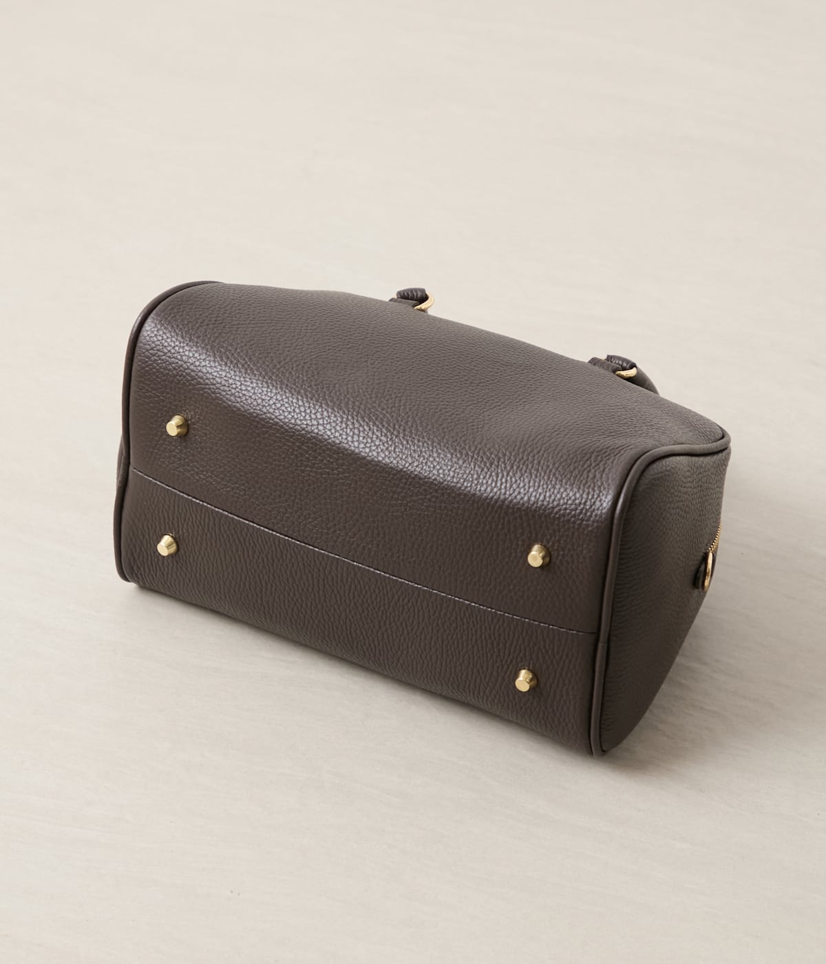 丸みを帯びたフォルムが愛らしく、シンプルながらも洗練された印象に導くボストンデザイン。小ぶりなサイズながらマチを広く取っており、長財布やポーチなど必要な荷物をしっかり収納できます。ショルダーストラップを付ければ肩掛け・斜め掛けも可能で、シーンに合わせてアレンジできる実用的なアイテム。内側にポケットあり。底鋲付き。