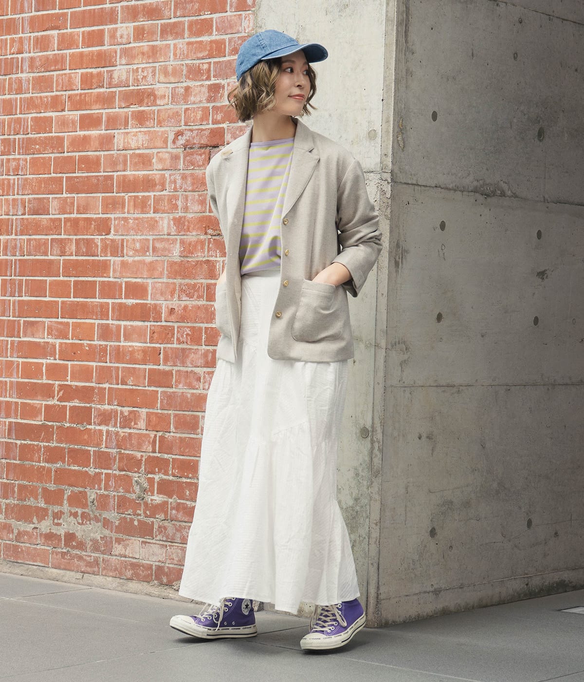 原材料や素材にこだわった商品を展開する「MIRY DCERA(ミリーデュセラ)」からセレクトした、ロング丈のフレアスカート。裾のラインが不規則な、イレギュラーヘムがドラマティックな印象です。パッチワーク切り替えで、ランダムにストライプが見えてくるデザイン。動くたびに揺れるボリュームのあるフレアシルエットが華やかに見せてくれます。同素材のブラウス(品番:37685002)とのセットアップでも着用いただけます。ポケットなし。裏地あり。