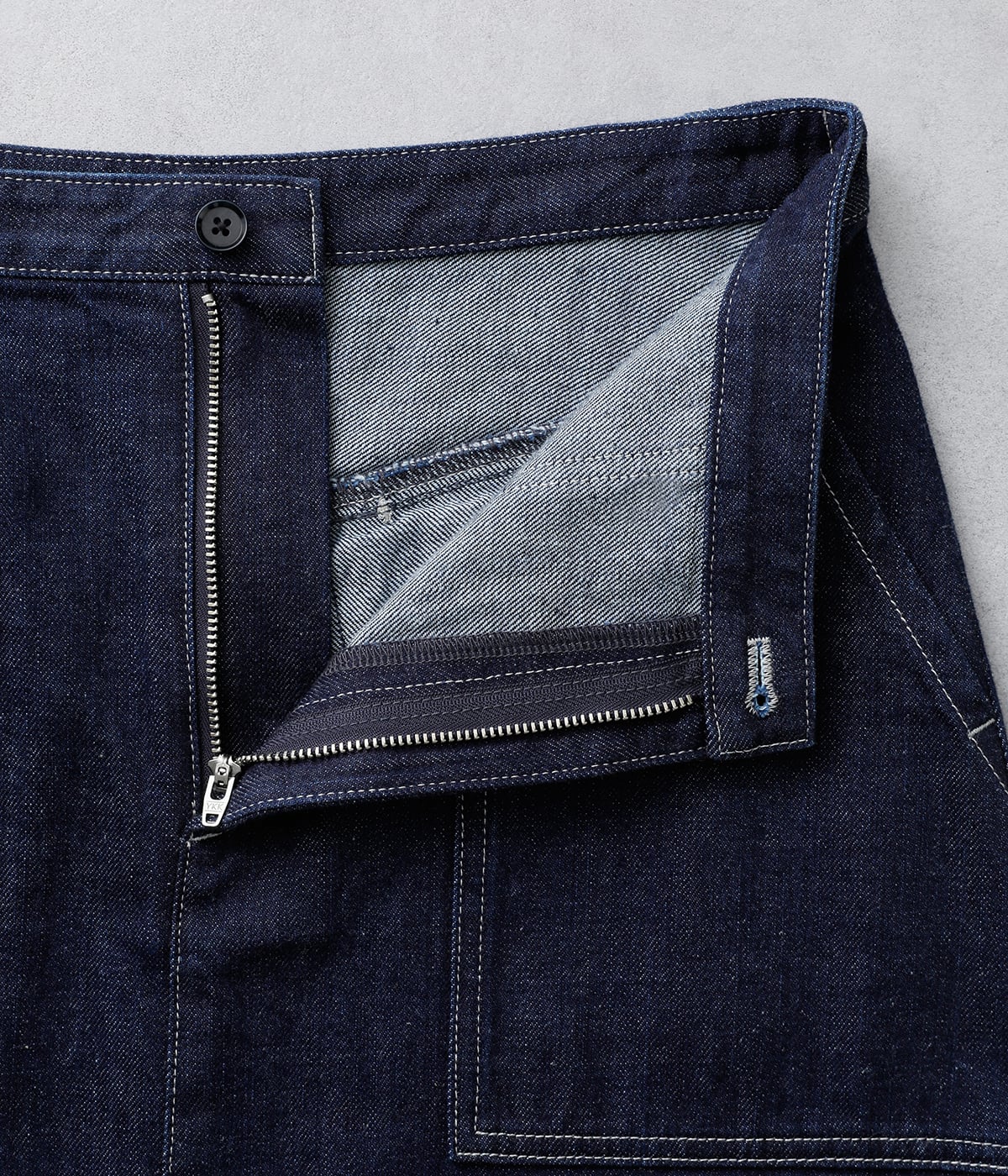 タテ・ヨコ異なる番手の糸を使用した、12オンスのオーガニックコットン100%のデニム素材。染め、織、整理加工をデニムの産地である岡山県備中地方で生産しております。ピュアインディゴのロープ染色を施した、強めのムラ形状が特徴です。
