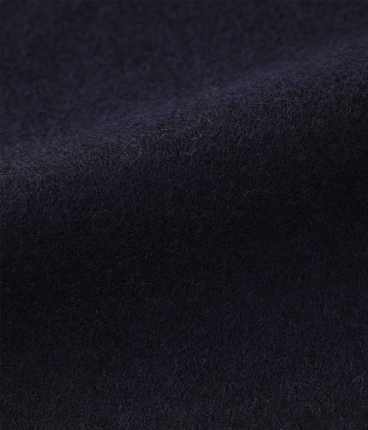 ナチュラルな粗野感のある糸をミックスして仕上げたハイカウントメルトン。織物の産地尾州で一貫生産された素材です。1/10の太番手糸をタテヨコに使用し、滑らかな表面感に仕上げています。
