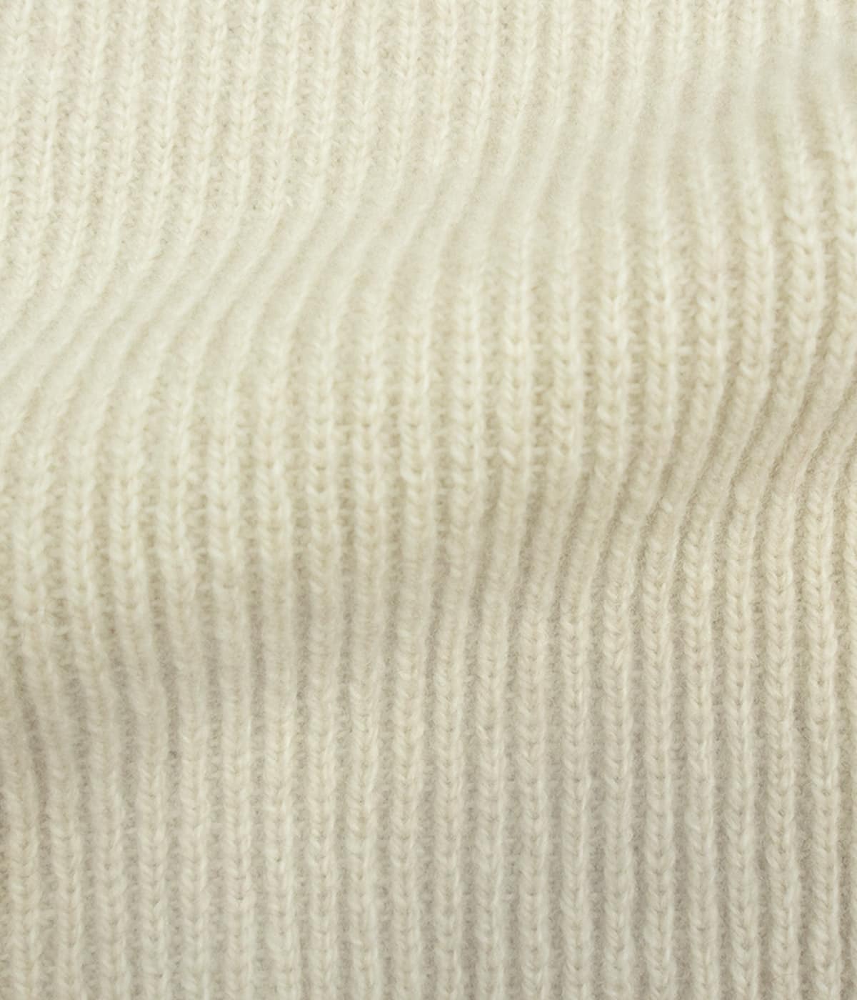 イタリアのLANECARDATE(ラネカルダーテ)社の糸を使用。カシミヤを10%ブレンドしたウール混の上質な素材です。16番手の糸を2本撚り合わせて生まれるメランジは、上品な表情を持ちながら、ふんわり柔らかなタッチで優しい着心地に。
