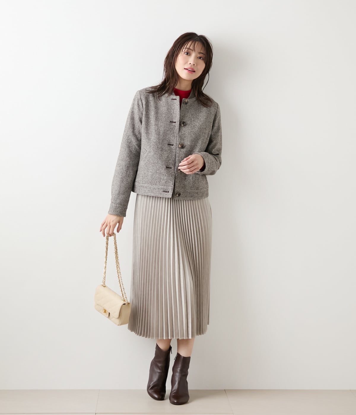 ブロークンヘリンボーンツィード ブルゾン ブラウン