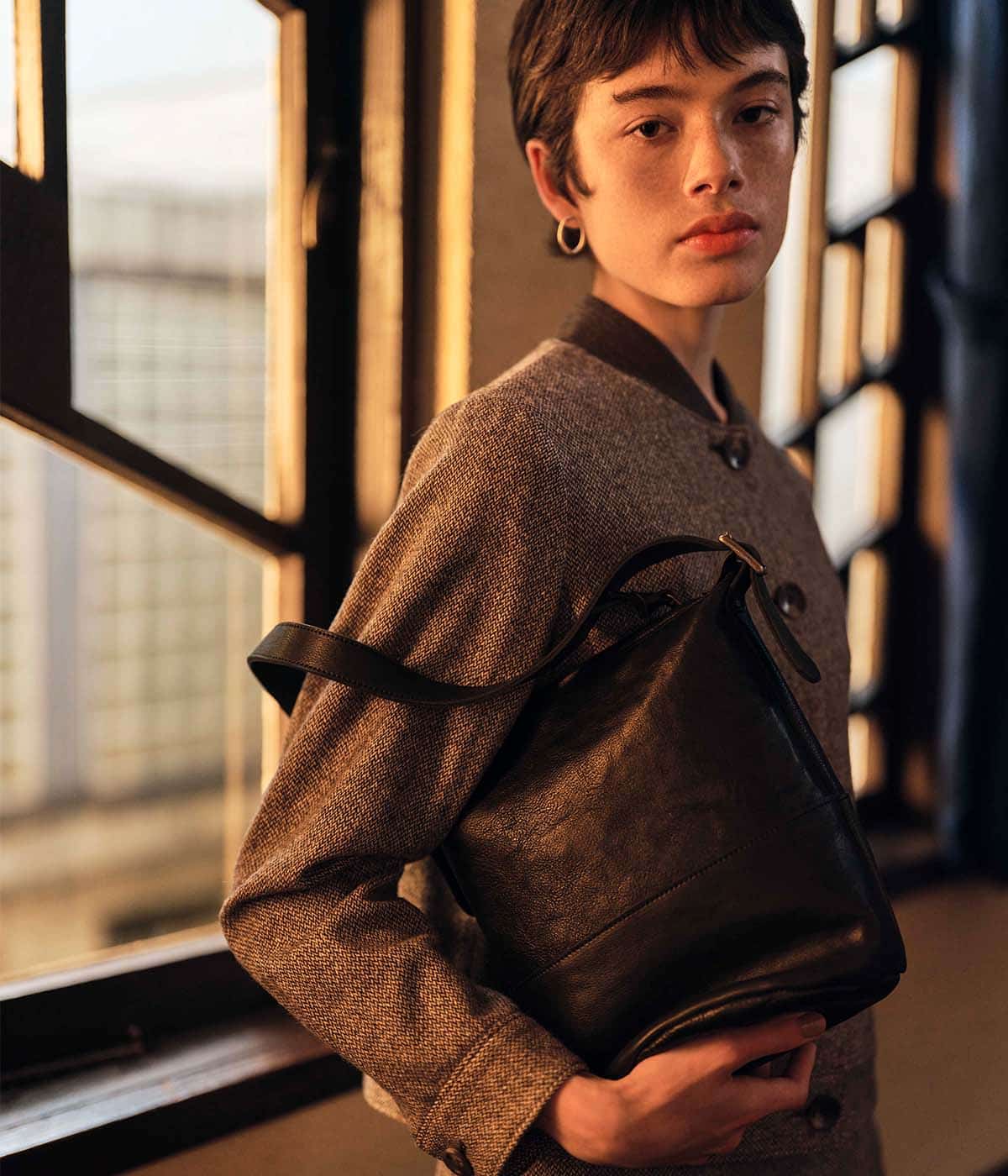 尾州産地で織り上げたオリジナルの変形ヘリンボーンツイードを使用。さりげないカラーネップを散りばめ、上品さの中に表情をプラスしました。肉感は厚すぎず薄すぎないため、軽やかでありながら安心感のある着心地。ナチュラルなストレッチが効いているのもポイント。