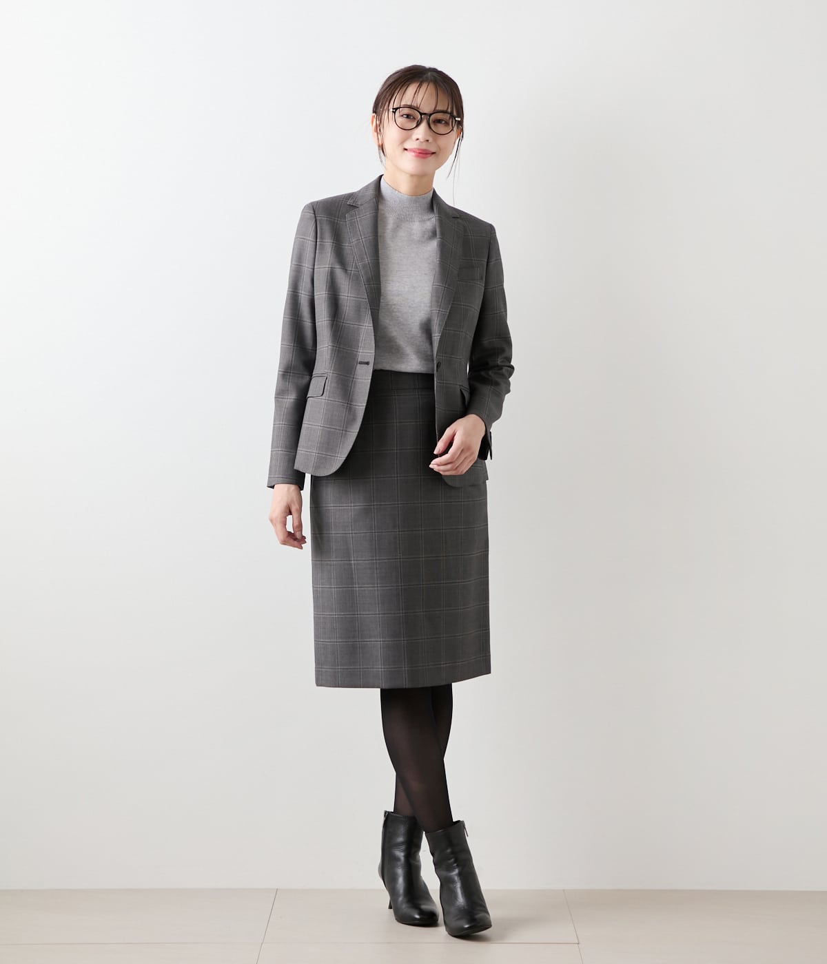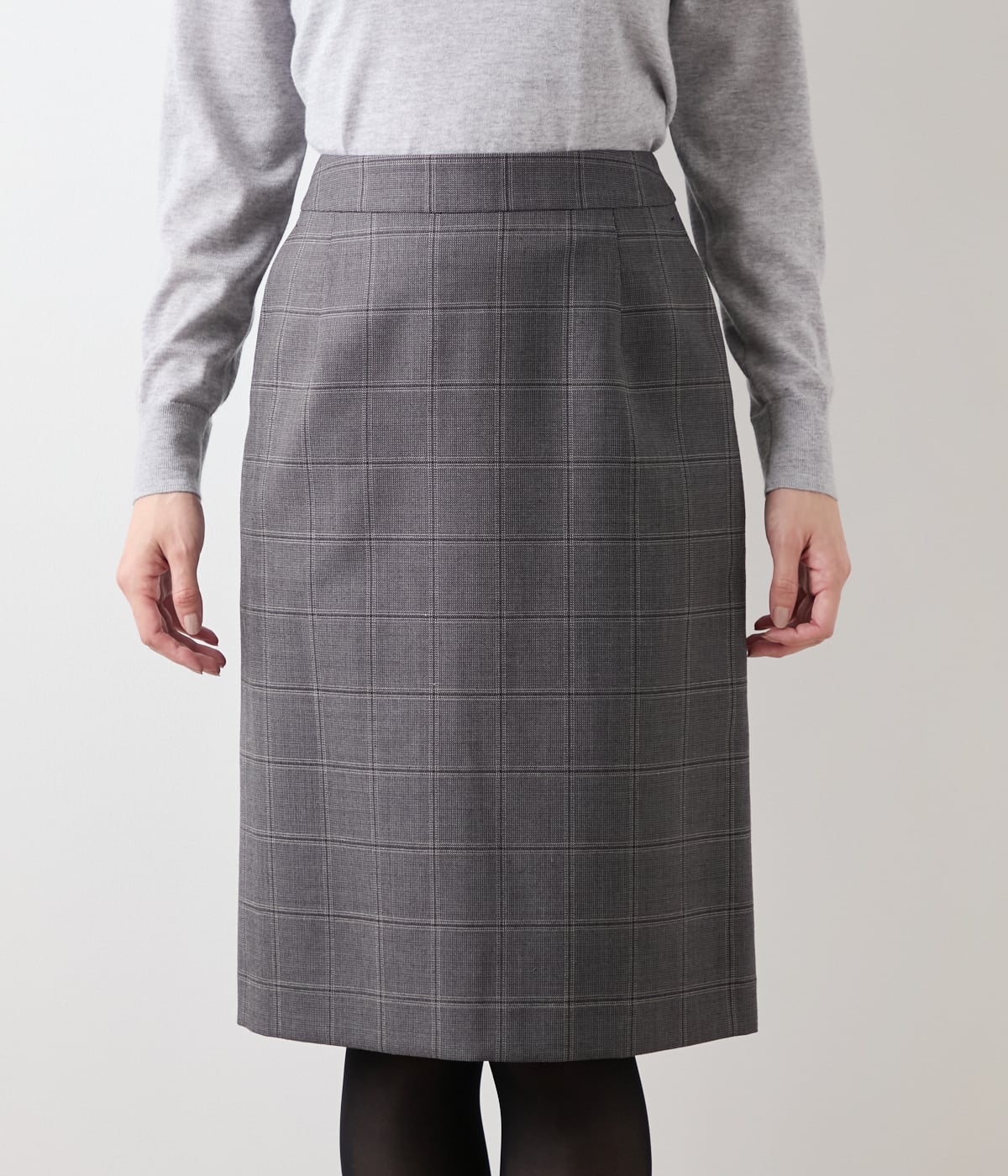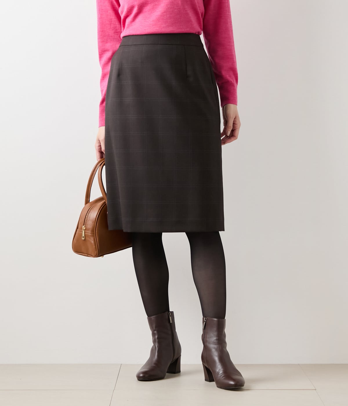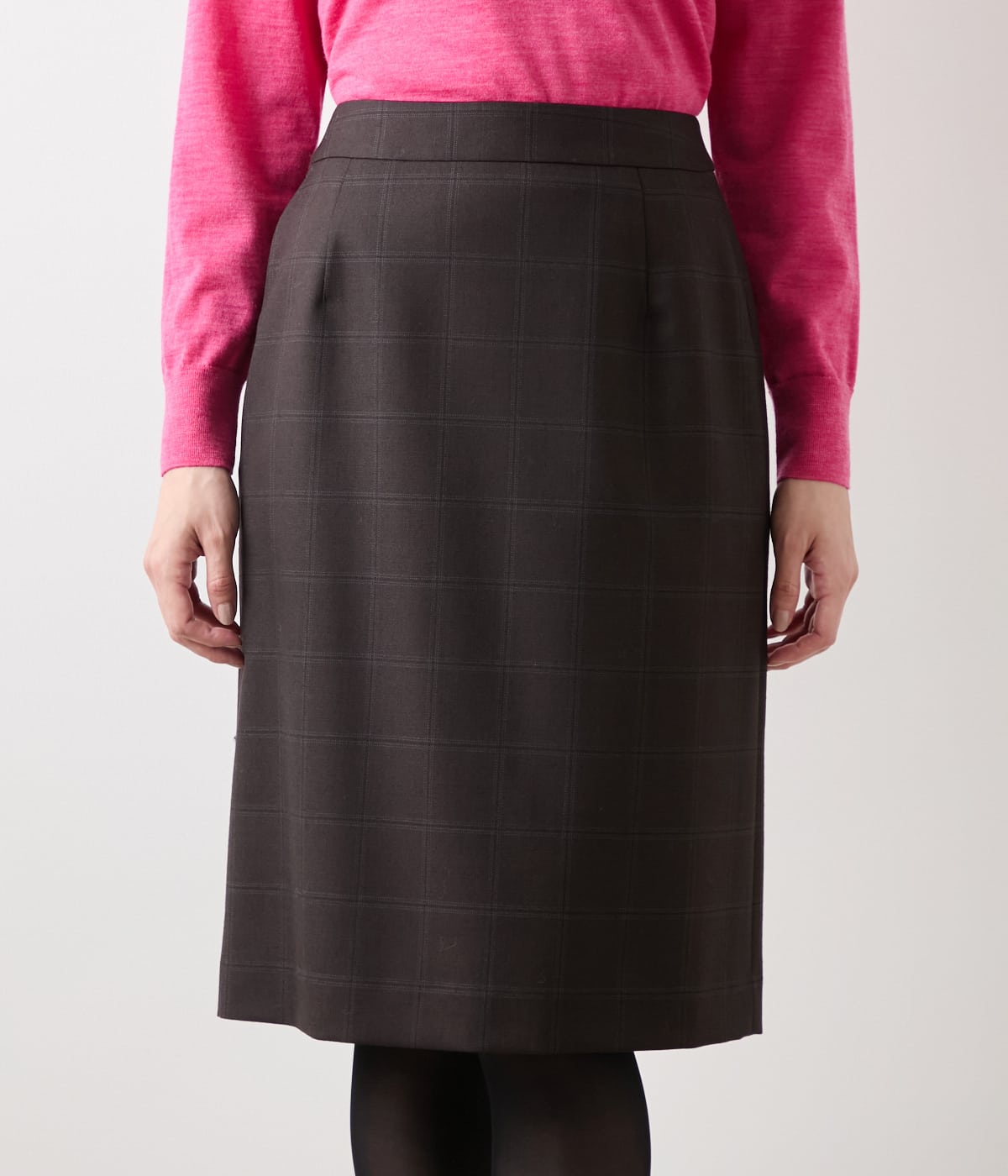 クラシックな気品と現代的な洗練を兼ね備えた、ウインドウペイン柄のセットアップ対応のストレートスカート。縦横に交差する細いラインが生み出すウインドウペインは主張しすぎず、落ち着いた同系色の配色が知的でスタイリッシュな印象を演出してくれます。フォーマル度が高い場にはもちろん、日常のビジネスシーンでも活躍してくれる、グレーとダークブラウンの2色展開。