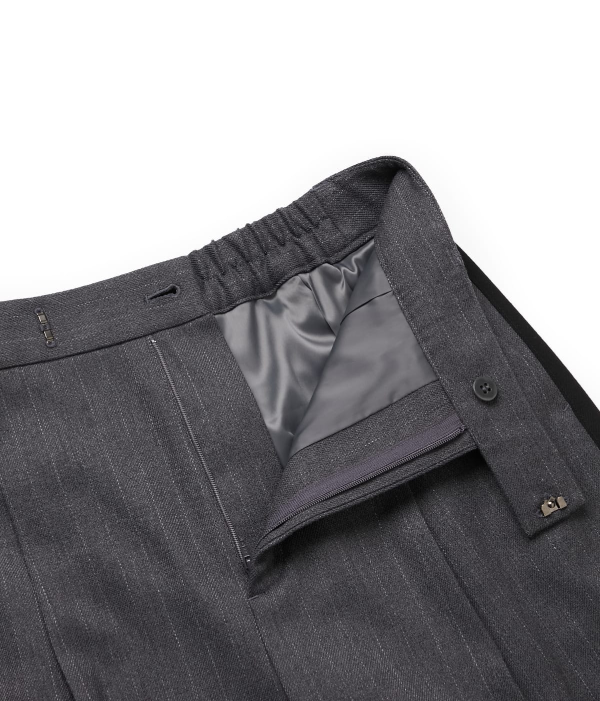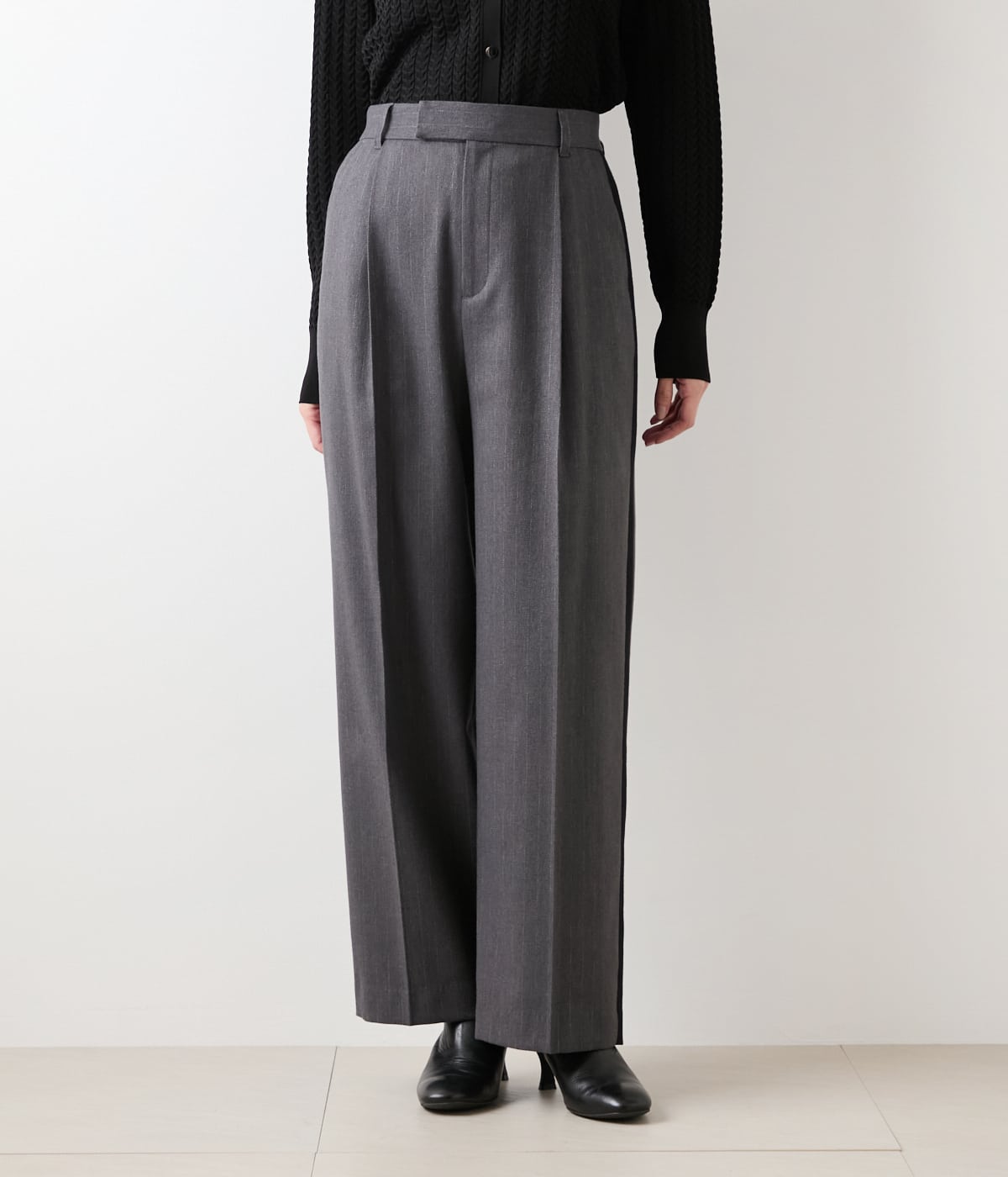 【ストレッチ】デニム調メランジストライプ サイドラインタックパンツ グレー