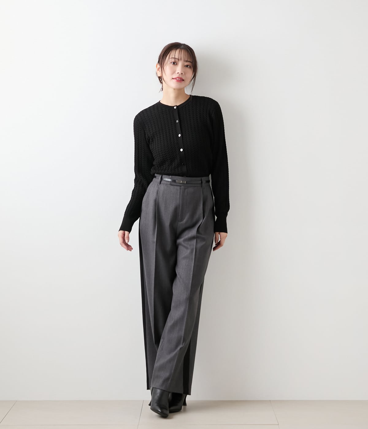 スポーティなライン使いを上品に取り入れた、大人のためのワイドパンツ。カジュアル感ときちんと感を両立し、オンオフ兼用で幅広いシーンで活躍します。定番のワイドパンツを、今季らしくブラッシュアップしたい方にもおすすめの1本です。合わせるアイテムを引き立て、シンプルで洗練された印象を与えるグレー・ネイビーの2色展開。