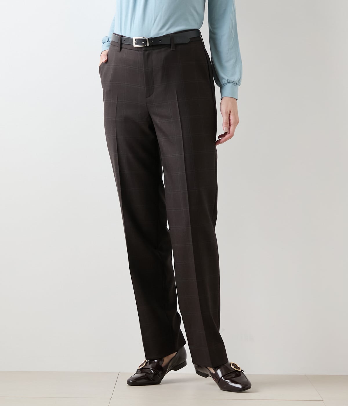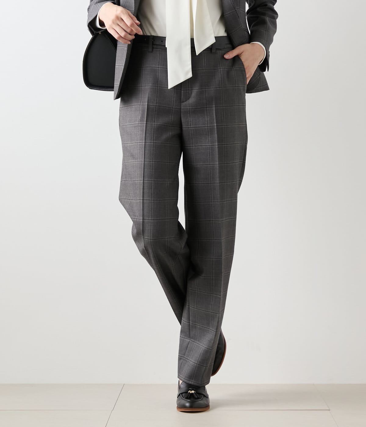 クラシックな気品と現代的な洗練を兼ね備えた、ウインドウペイン柄のセットアップ対応のストレートパンツ。縦横に交差する細いラインが生み出すウインドウペインは主張しすぎず、落ち着いた同系色の配色が知的でスタイリッシュな印象を演出してくれます。フォーマル度が高い場にはもちろん、日常のビジネスシーンでも活躍してくれる、グレーとダークブラウンの2色展開。